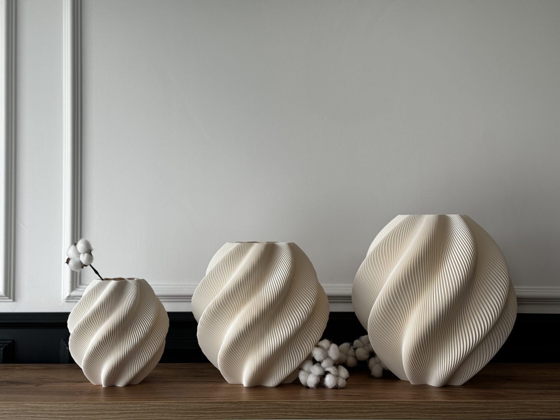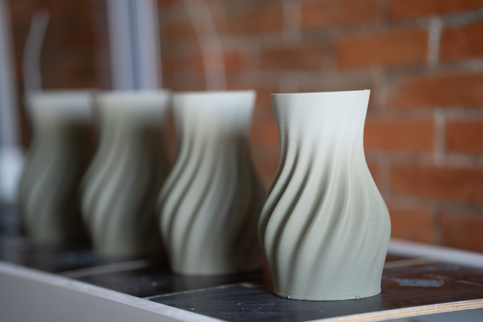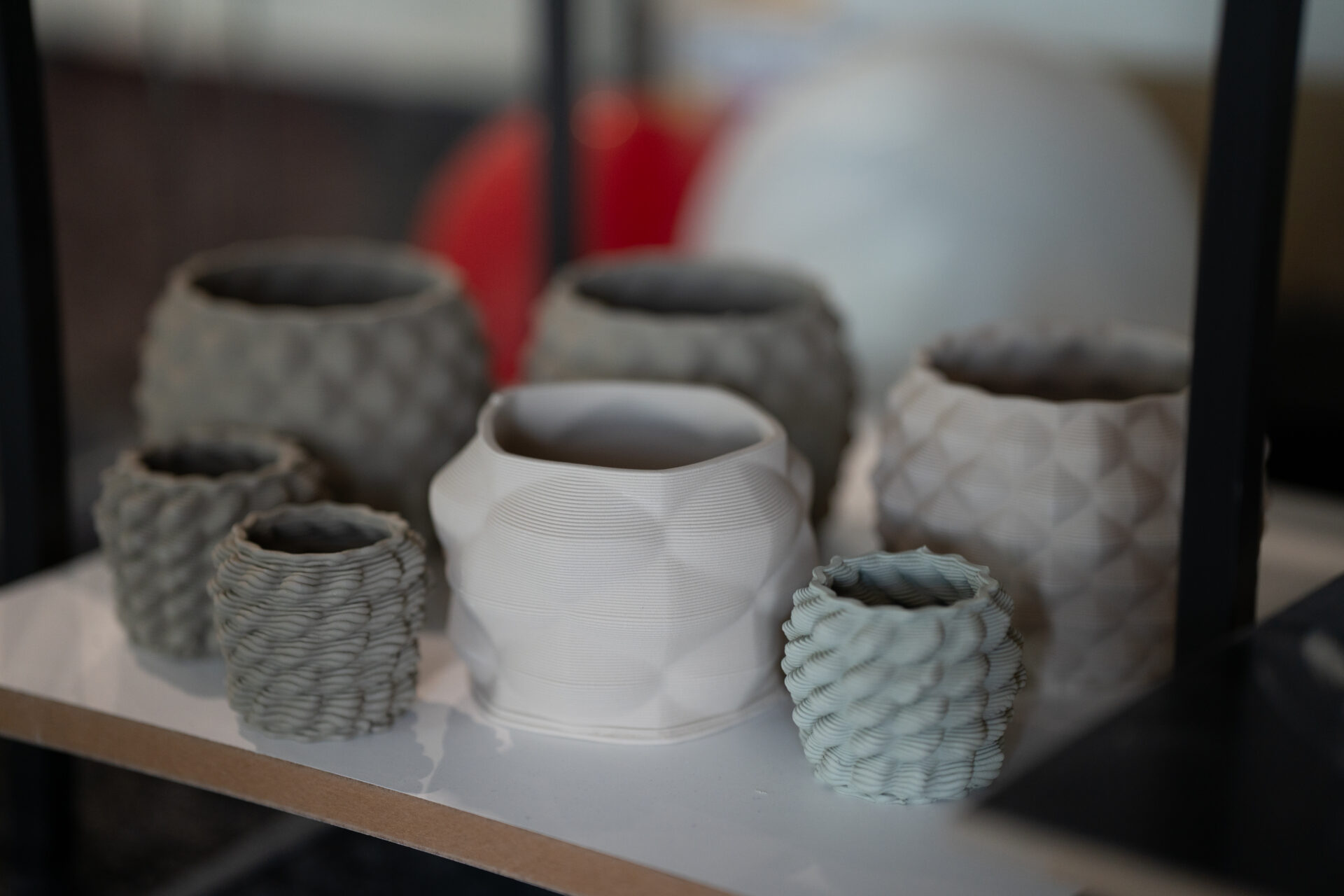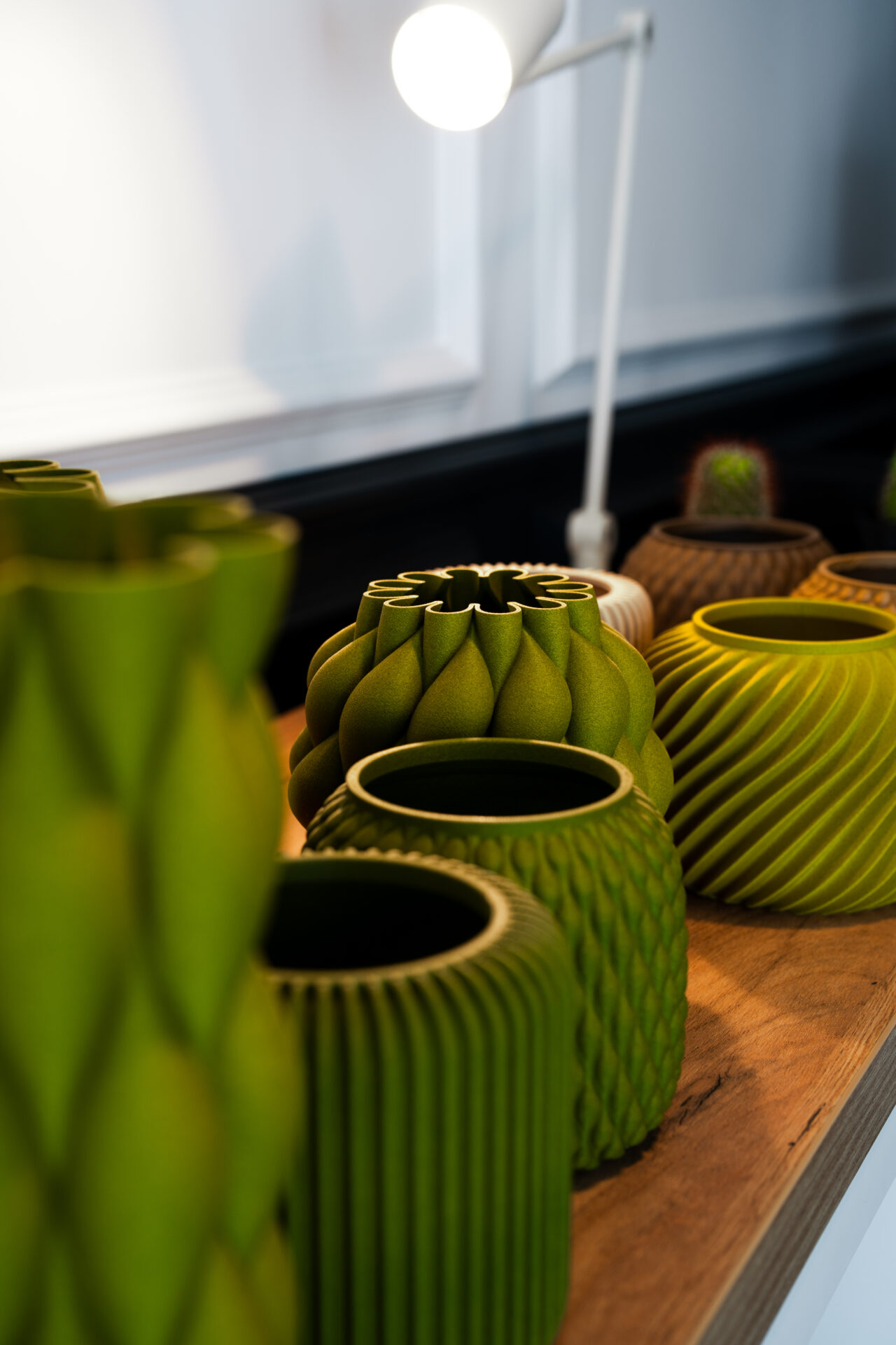 Un perete placat cu un relief imprimat 3D din fibră de lemn poate schimba percepția unui spațiu de recepție. La fel, o compoziție de obiecte ceramice modelate minimalist și aranjate coregrafic poate transforma un colț de birou într-un spațiu de reflecție.