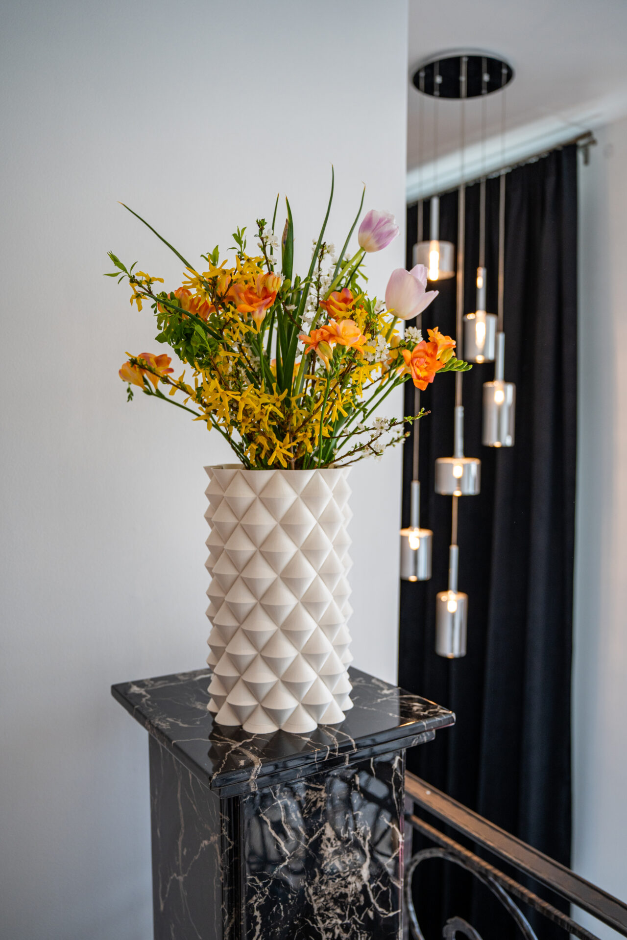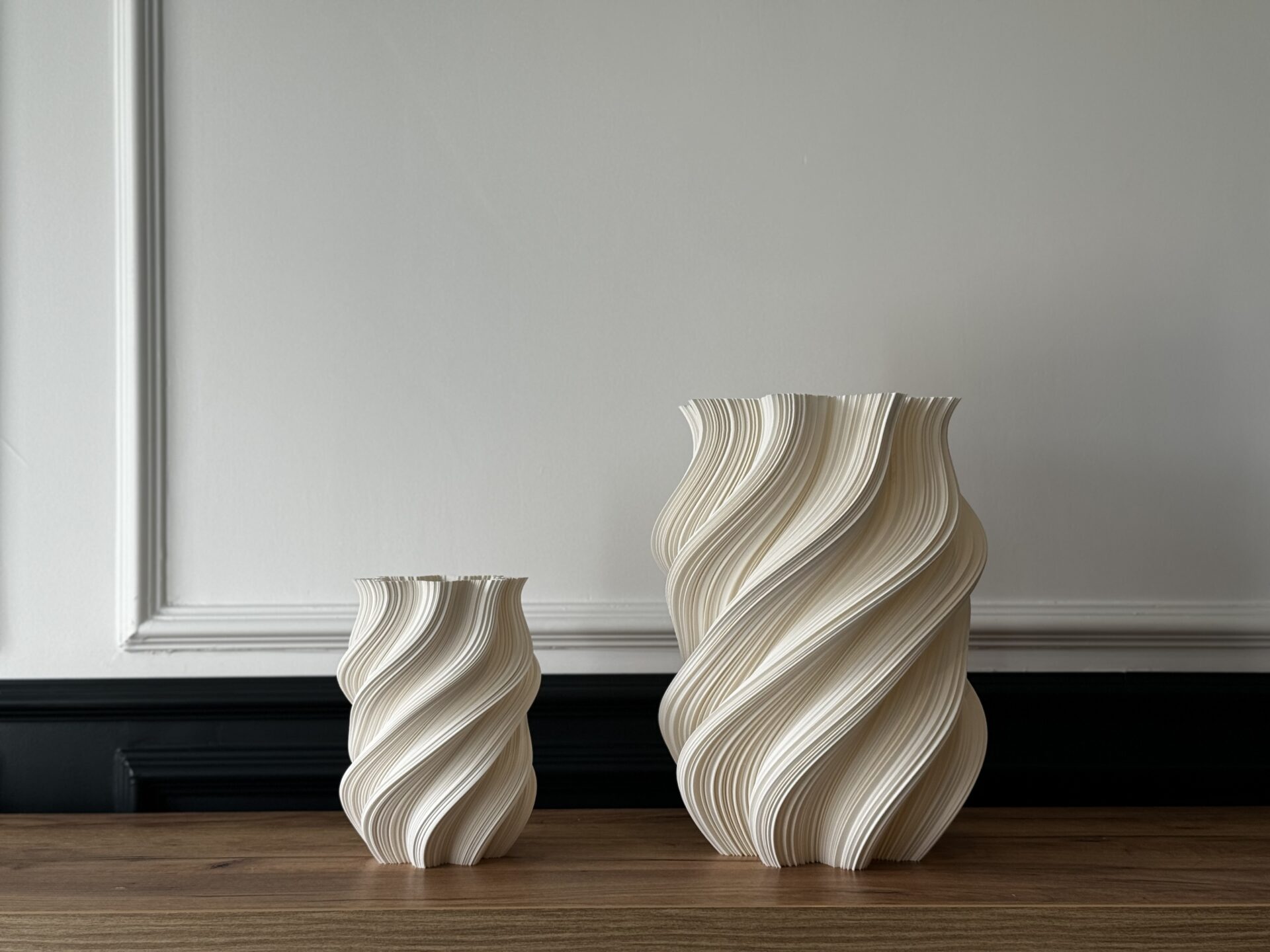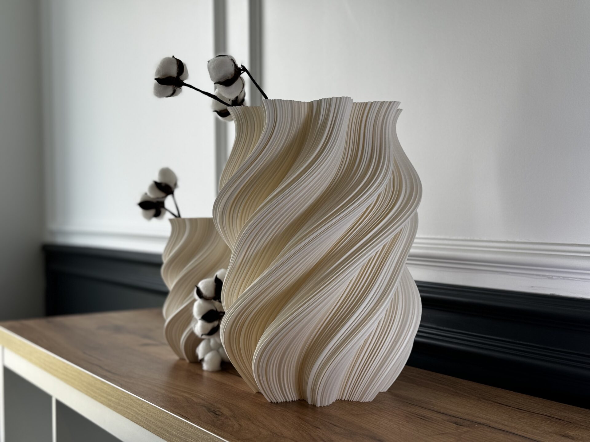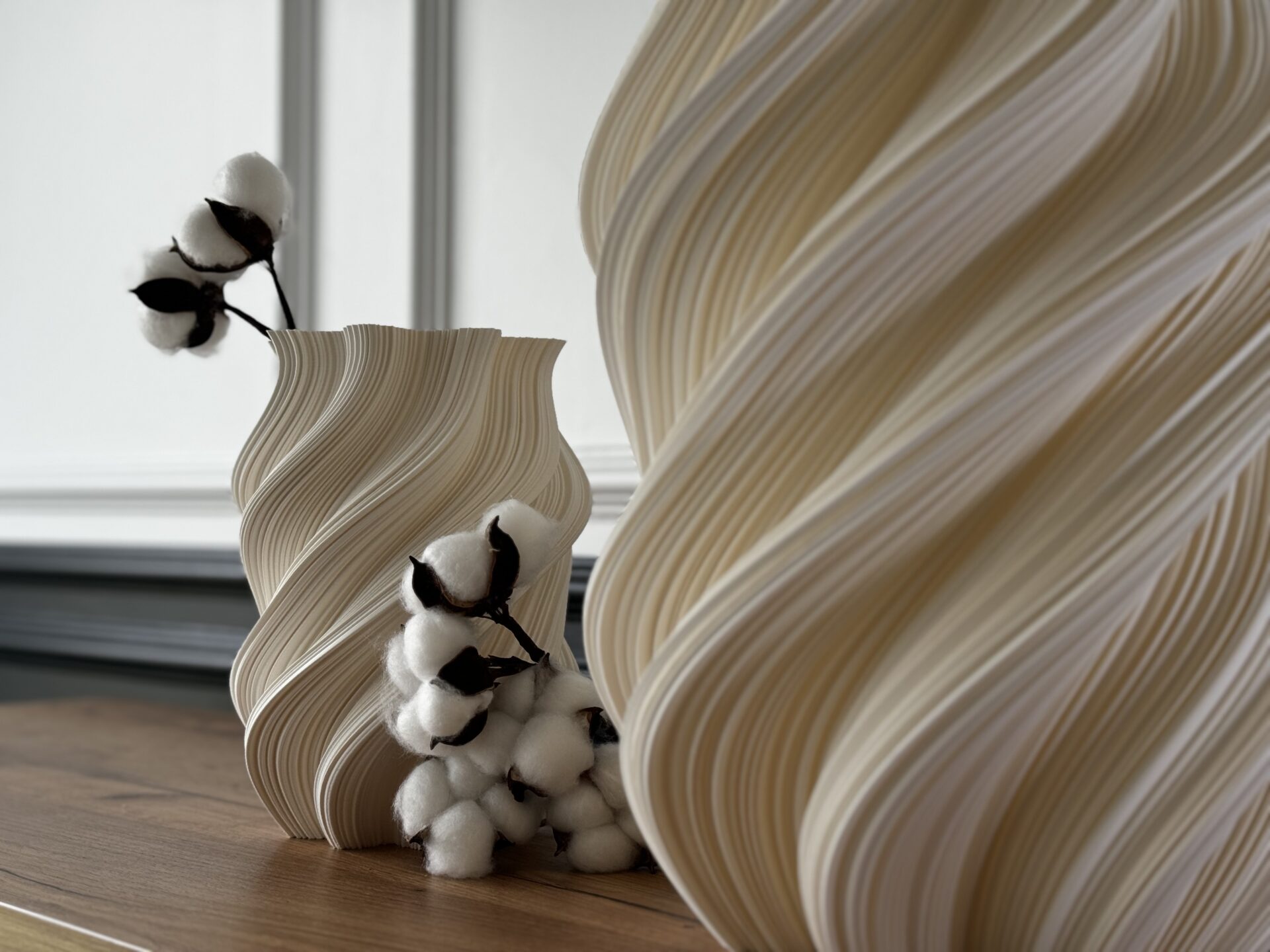 📸 Imaginile care încadrează acest articol sunt exemple reale de obiecte create prin această tehnologie: vaze, corpuri de iluminat, panouri decorative – toate gândite pentru a aduce sens în spațiul cotidian.