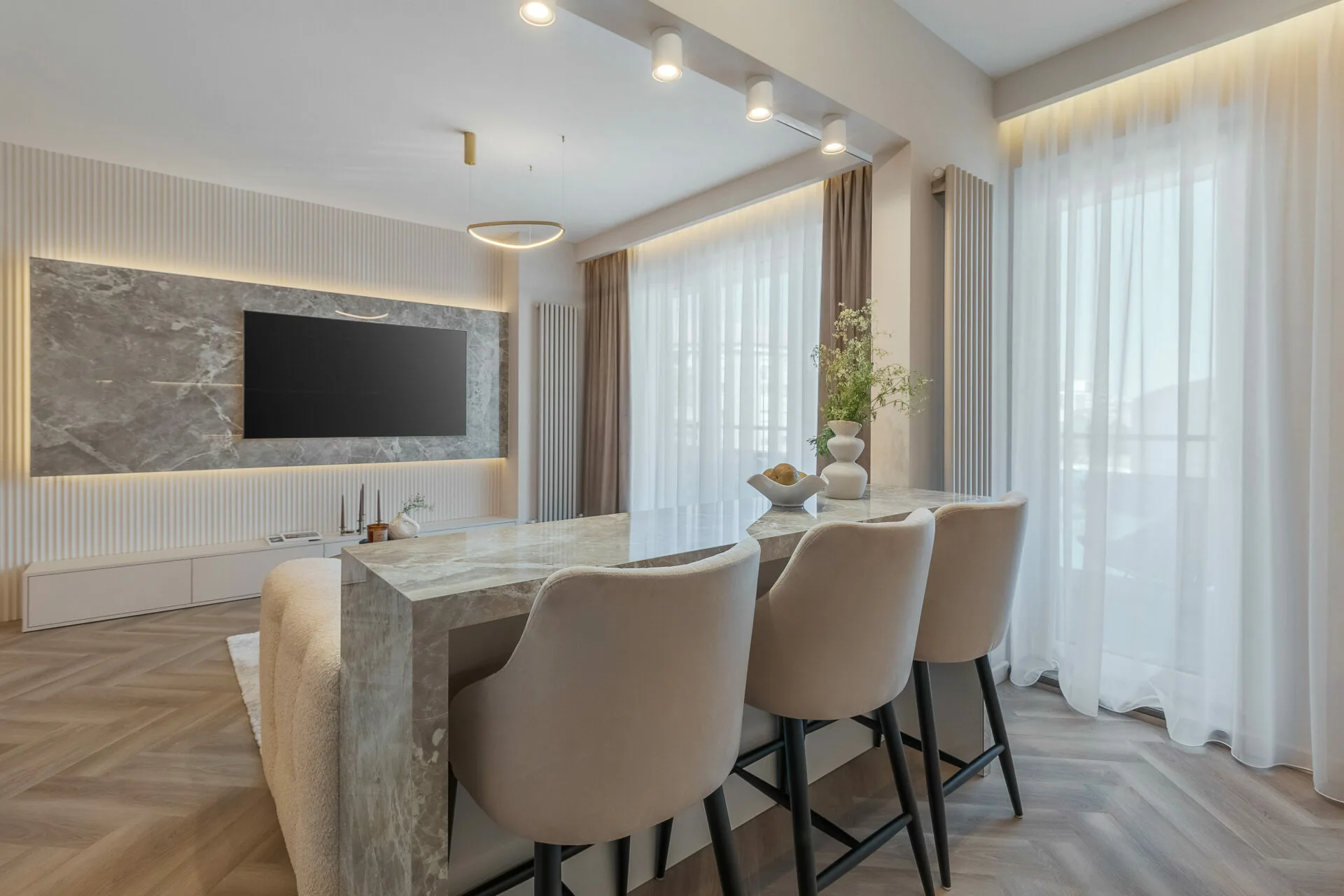 A.A.R Apartment, realizat de ALL Design, are patru camere și este localizat într-un complex rezidențial nou.