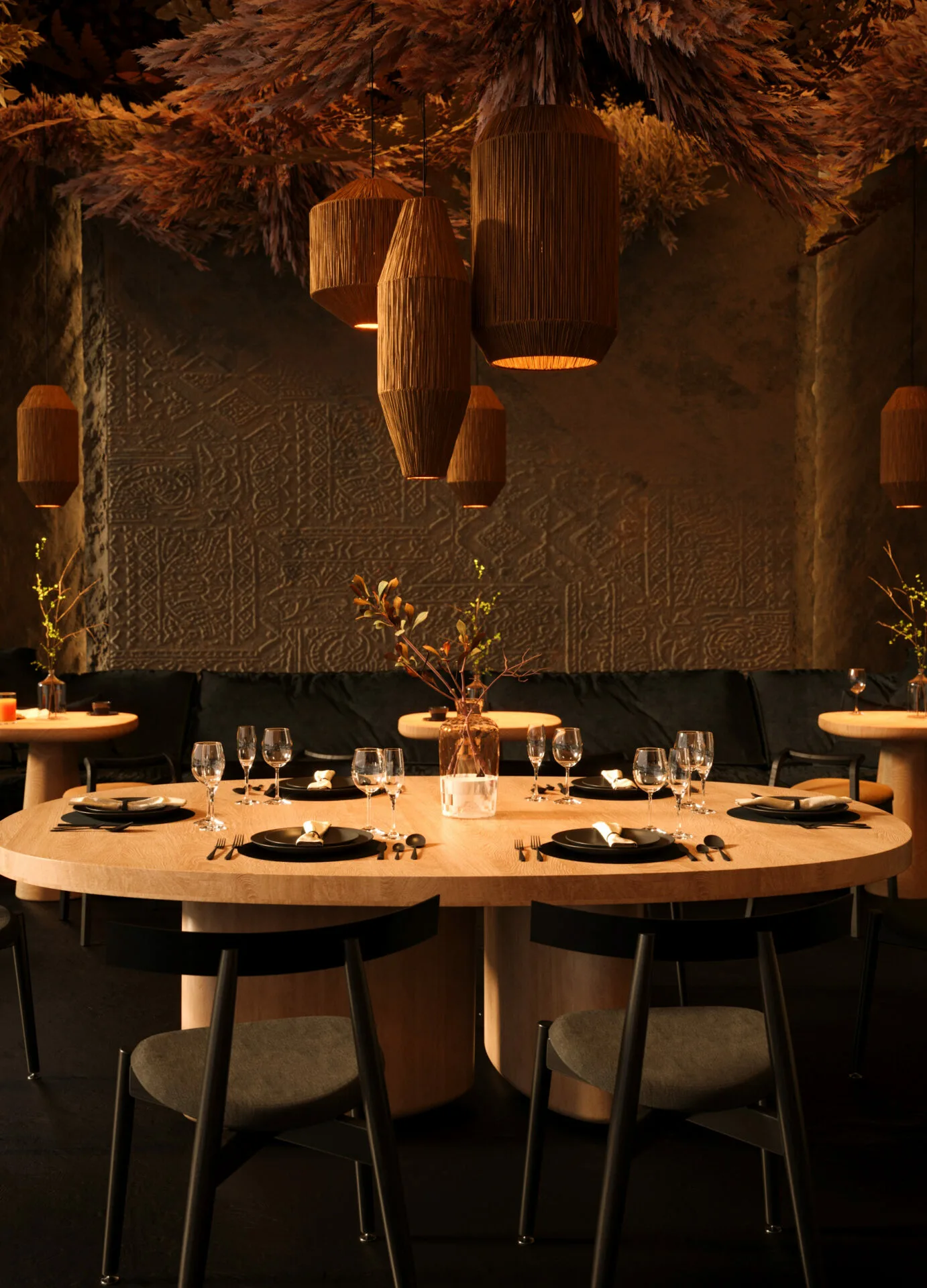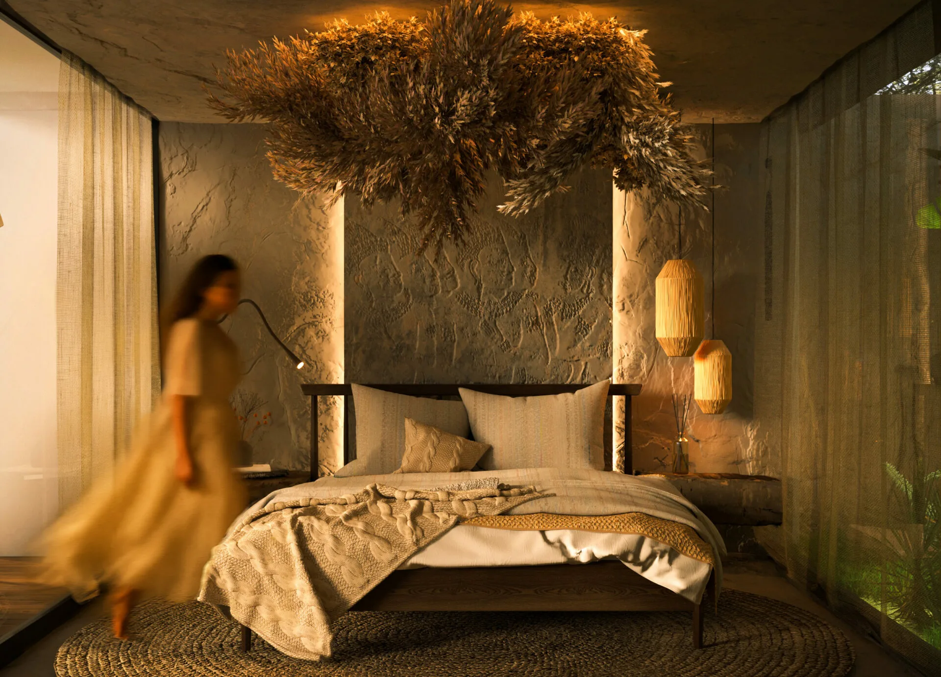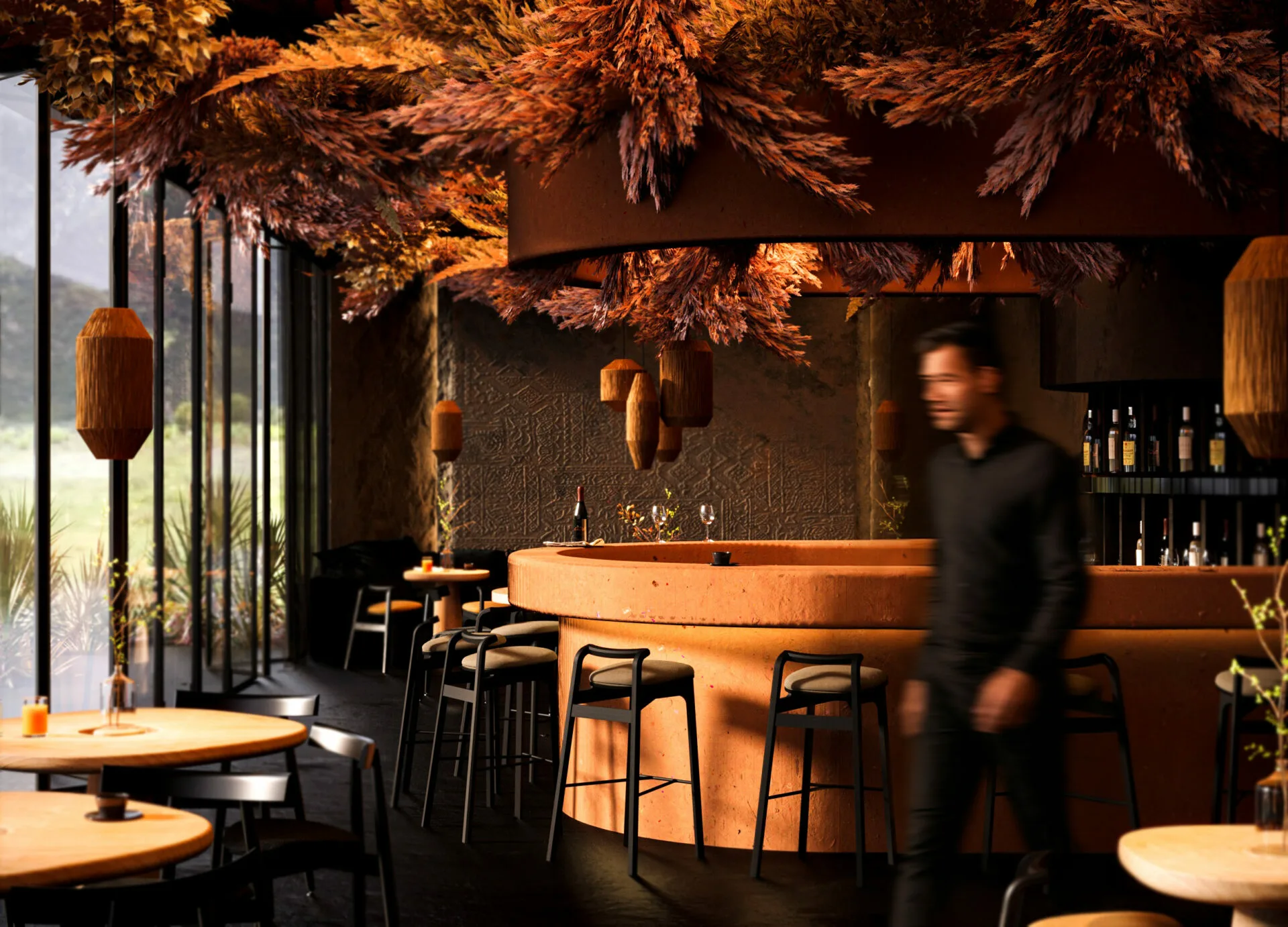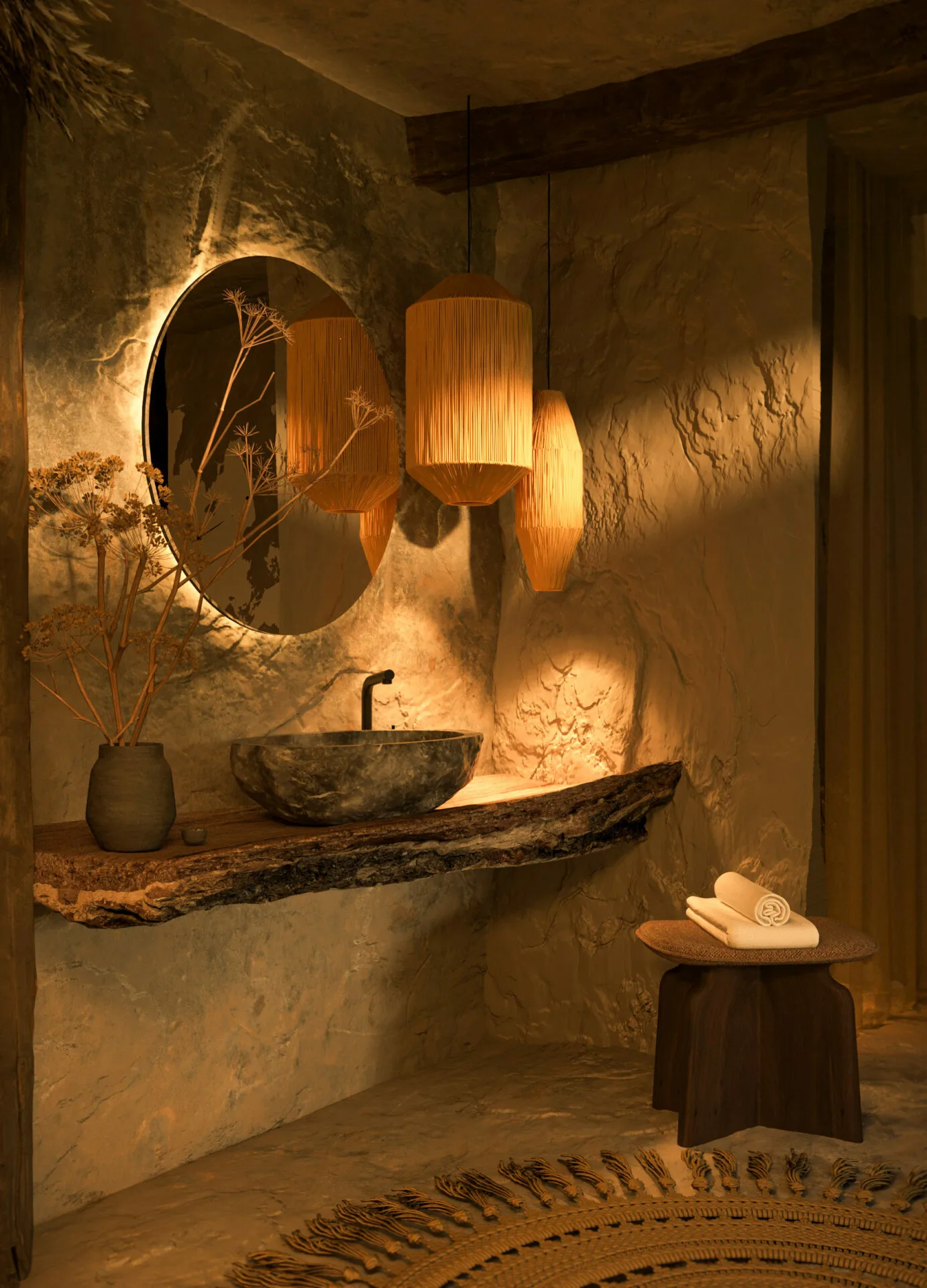 Amara Resort se definește printr-un concept în care natura și arhitectura se completează firesc. Piatra naturală, prezentă din abundență, oferă textură și autenticitate, în timp ce paleta cromatică dominată de tonuri pământii creează o atmosferă caldă și echilibrată. Spațiile ample vitrate deschid interioarele către peisaj, aducând lumina naturală și frumusețea naturii direct în sufletul resortului. Vegetația suspendată și accentele de lemn sculptural dau un caracter organic și sofisticat, transformând fiecare încăpere într-un refugiu contemporan unde designul minimalist întâlnește confortul și rafinamentul.