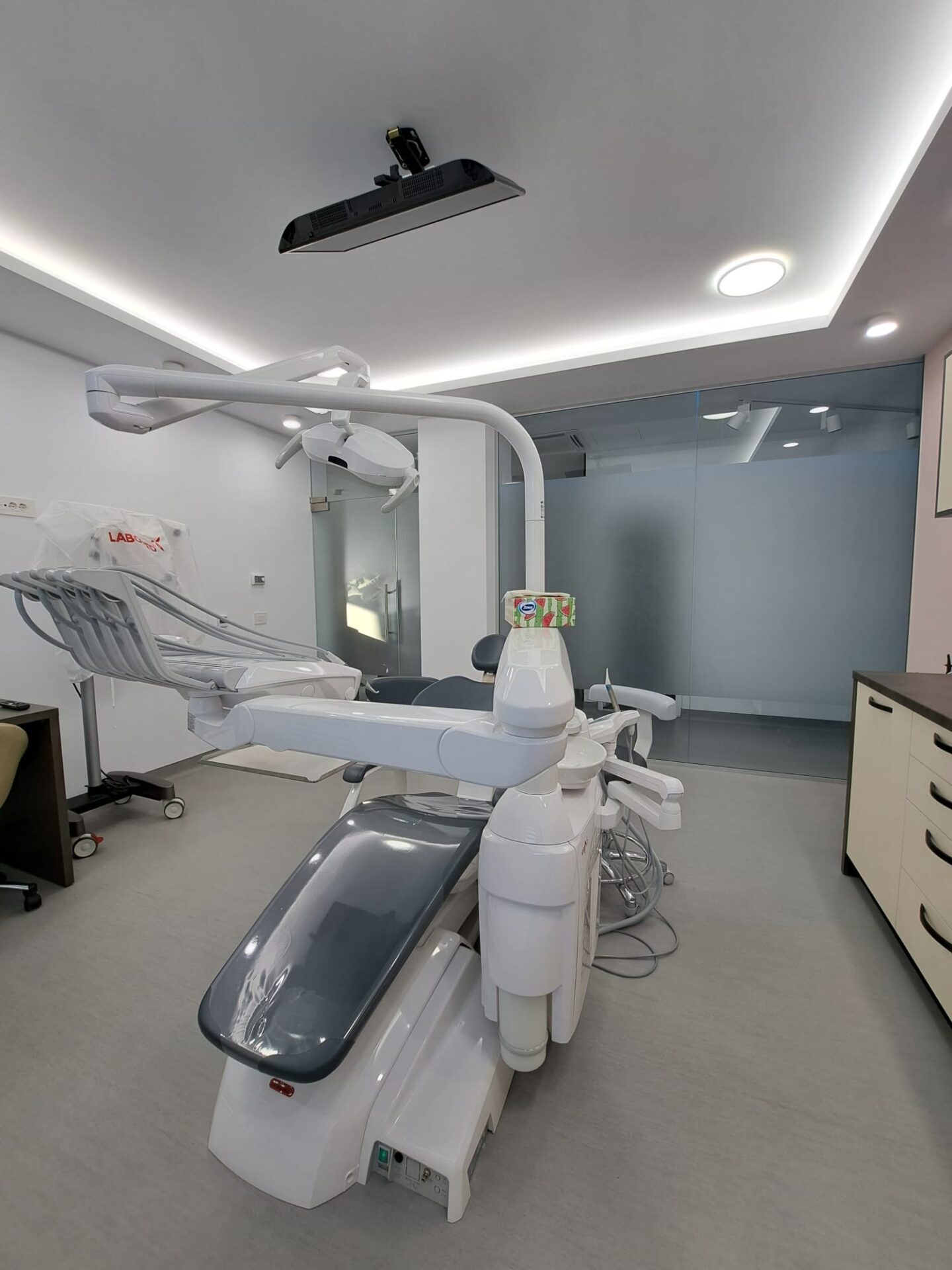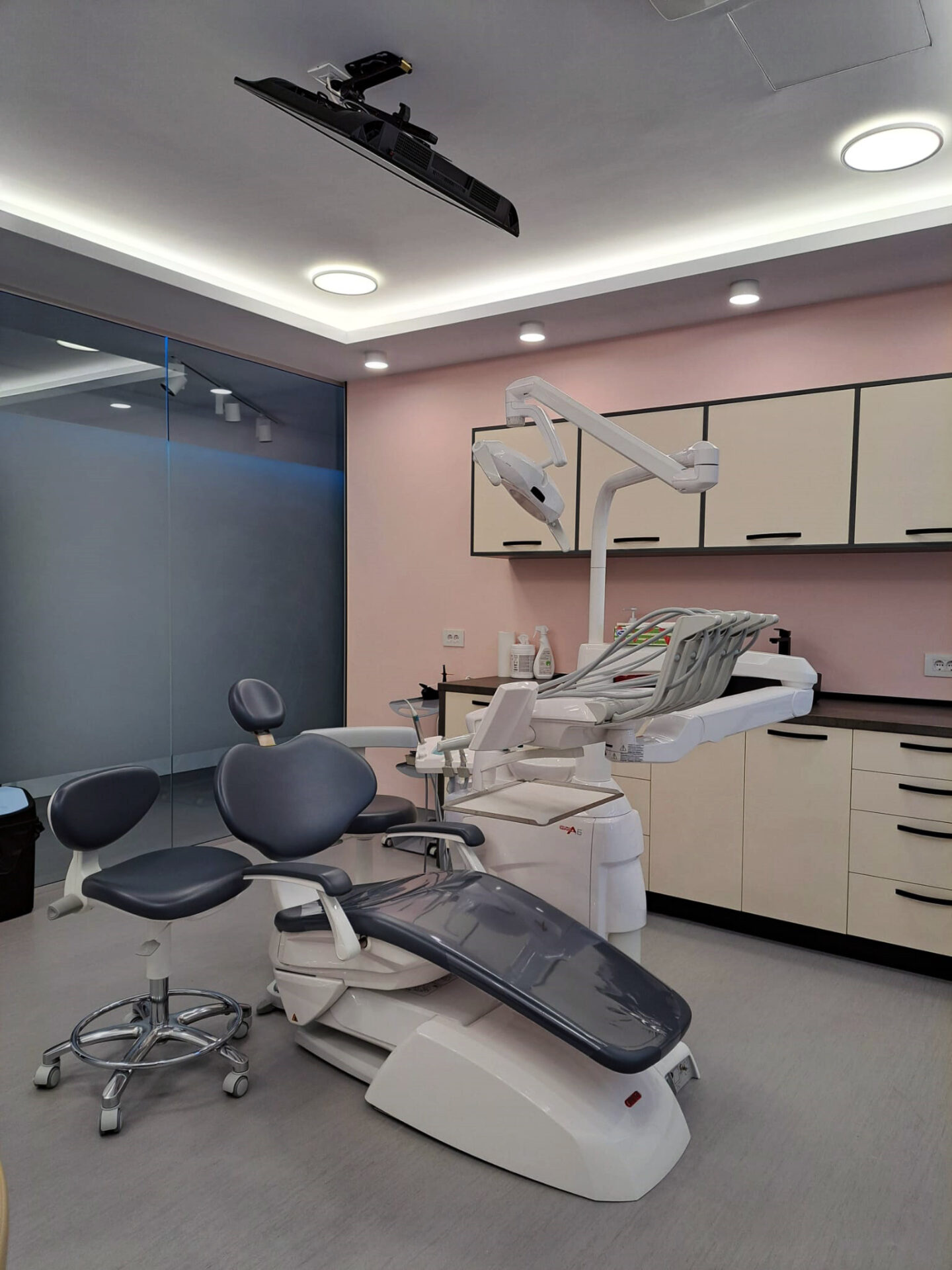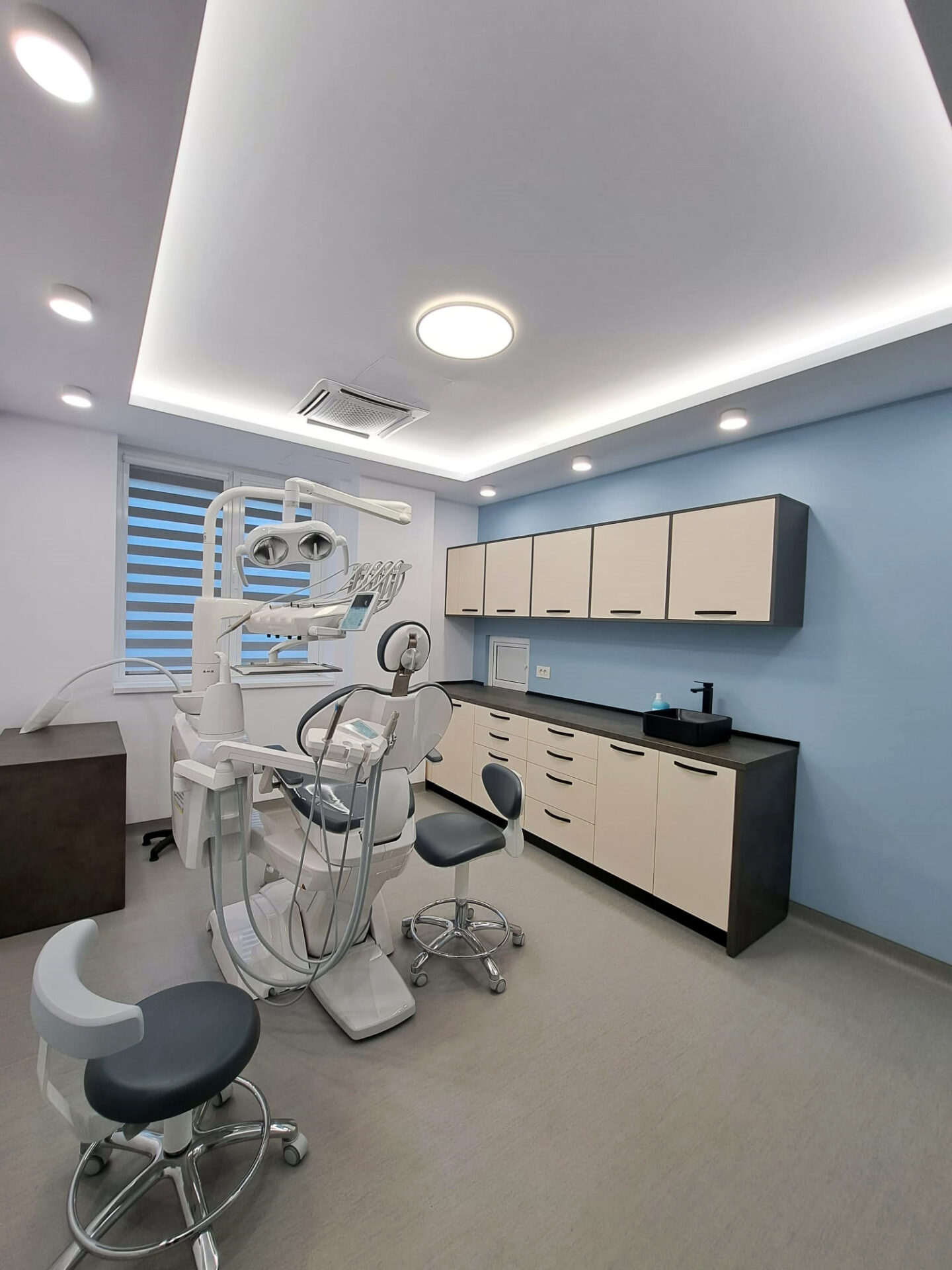Cabinetul stomatologic cuprinde următoarele încăperi: recepție+sala de așteptare, 3 cabinete stomatologice, sterilizare, radiologie, vestiar personal, g.s. personal, g.s. pacienți, hol g.s., spațiu tehnic, depozitare deșeuri.