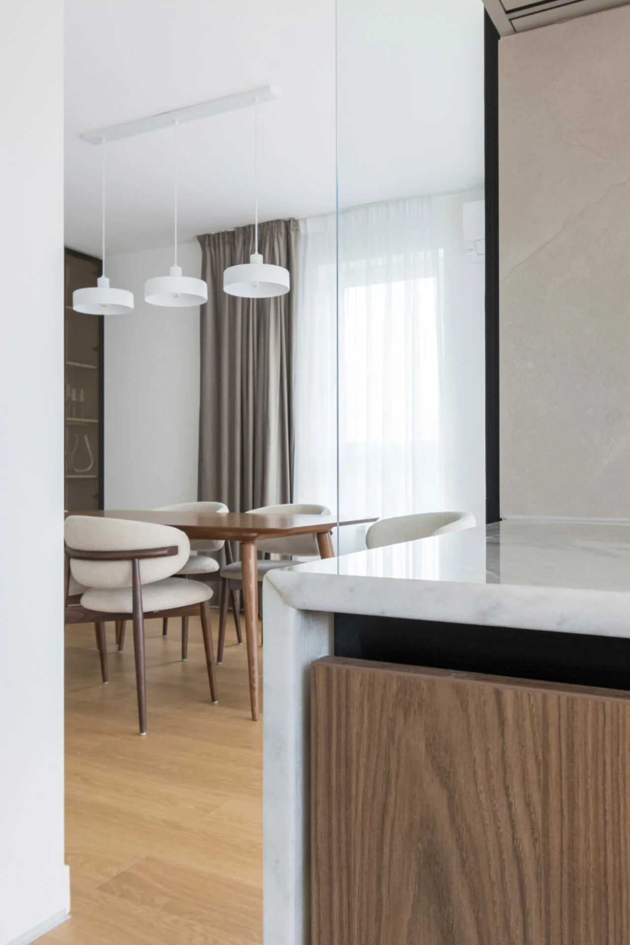 Proiectul configurează o locuire atent calibrată, în care fiecare decizie spațială și materială contribuie la un echilibru firesc între funcțiune și estetică.