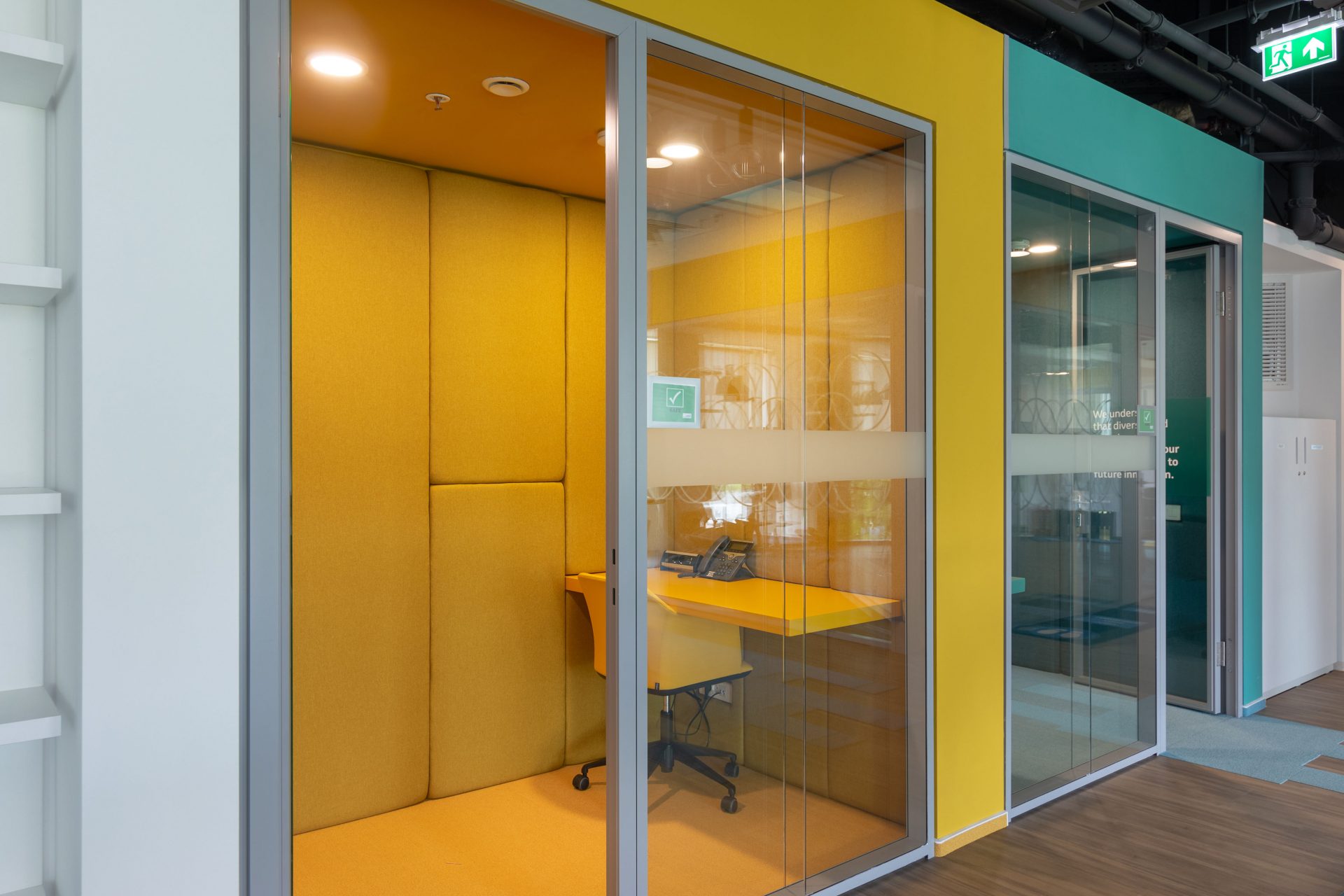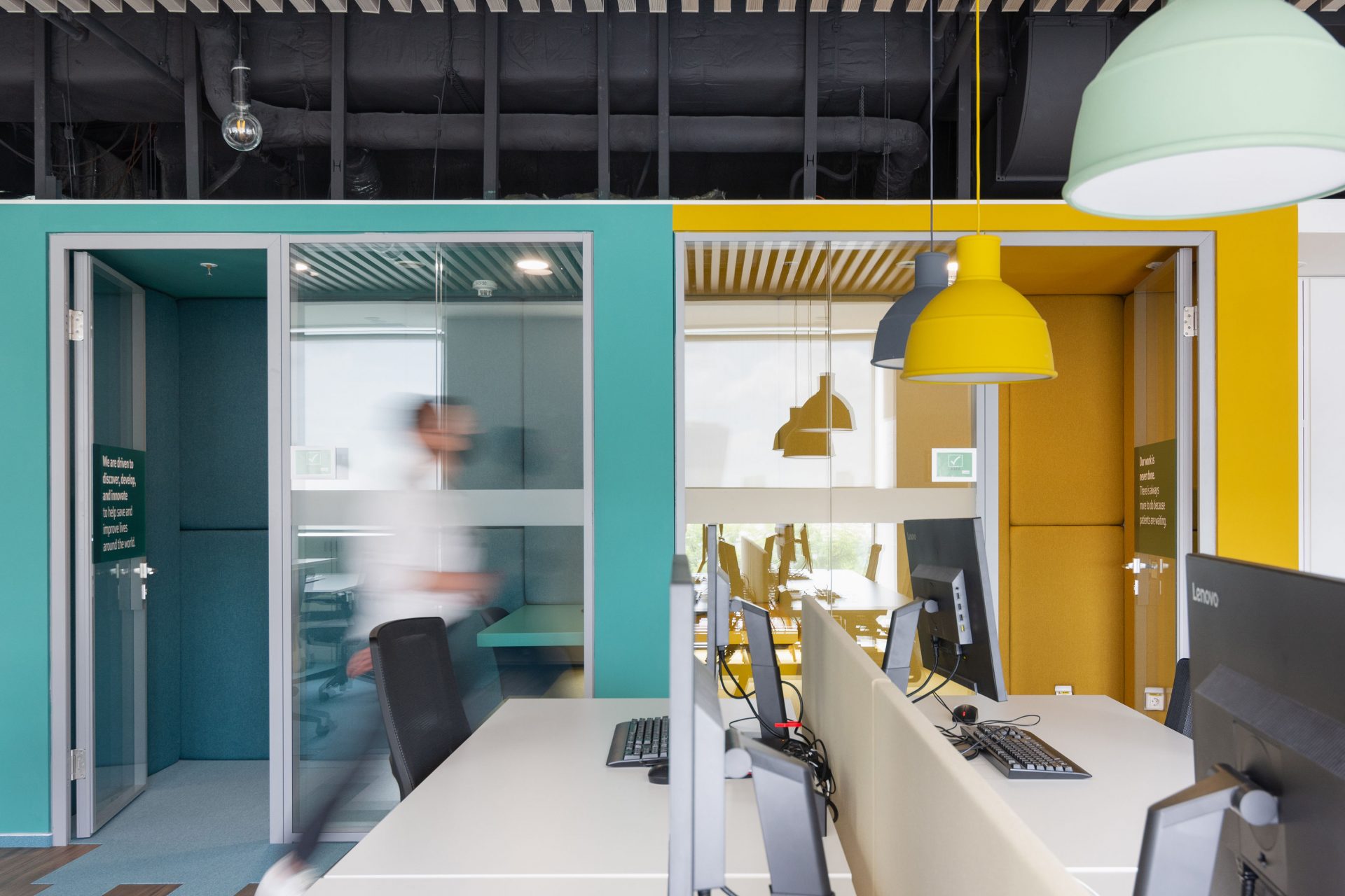 Au fost imaginate diferite scenarii, atât pentru munca individuală, cât și pentru cea colaborativă, iar rezultatul constă într-o varietate de spații de lucru: cabine telefonice, spații deschise de birouri, săli de ședințe, spații sociale, o bibliotecă liniștită, o seră, etc. Fiecare are un caracter diferit sau un element care îl face identificabil.