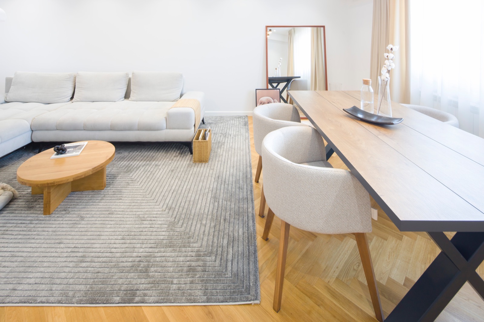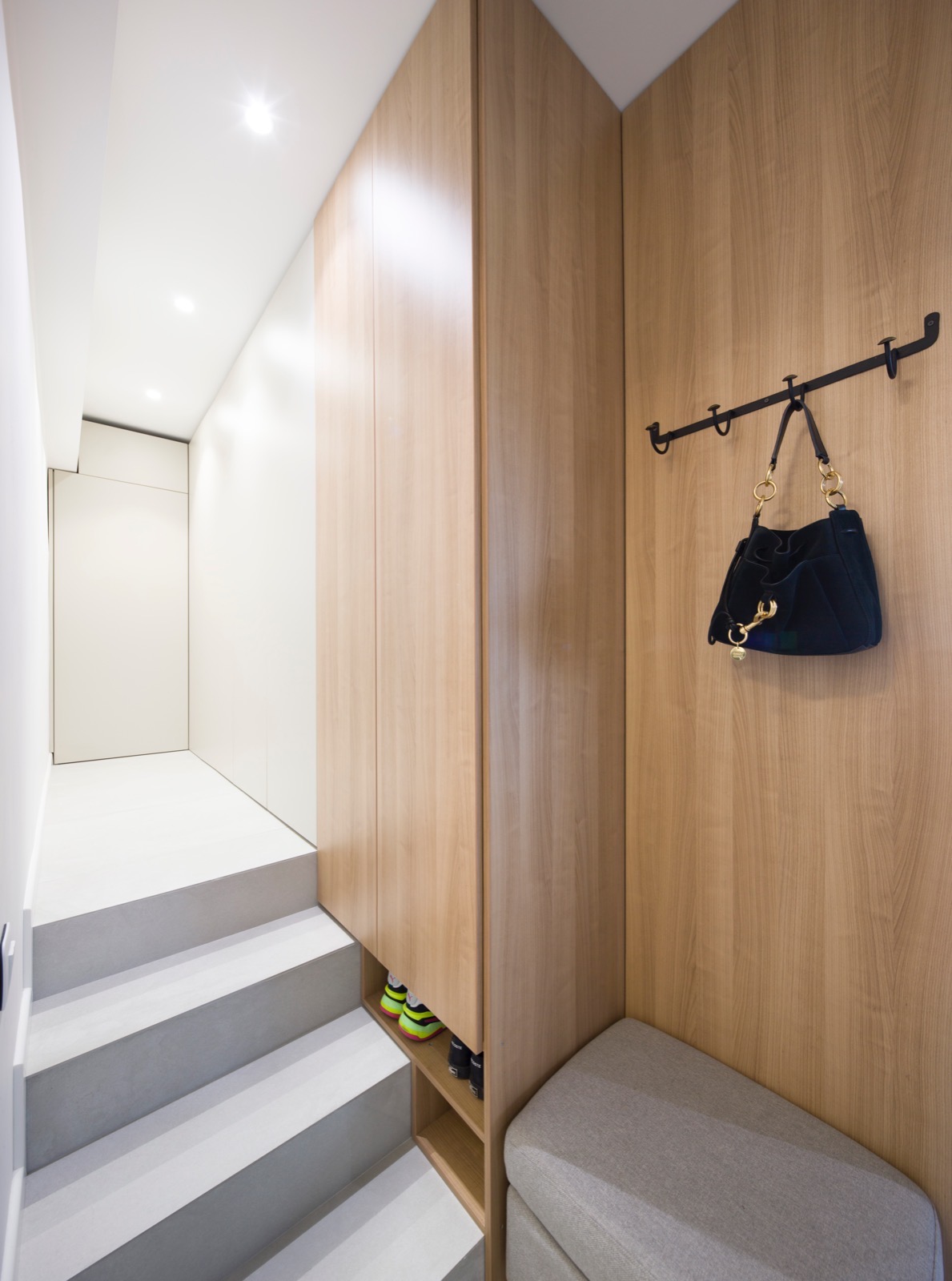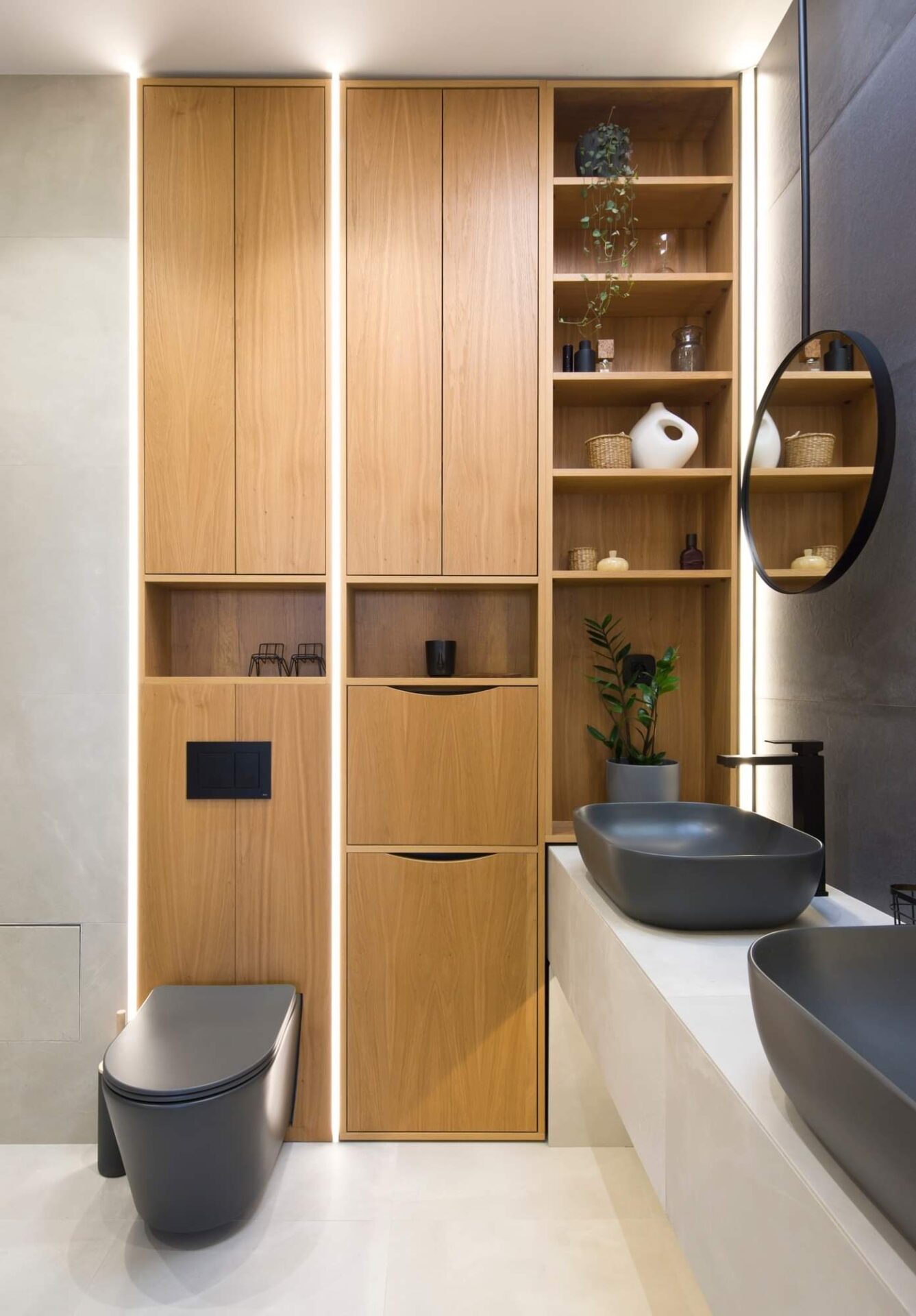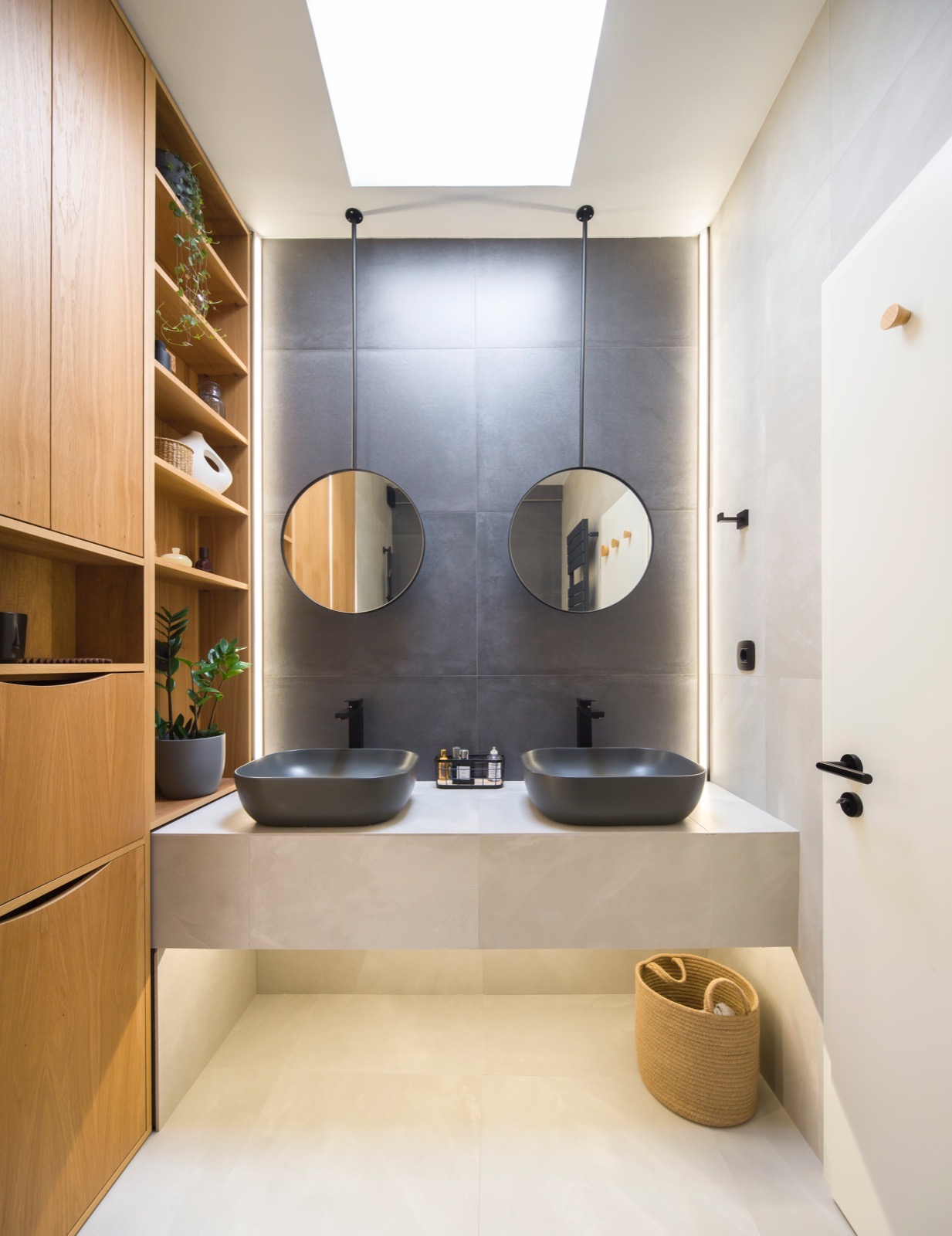 Cu fiecare ajustare, am reușit să aduc armonie într-un spațiu confuz. Unul dintre elementele cheie ale acestei transformări este trecerea subtilă între zonele de zi și de noapte. Spațiul de tranziție între zi și noapte este dressingul, locul unde te pregatești să începi o noua zi. Astfel funcțiunile apartamentului devin clare, nu se suprapun și au un flux firesc. Un alt element care a redefinit apartamentul este fereastra masivă care conectează bucătăria cu holul de intrare și aduce în interior lumina naturală. Astfel, granițele devin mai puțin evidente, iar spațiile devin parte a unei întregi unități armonioase. Ceea ce m-a impresionat cel mai mult în acest proiect este modul în care fiecare element contribuie la creația unei conexiuni fluide între spații. Casa nu mai este împărțită în compartimente separate, ci funcționează ca o singură entitate bine definită, în care fiecare detaliu are rolul său în povestea mai mare.