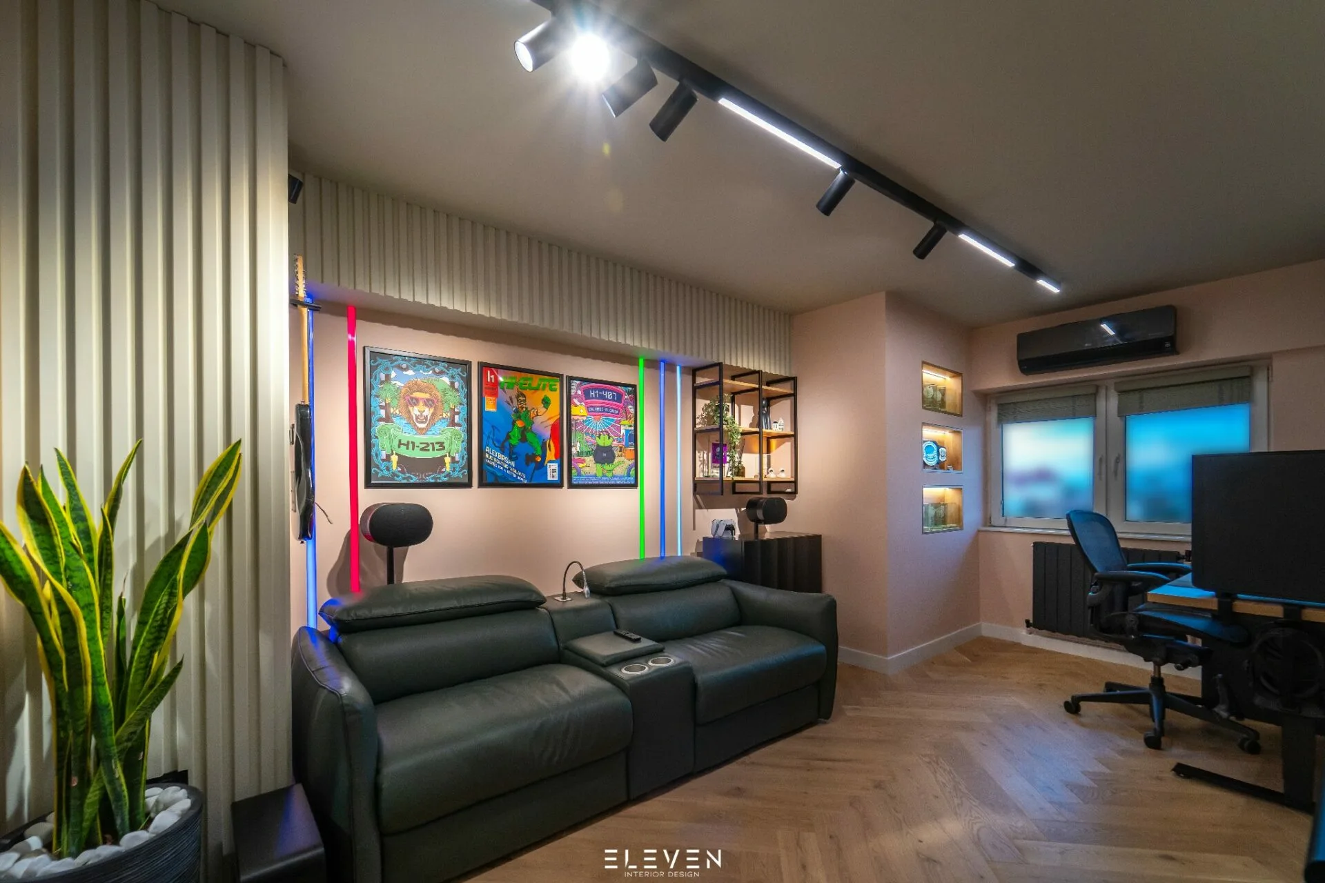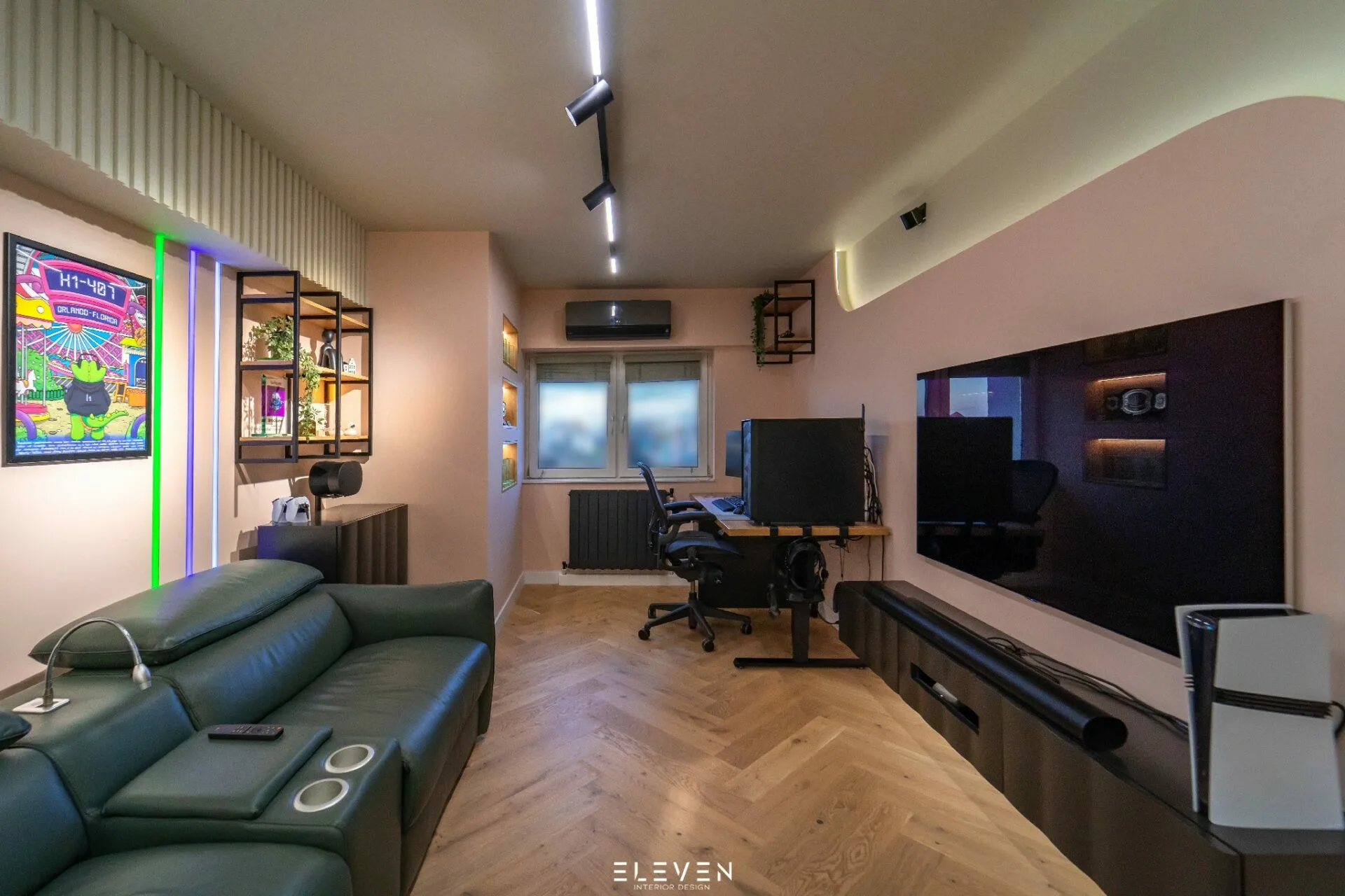 Cele două birouri sunt concepute ca spații distincte, adaptate personalităților utilizatorilor, dar unite prin același concept de design. Biroul feminin pune accent pe forme organice și nuanțe calde, creând un cadru creativ și expresiv, în timp ce biroul masculin este definit prin linii mai clare și un caracter tehnic, orientat spre eficiență și ergonomie.