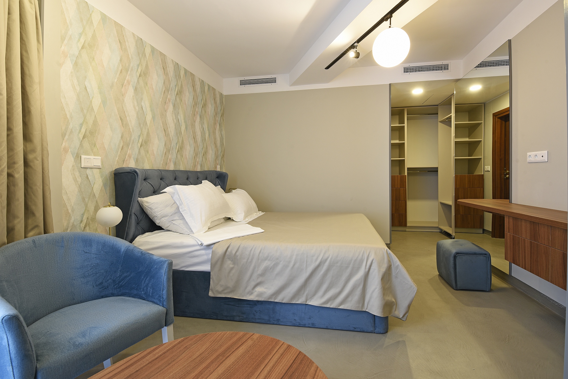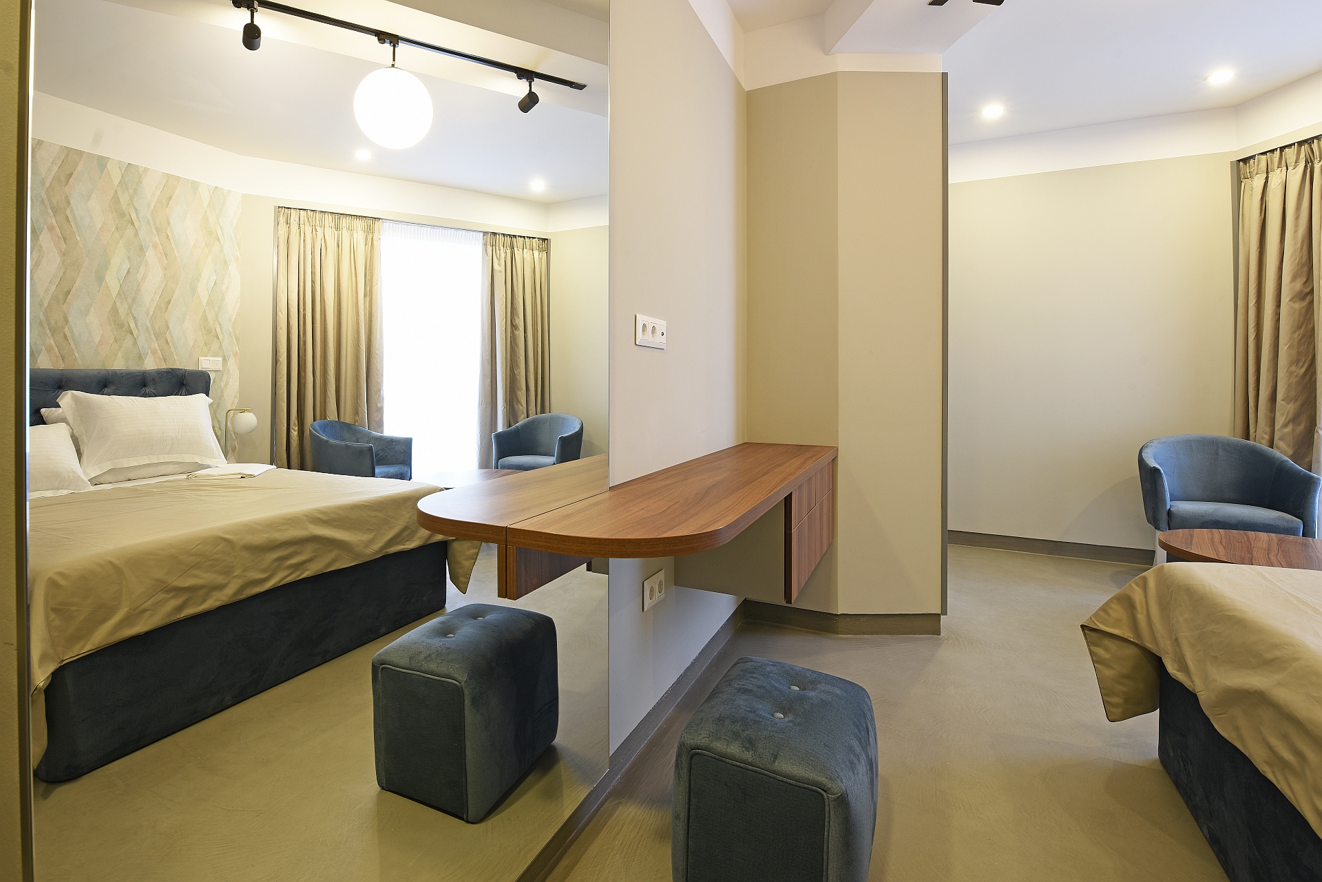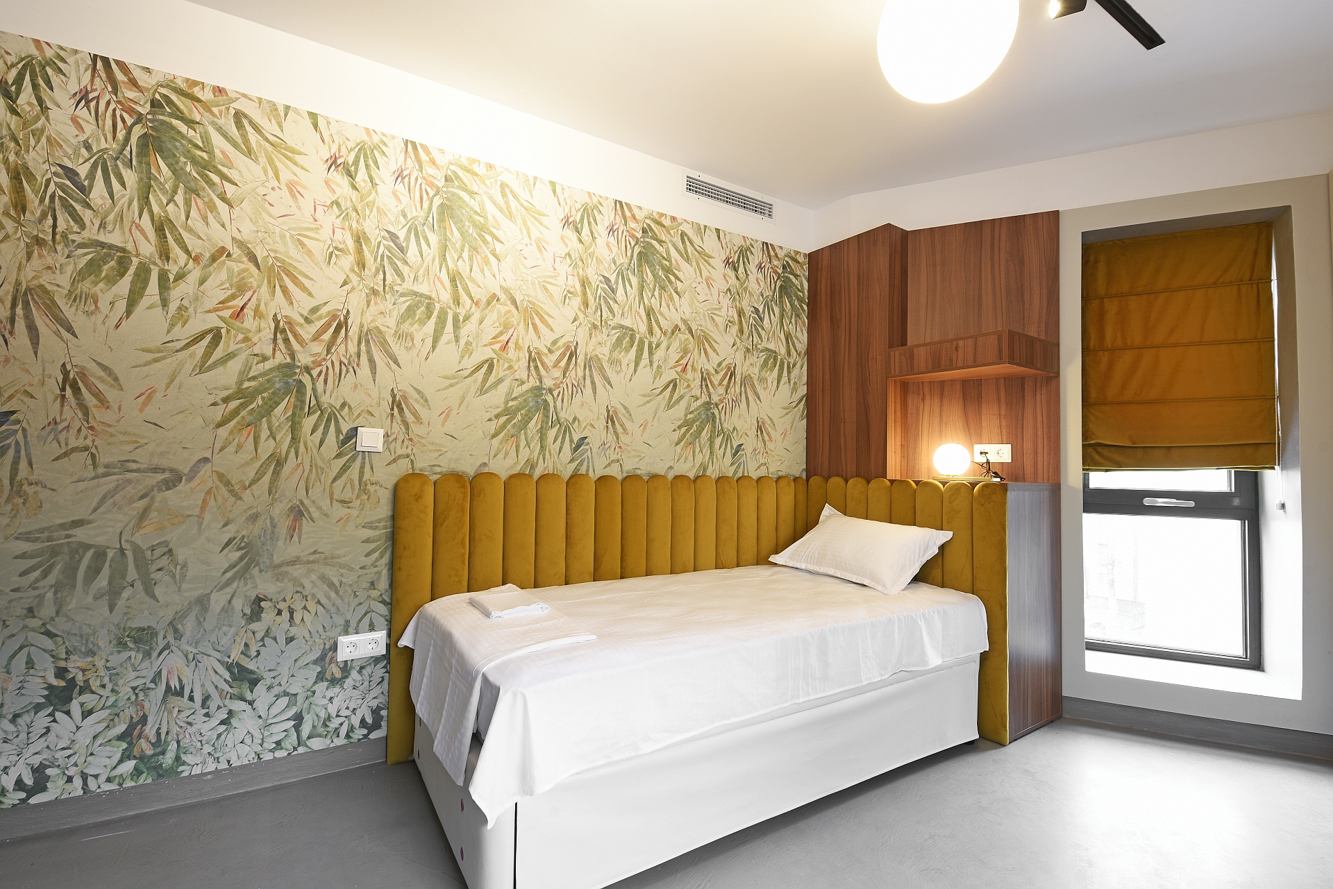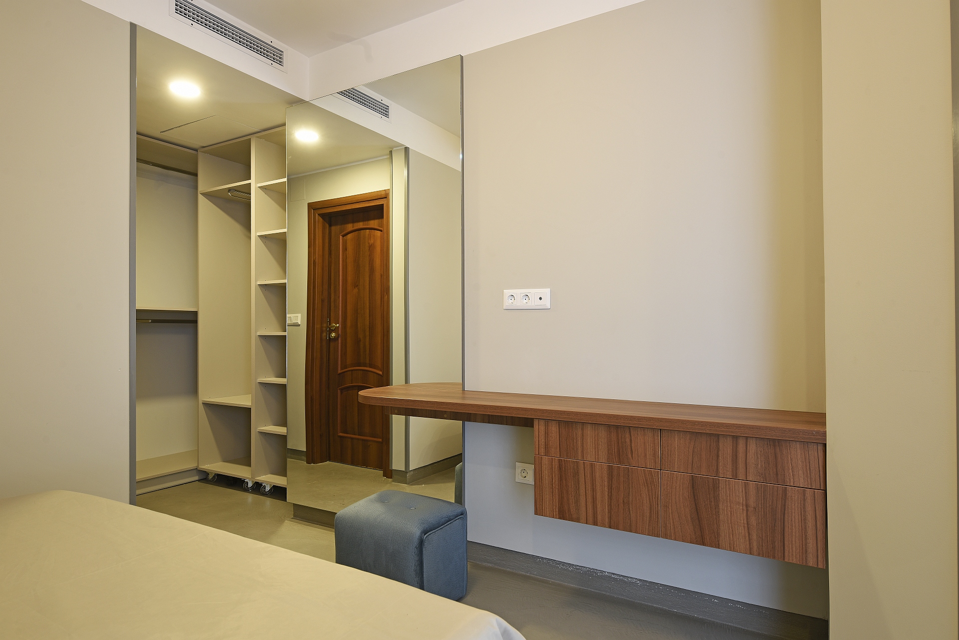 Toate aceste elemente – de la culorile vibrante și texturile îmbietoare, până la detalii fine și elegante – converg spre o creație unică. Acest apartament cu 3 camere devine mai mult decât un simplu spațiu de locuit, se transformă într-un veritabil tablou, într-o poveste de acasă scrisă în fiecare colț și detalii. Cu fiecare atingere, cu fiecare element de design, cu fiecare nuanță și textură, acest apartament devine o operă de artă în sine. În acest spațiu magic, cultura și tradițiile se împletesc într-o armonie perfectă, iar ideea de acasă prinde viață într-un mod cu totul nou și inovator. Dormitorul matrimonial respecta este centrat pe zona patului iar tonurile blande albastru induc relaxare si destindere . Camera numarul 3 este multifunctionala – poate fi oricand o camera pentru un copil sau o camera de oaspeti datorita patului ingenios sau doar o camera birou. Ca in fiecare camera culorile in tonurile casei cu nuante de verde si auriu discret. Încheind această călătorie în lumea designului, putem cu mândrie să spunem că acest apartament cu 3 camere devine o pledoarie pentru diversitate, creativitate și frumusețe în toate limbile. El ne amintește că, indiferent de unde venim sau cine suntem, acasă este cu adevărat acolo unde sufletul nostru se simte în armonie și cu totul special.