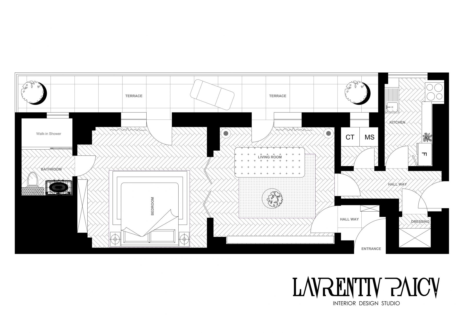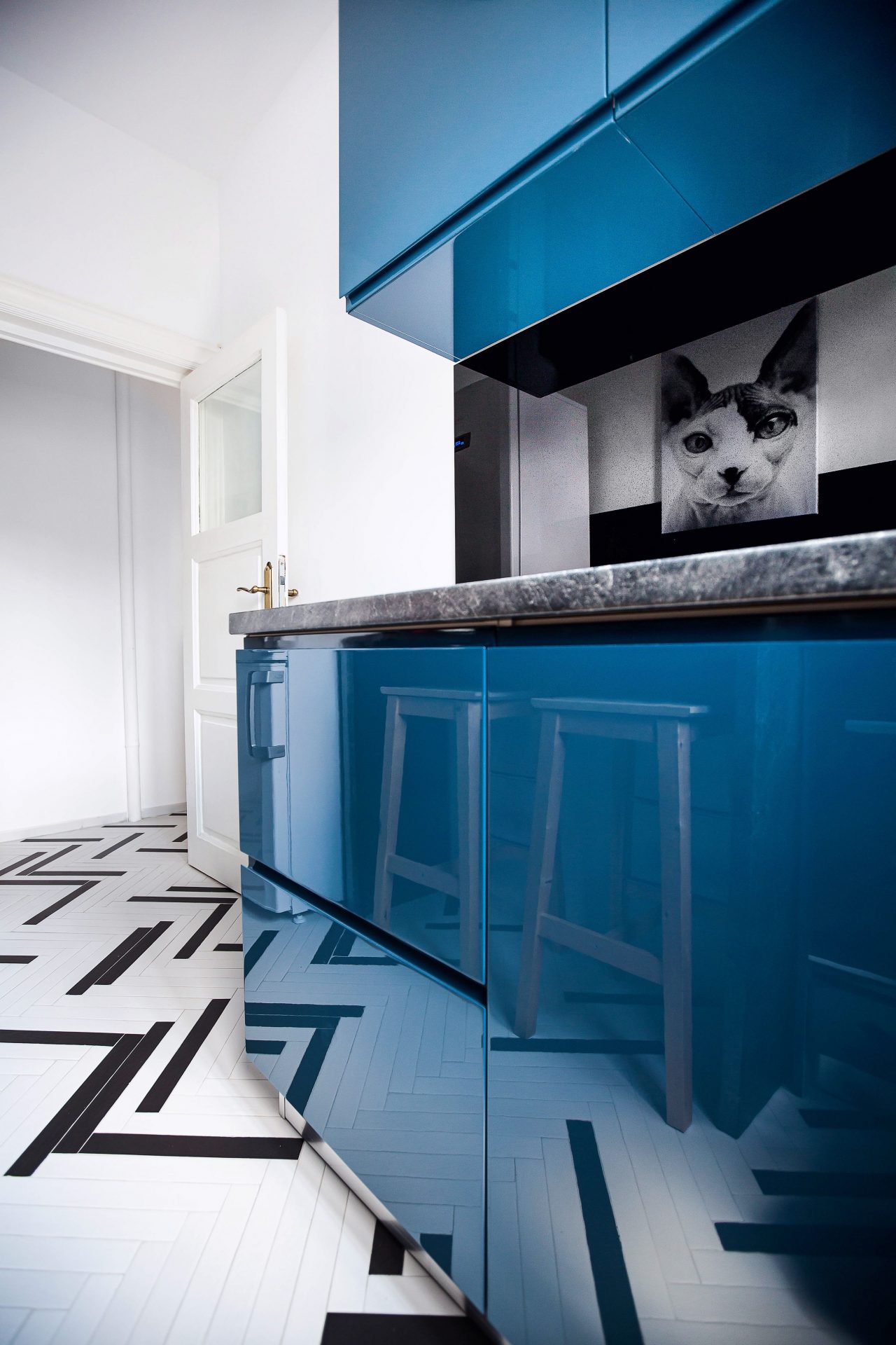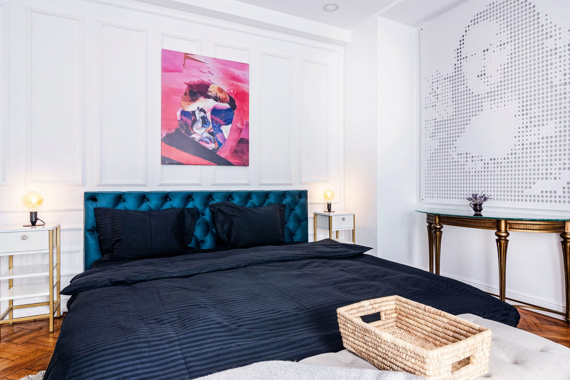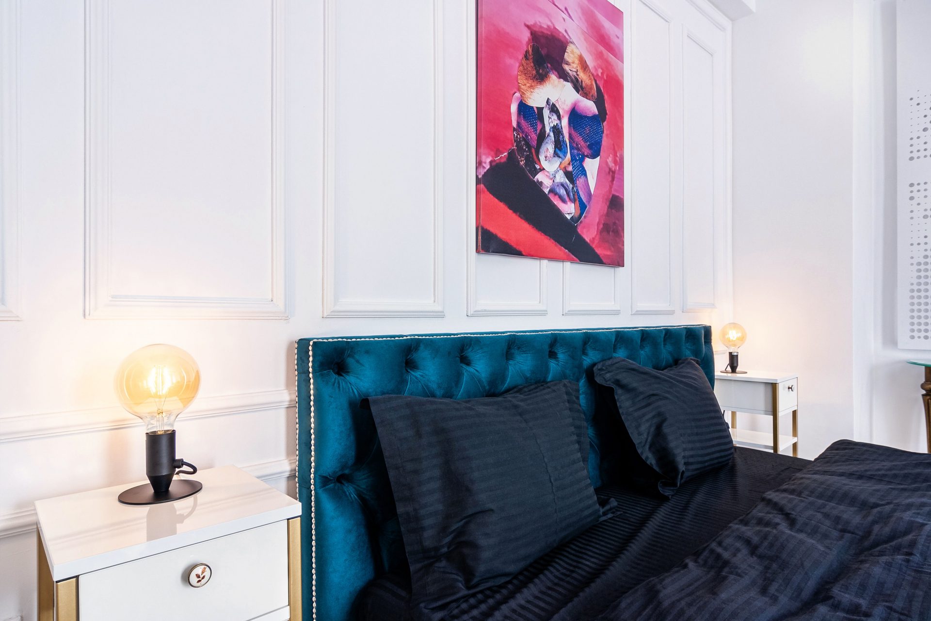Apartamentul este amenajat intr-un stil eclectic ce inrameaza avangardismul si artisticul prin accente puternice de culori, texturi, nuante de negru si printuri indraznete
