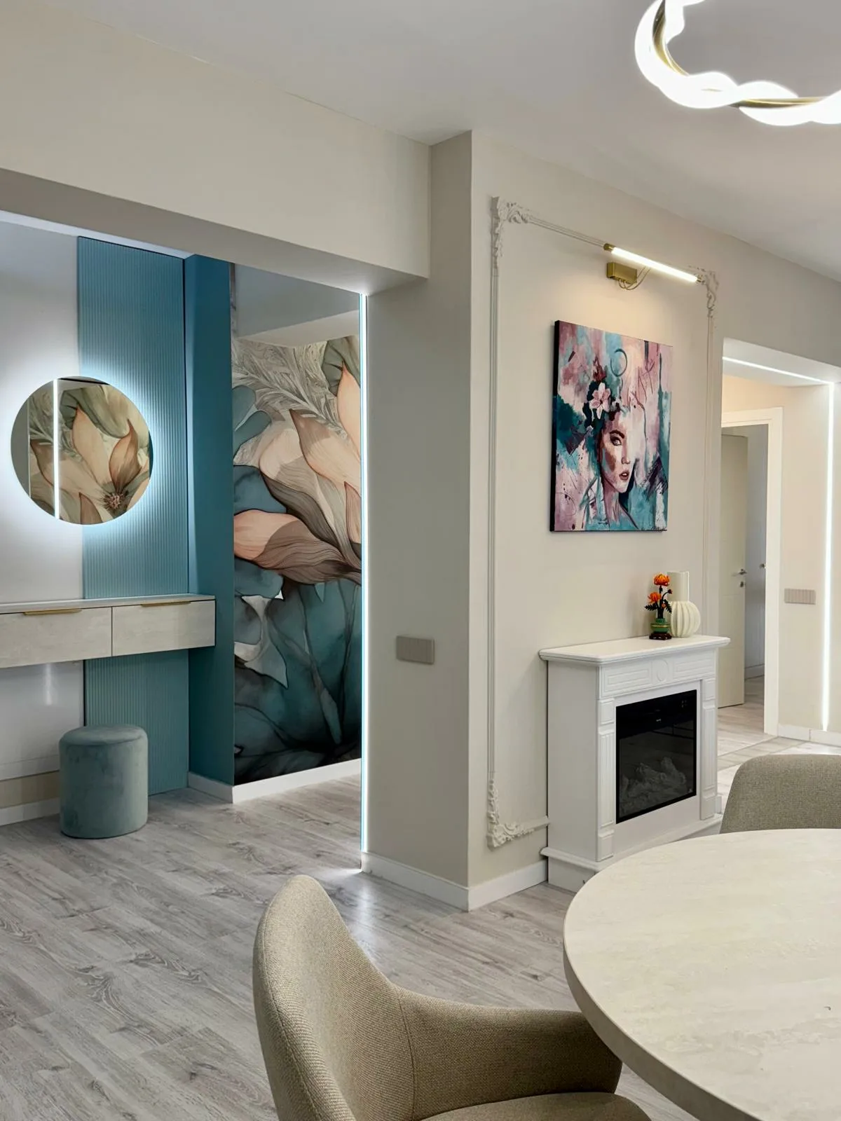 ALT Design propune în acest proiect o amenajare rezidențială cu o identitate soft-contemporană, în care influențele clasice sunt reinterpretate într-o manieră actuală, calmă și coerentă. Conceptul urmărește crearea unui spațiu elegant, dar primitor, în care detaliul decorativ este atent dozat și pus în valoare prin lumină, proporții și texturi.