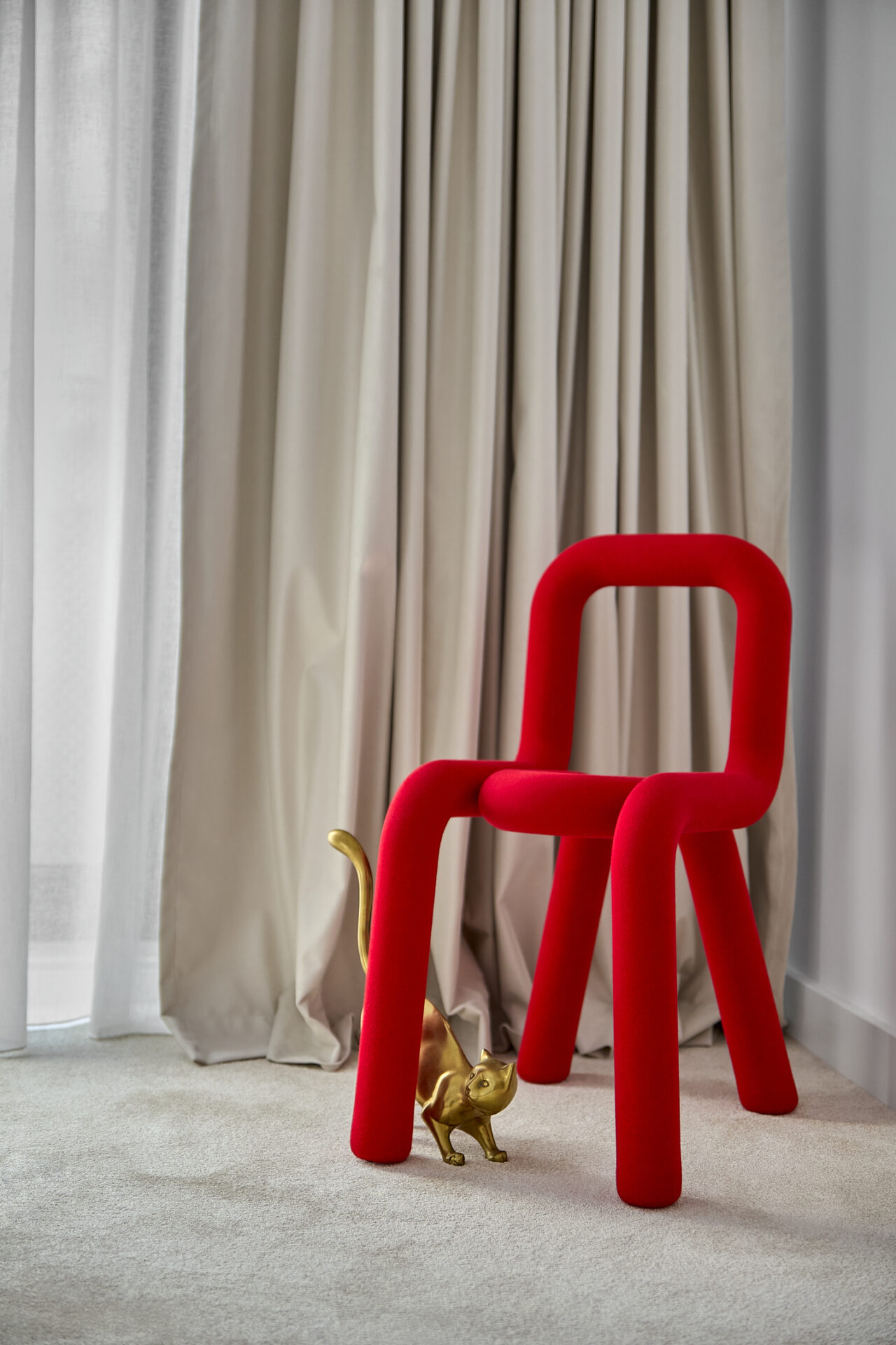 În al treilea și ultimul aspect prezentat de noi pe acest subiect al utilizării responsabile a materialelor, la nivelul mobilierului, multe dintre piesele ce îl compun sunt elemente vintage și antichități, care exclude prezența și implicit fabricarea unor noi produse, dar și minimizarea deșeurilor din renunțarea la acestea. Poate și datorită plăcerii cu care am lucrat acest proiect, pot spune că nu am întâmpinat piedici la nivel estetic. Comunicarea cu beneficiarii a fost una foarte bună pe tot parcursul derulării conceptului, proiectului și implementării, toate acestea derulându-se cursiv. Singurele provocări au fost la nivel de implementare a soluției în stadiul în care locuința se afla la momentul preluării acesteia, cu vicii majore la nivel de izolații termice și hidraulice și în mică măsură de compartimentare.