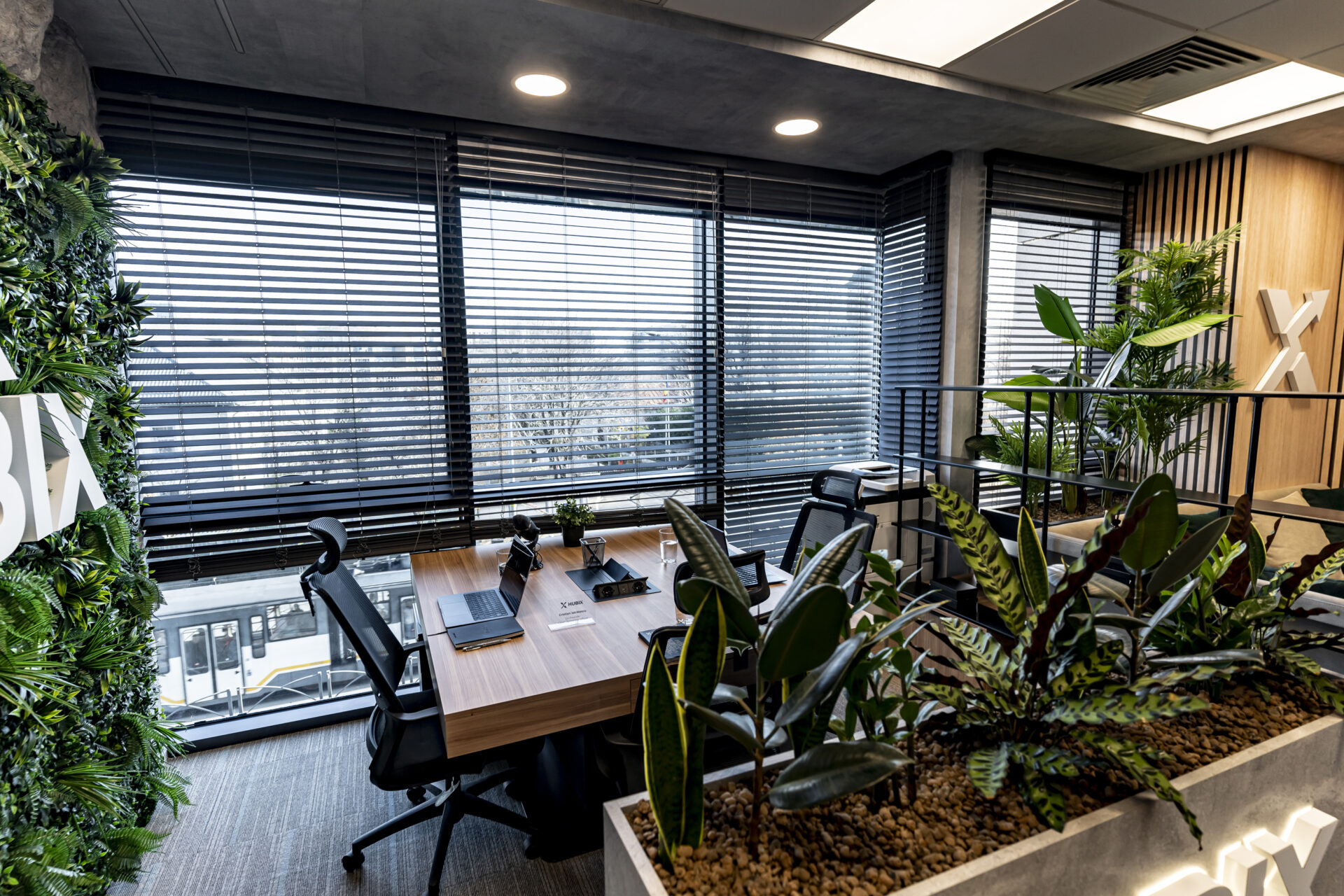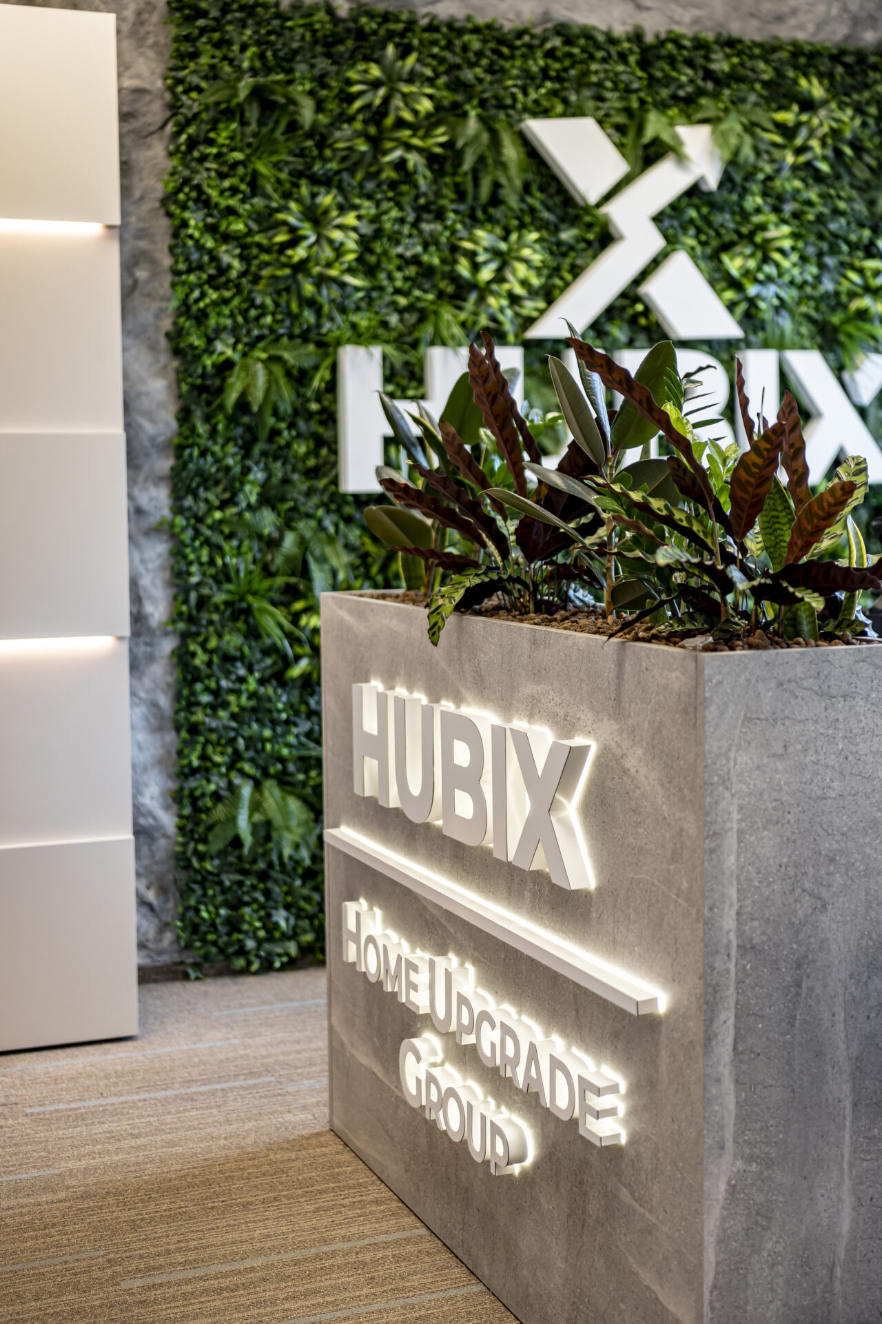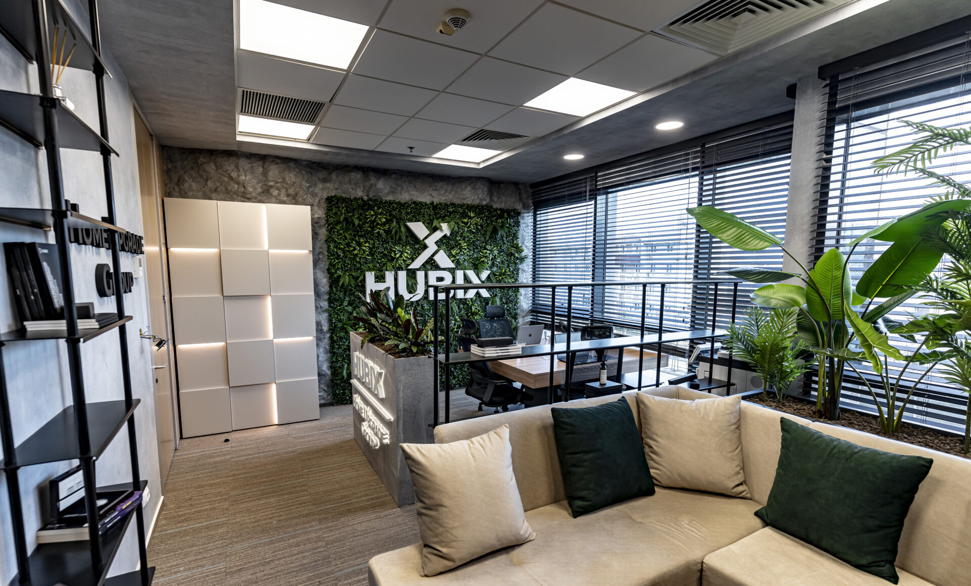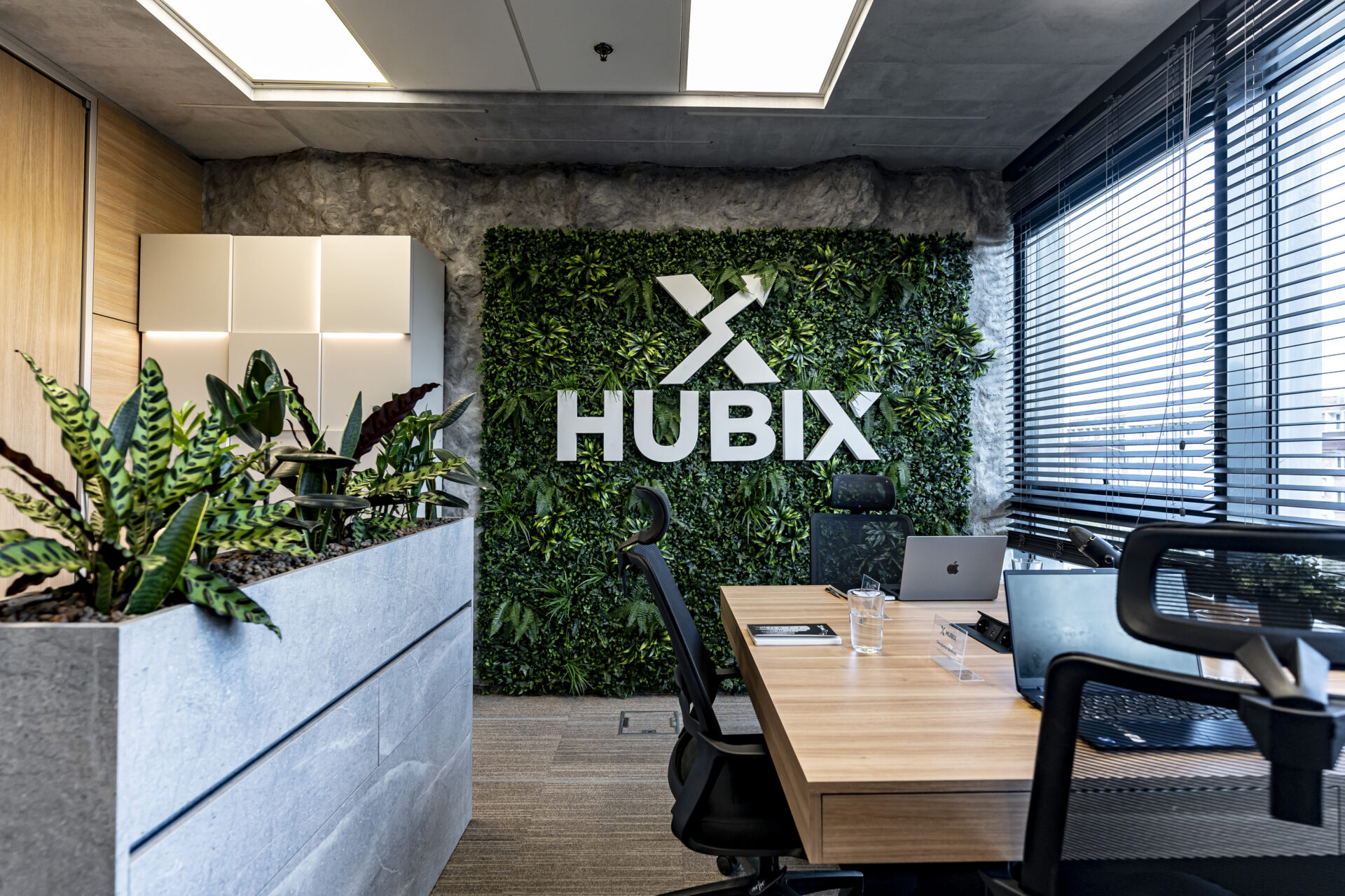 Proiectul de amenajare a biroului Hubix a demonstrat că și într-un spațiu compact de 24 mp se poate crea un mediu de lucru dinamic, inspirator și perfect adaptat nevoilor unui business modern. Împărțirea inteligentă a spațiului a permis crearea unor zone distincte, fiecare cu o funcție specifică. Fiecare piesă de mobilier a fost gândită pentru a maximiza funcționalitatea spațiului și pentru a crea un mediu de lucru organizat. Zona de colaborare creează un ambient informal și primitor pentru întâlniri și brainstorming, delimitată de zona de lucru printr-o bibliotecă realizată din metal. La intrarea în birou am plasat strategic o jardinieră multifuncțională, pentru o delimitare a spațiului și ca suport pentru o prezentare vizuală a parteneriatelor, prin intermediul denumirilor companiilor iluminate.