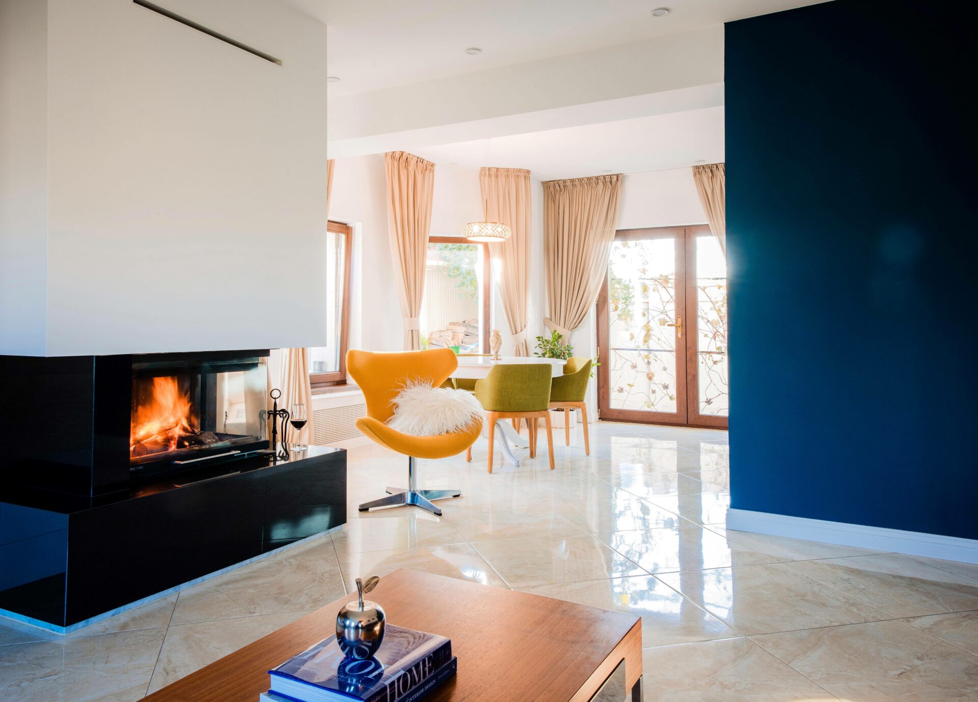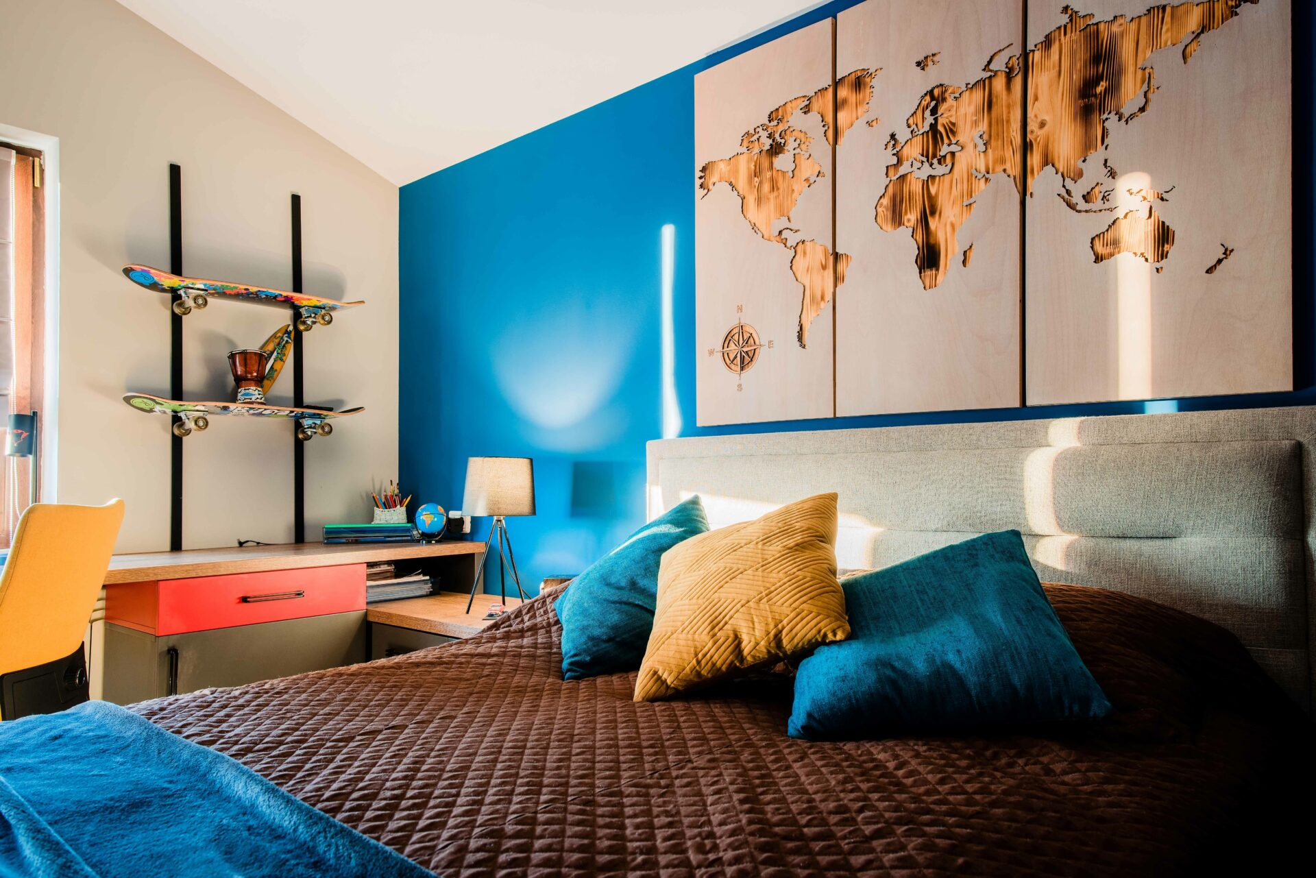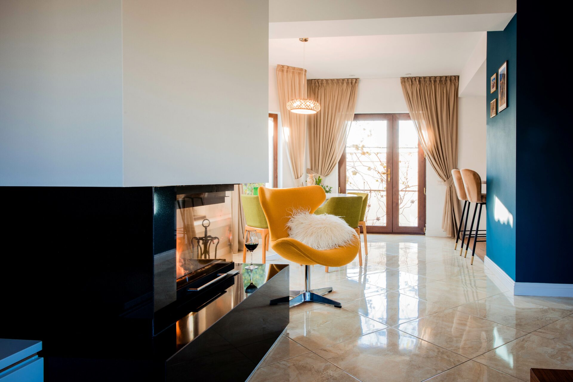Un interior descrie o poveste de viață și suspendă timpul în structuri și culori, volume, linii și texturi. Pornesc mereu în realizarea designului unui spațiu de la concept, iar acesta este unic pentru că el se referă la ceea ce clientul a remarcat în viață ca fiind plăcut, frumos și astfel, merită a fi amintit. Am ales pentru design-ul acestei locuințe culori și texturi contrastante care să creeze vibrație și implicit, viață. Contrastele de culoare, formă și stil le-am juxtapus unui cadru în care confortul este nota predominantă iar in contrast am alaturat simplitatea celui mai complex si intim obiect al amenajarii, respectiv semineul in care am ales sa pastram flacara vie si autentica pentru emotie, caldura si efect. M-au inspirat plăcerea vacanțelor, amenajările hotelurilor, șemineele și poveștile lor și le-am tradus eclectic, într-o compoziție clasică și cu accente minimaliste în același timp. Dormitorul „piciu-lui” este o alta poveste cu aer retro, care descrie simbioza dintre confort si activ, curiozitate si profunzime, odihna si studiu, o poveste desfasurata intr-un cadru spatial restrans. In fapt si in intreg am realizat o amenajare eclectica, un joc de forte intre simplitate si plin, liniste si forta, inchis si deschis.