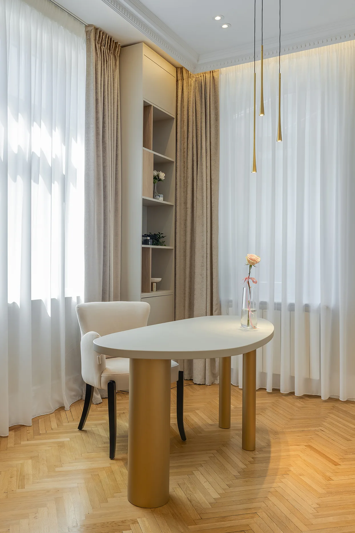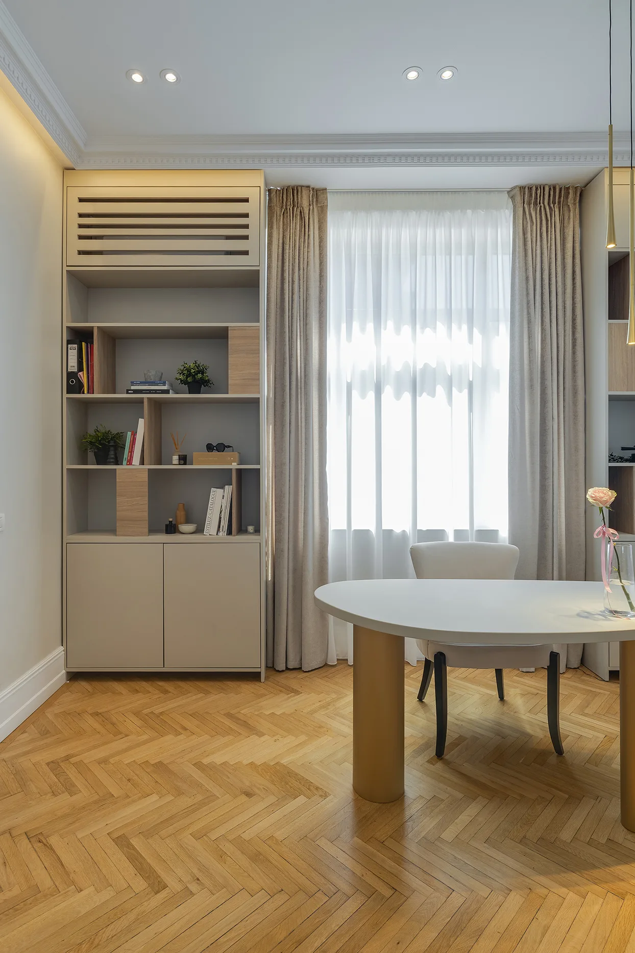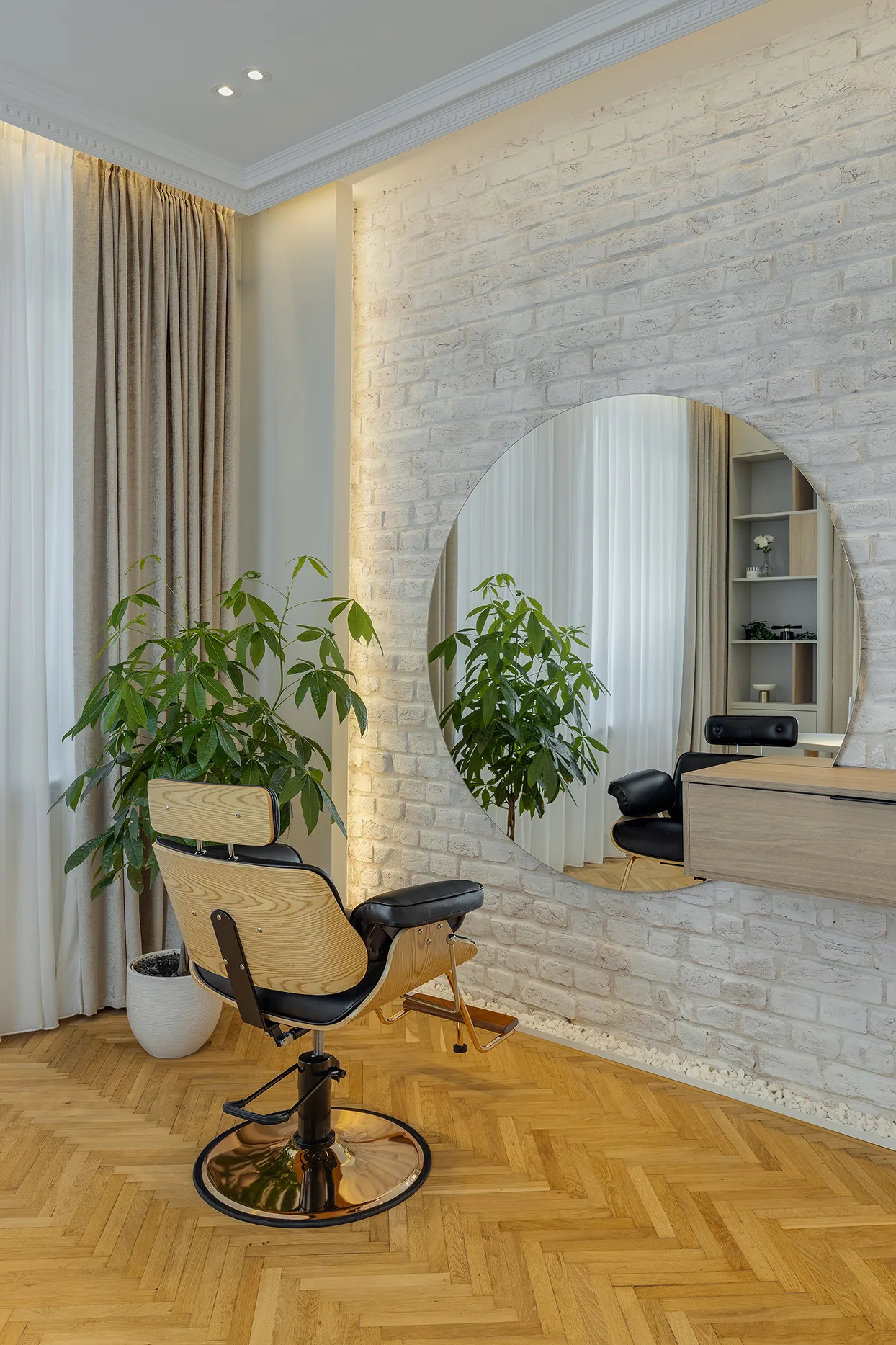 Proiectul reinterpretează o casă neobrâncovenească centenară din centrul Bucureștiului, restaurând integral interiorul și valorificând detaliile originale. Materiale naturale, accente discrete de alamă și iluminatul atent completează designul contemporan. Spațiul rezultat oferă servicii premium de beauty, într-o atmosferă exclusivistă, unde eleganța istorică și confortul modern coexistă armonios pentru clienți.