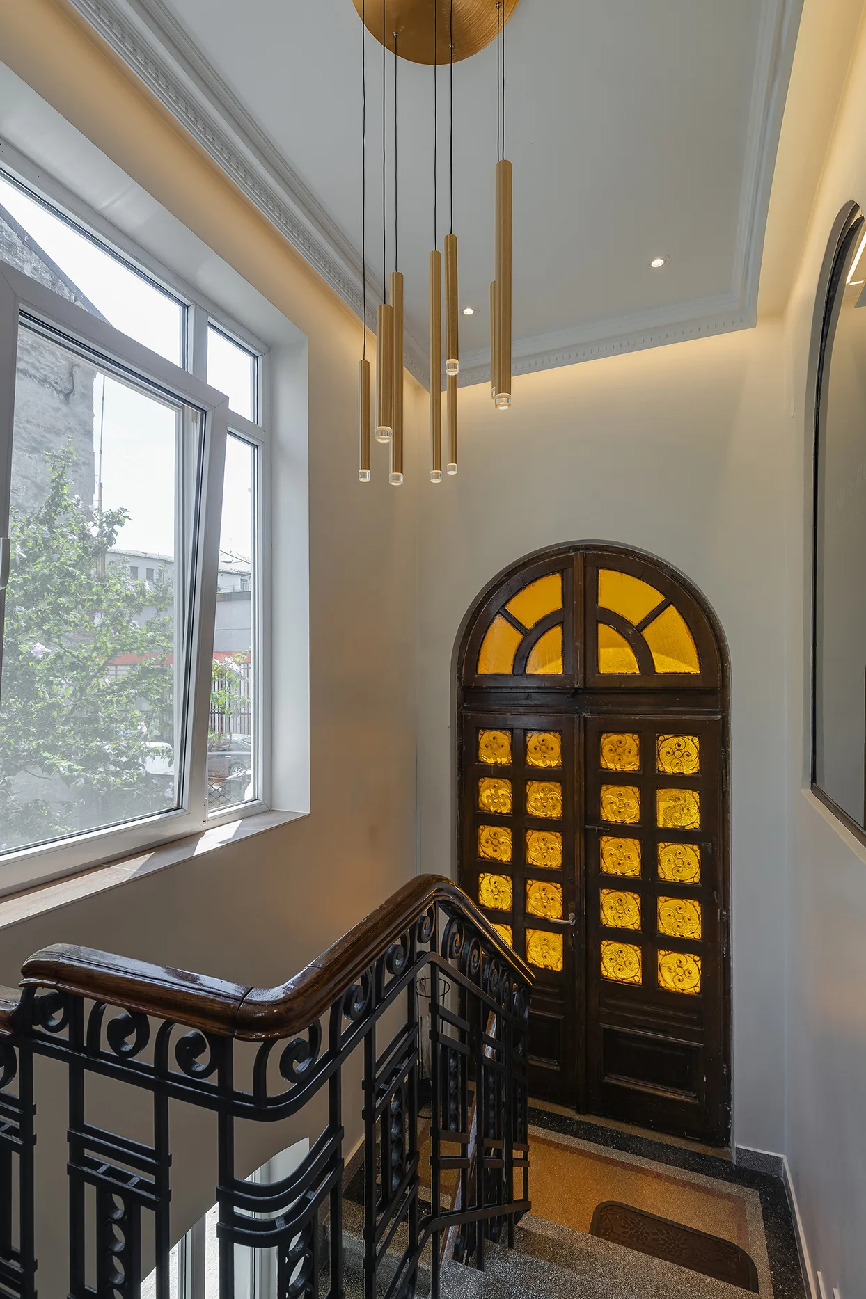 Mobilierul cu forme fluide, oglinzile circulare și corpurile de iluminat contribuie la amplificarea luminii naturale și la crearea unei atmosfere sofisticate și primitoare. Rezultatul conceput de Studio 2.1  este un spațiu urban în care trecutul și prezentul coexistă firesc, oferind o experiență contemporană de rafinament și confort.