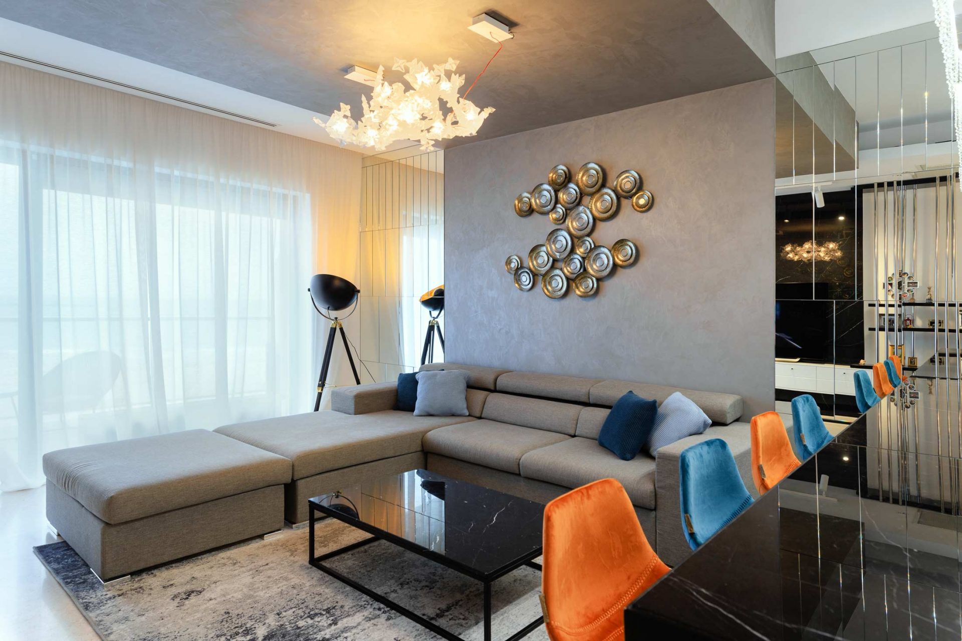 Pornind de la acest fapt și prin acceptul beneficiarilor, ne-am permis să introducem culori mai închise și să folosim materiale cu o nuanță mai sobră în contrast cu ambientul de litoral în amenajarea acestui apartament.