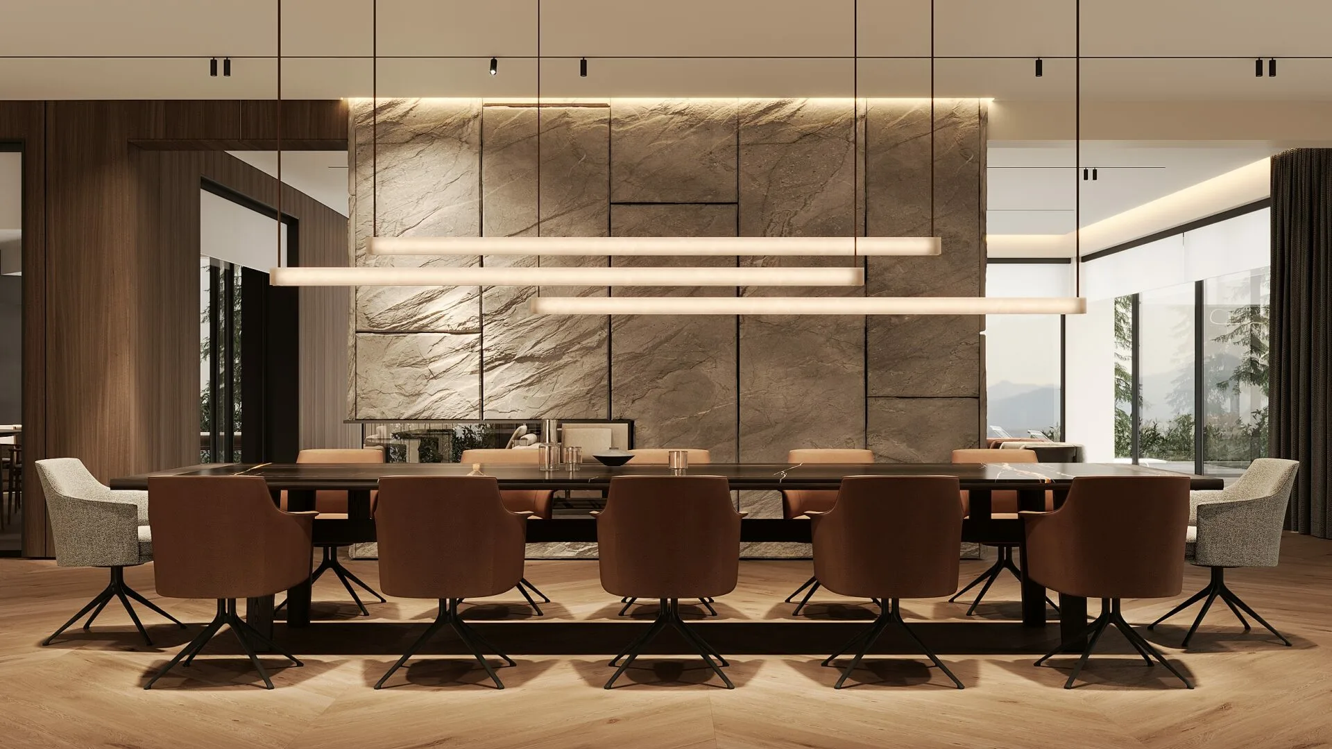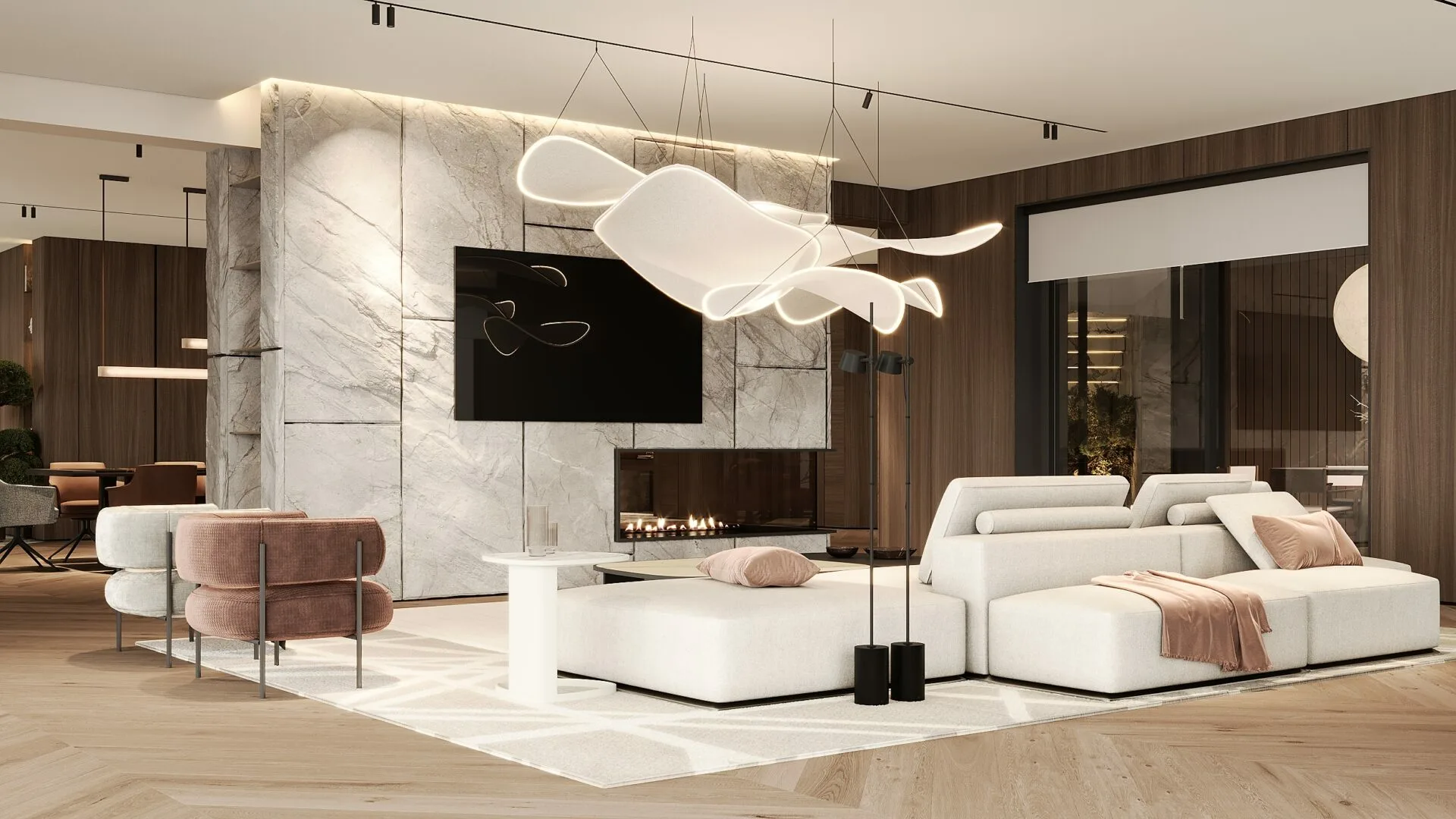 Am proiectat această casă de 1000 mp din Dej ca un spațiu modern, cald și elegant, aflat în execuție. Am folosit materiale naturale, lumină ambientală și detalii premium pentru a crea un ambient rafinat, în care funcționalitatea și designul se îmbină armonios într-un stil contemporan exclusivist.