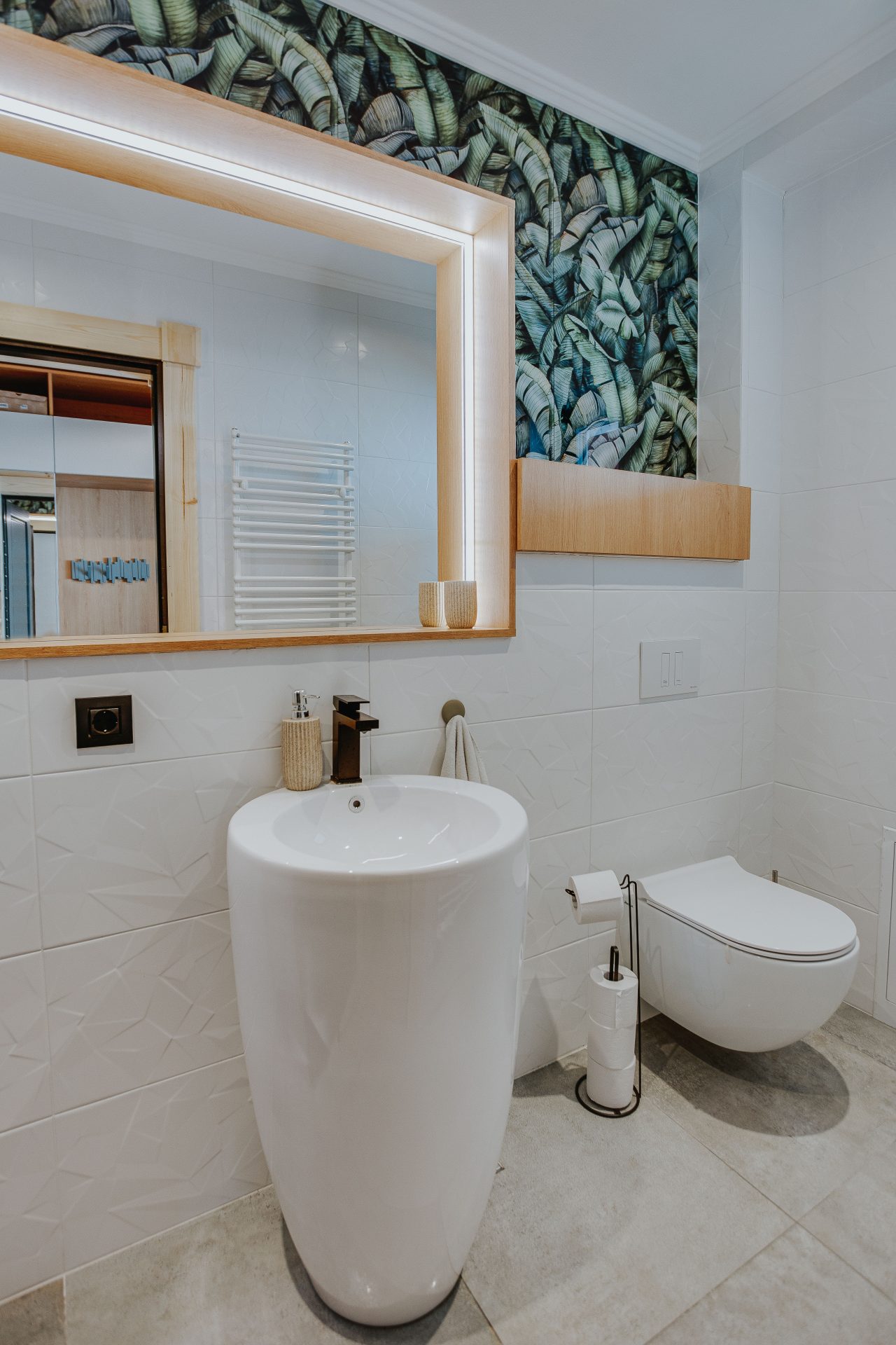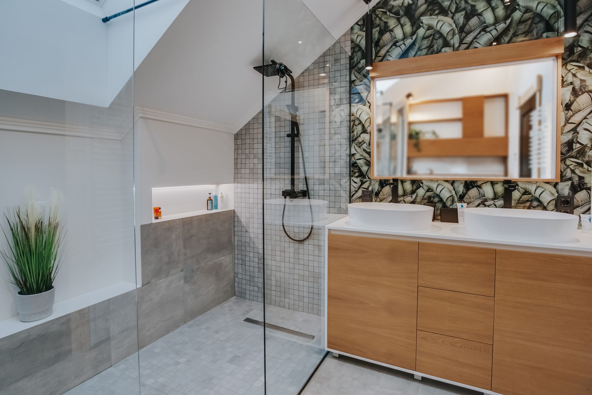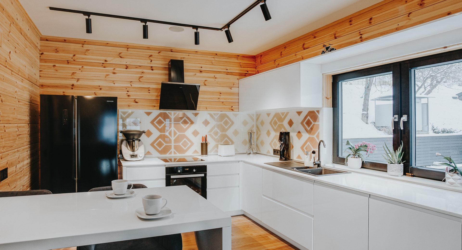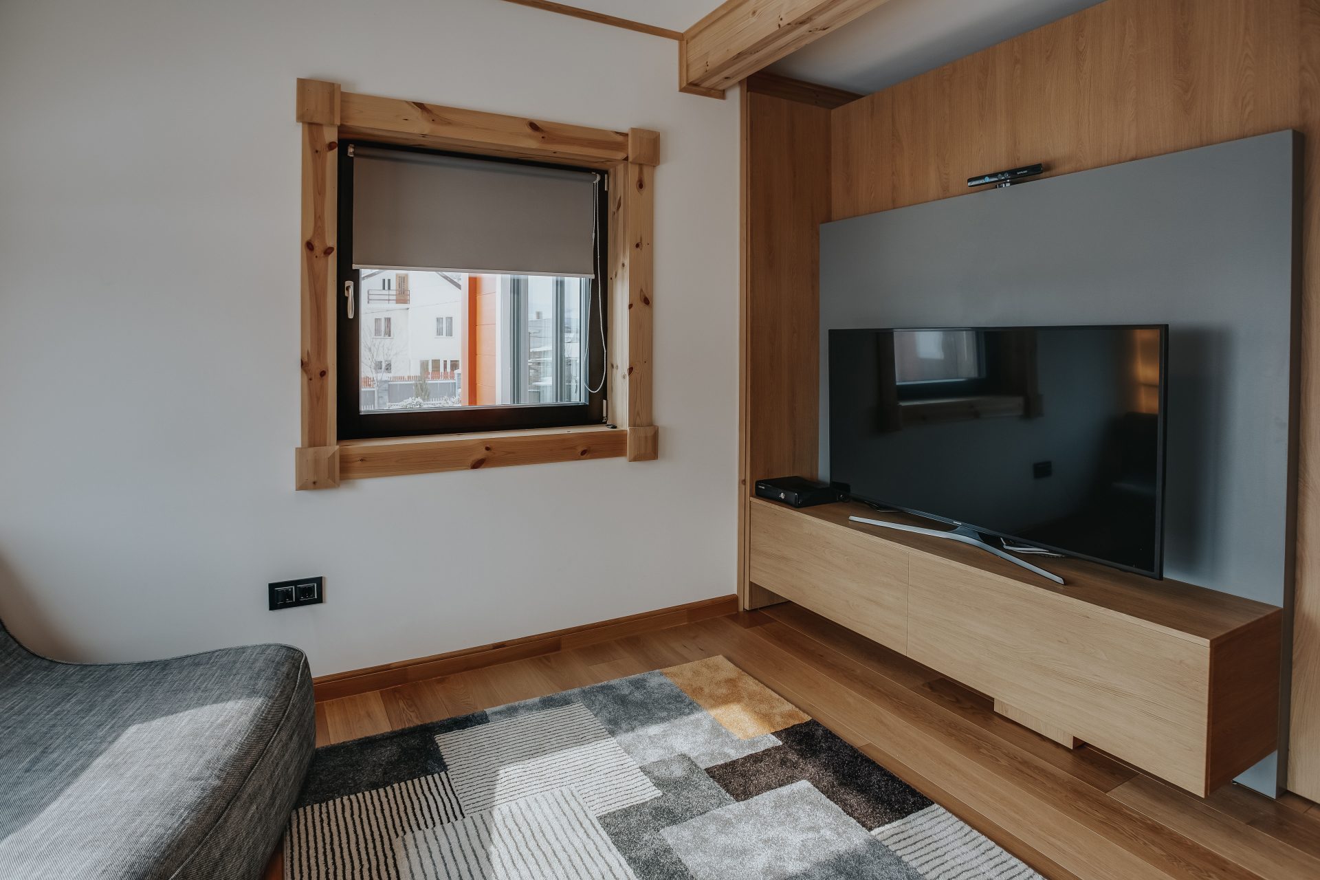 Amprenta in amenajarea casei este chiar lemnul, folosit în abundență, atât pentru placarea pereților, cât și pentru finisajul pardoselii, piese de mobilier și decorațiuni. Conceptul propus este de casa de familie cu un design contemporan. Aerul rustic al lemnului brut este modernizat prin liniile drepte și finisajele lucioase ale câtorva piese de mobilier, plăcile ceramice colorate sau cu aspect de ciment și tapițeriile de catifea și bumbac.