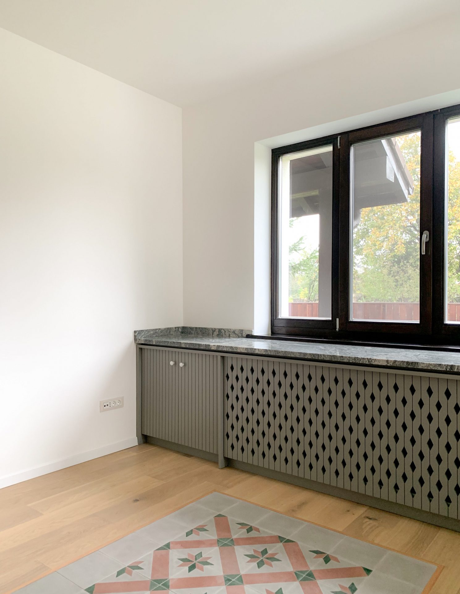 Santierul l-am primit la “rosu”, o vila a anilor 2000 in care nu se intrase, cred, de mai bine de 10 ani. In acest sens, si clientii au fost, mai mult sau mai putin, de toate varstele. Tema principala a amenajarii casei a fost ajustarea functiunilor interioare, finisarea tuturor spatiilor si mobilarea cu strictul necesar a tuturor camerelor.