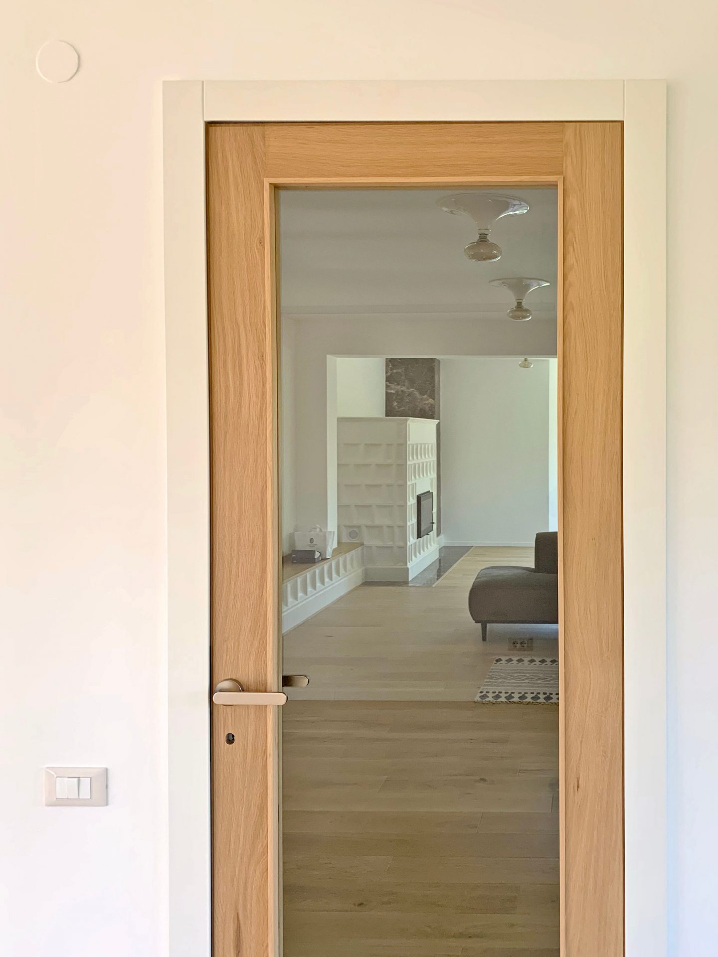 Surprinzator (sau nu), spatiile interioare sunt bine proportionate, luminoase, cu holuri generoase si un traseu bine gandit. Tinand cont de contextul rural, arhitectura casei dar si “clientii” diferiti, intentia s-a orientat catre detaliul bine executat. De aici, au aparut ramificatii ce tin de un anumit scenariu in care toata lumea e prezenta: spatii cat mai deschise si primitoare, cu eventuale impartiri functionale generate de piese de mobilier sau orientare. Lasand la o parte, pozitionarea ferestrelor si usilor, am incercat ca in amenajarea casei fiecare pozitionare sa fie gandita un raport cu un element generator: fotoliu/canapea cu semineul, masa de dining cu insula de bucatarie, etc. Prezenta a 3 generatii intr-un singur loc m-a indreptat spre un limbaj interior bazat pe materiale si culori inspirate din natura, cu introducerea unor detalii sau rezolvari artizanale in toate piesele propuse (cumparate, construite sau de mobilier).