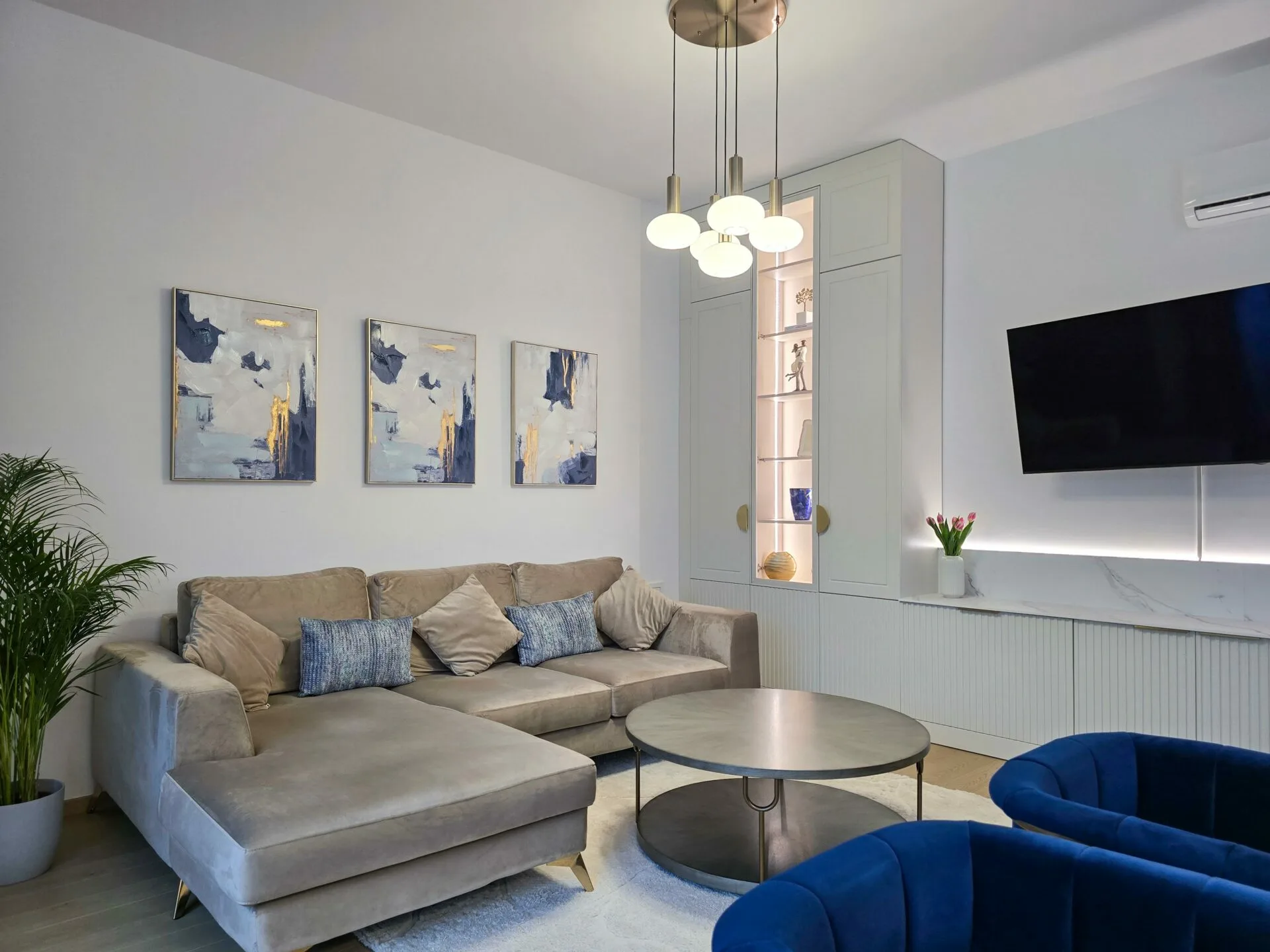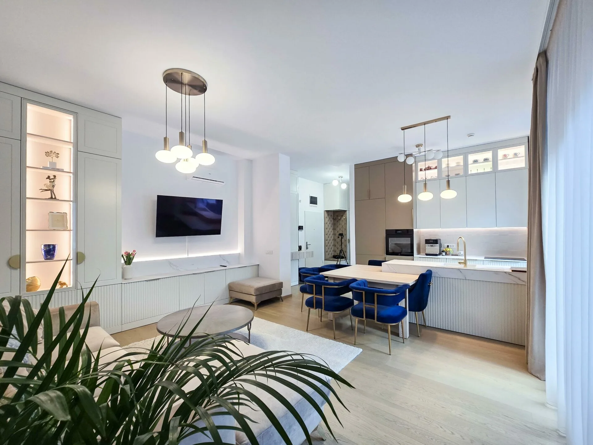 CM Apartment este un apartament finalizat în complexul Isho din Timișoara, la finalul anului 2023. Este o amenajare care încântă vizual și care a avut curajul să iasă din tipare. Tonurile neutre și cromatica bej sunt în trend în ultimii ani, și nu datorită lipsei de imaginație, ci datorită confortului vizual pe care îl creează. Tocmai din acest motiv, am optat și în acest apartament pentru o paletă de nuanțe de bej, care să deservească drept fundal unitar petelor de accent ce au emancipat spațiul. Albastrul este cel în jurul căruia gravitează amenajarea, cu o mică excepție, și anume dormitorul de oaspeți.