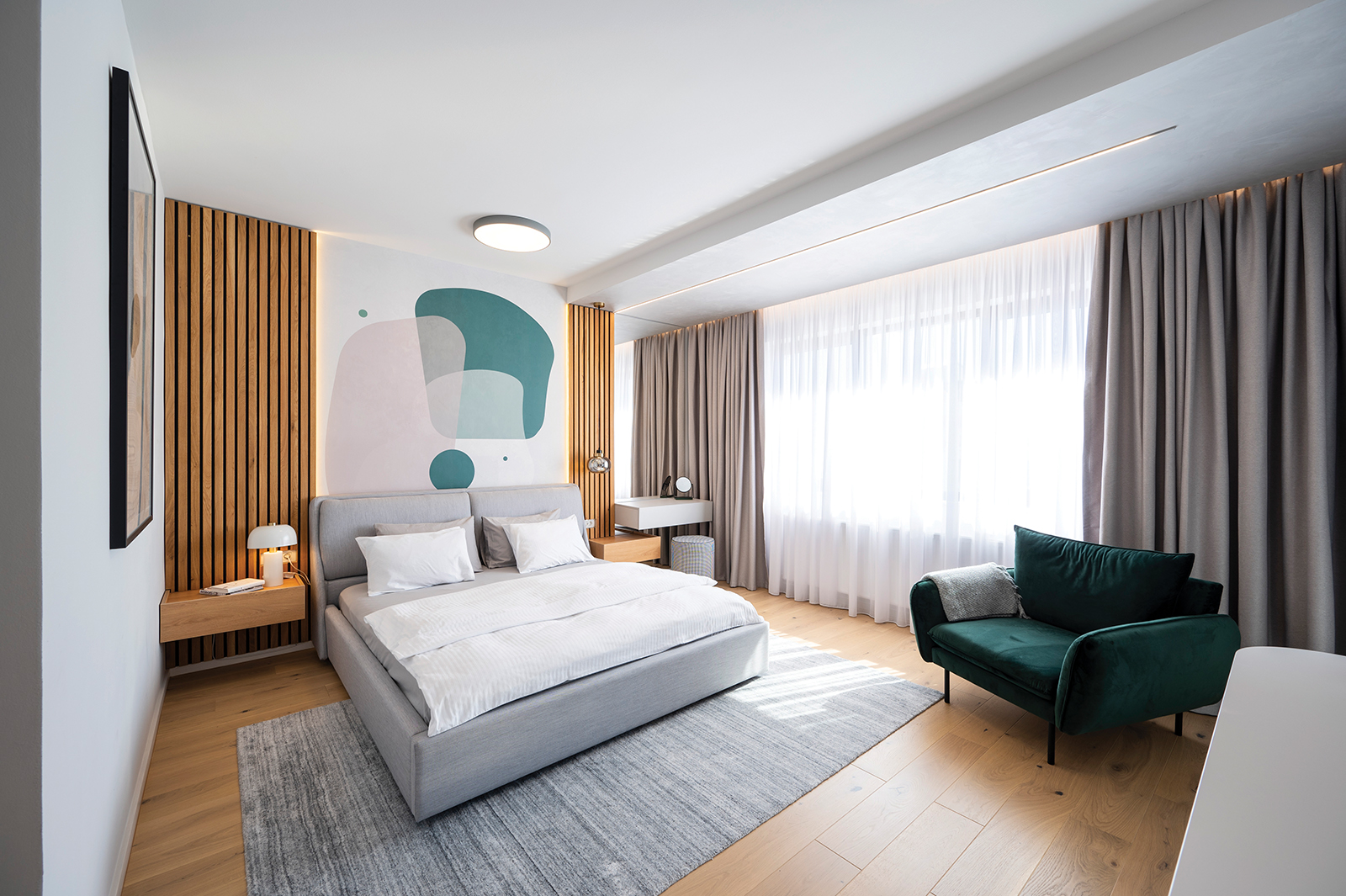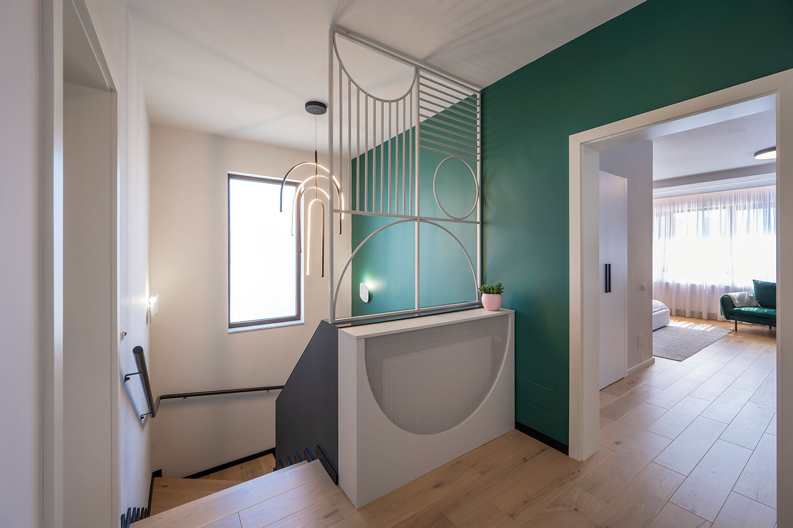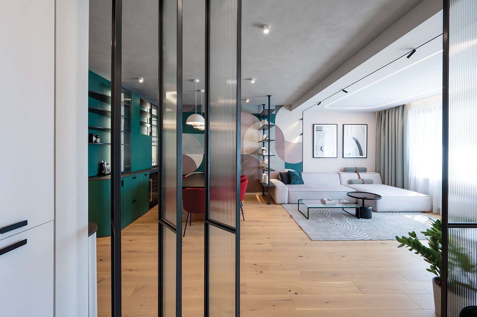 Color Shapes este o amenajare rezidențială, ce vibrează de culoare, emoție, energie pozitivă și mementouri ale personalității beneficiarilor. Este o amenajare modernă cu influențe art deco – sticlă canelată, arcade, detalii geometrice și spectru cromatic coerent.
