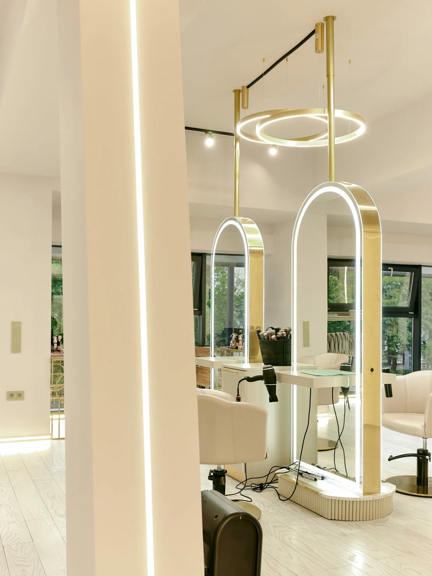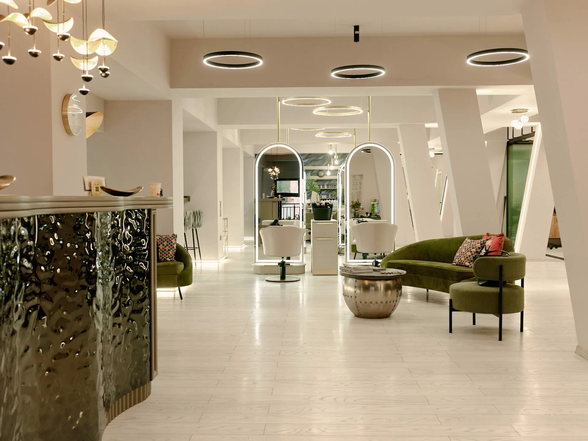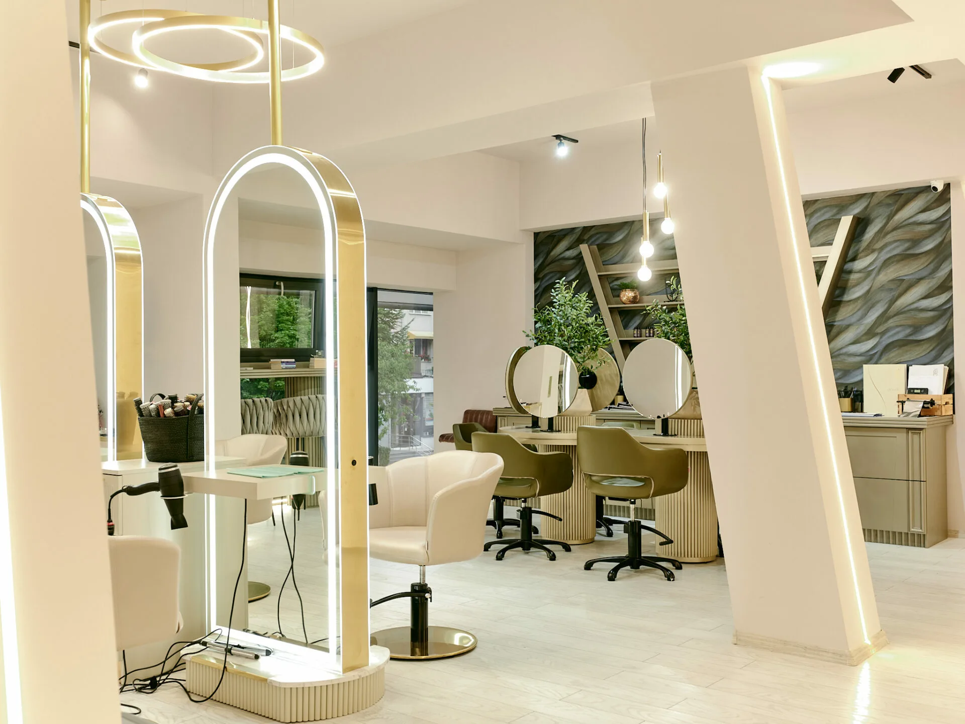Salonul Cult by Nella este conceput ca un spațiu-manifest al eleganței moderne, unde designul interior devine extensia frumuseții feminine. Conceptul pornește de la șuvița de păr ca simbol al grației, reinterpretată prin linii fluide, texturi sofisticate și reflexii controlate. Pereții sunt tratați cu vopsele fine, pastelate de înaltă calitate, care reacționează subtil la lumină, oferind profunzime și un efect vizual fin, aproape tactil.