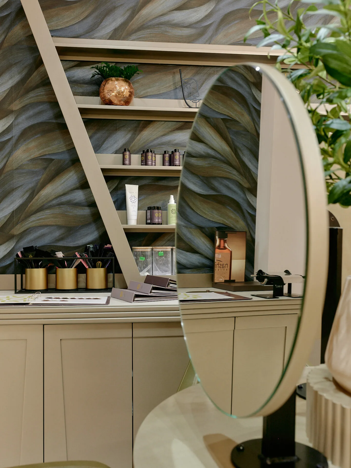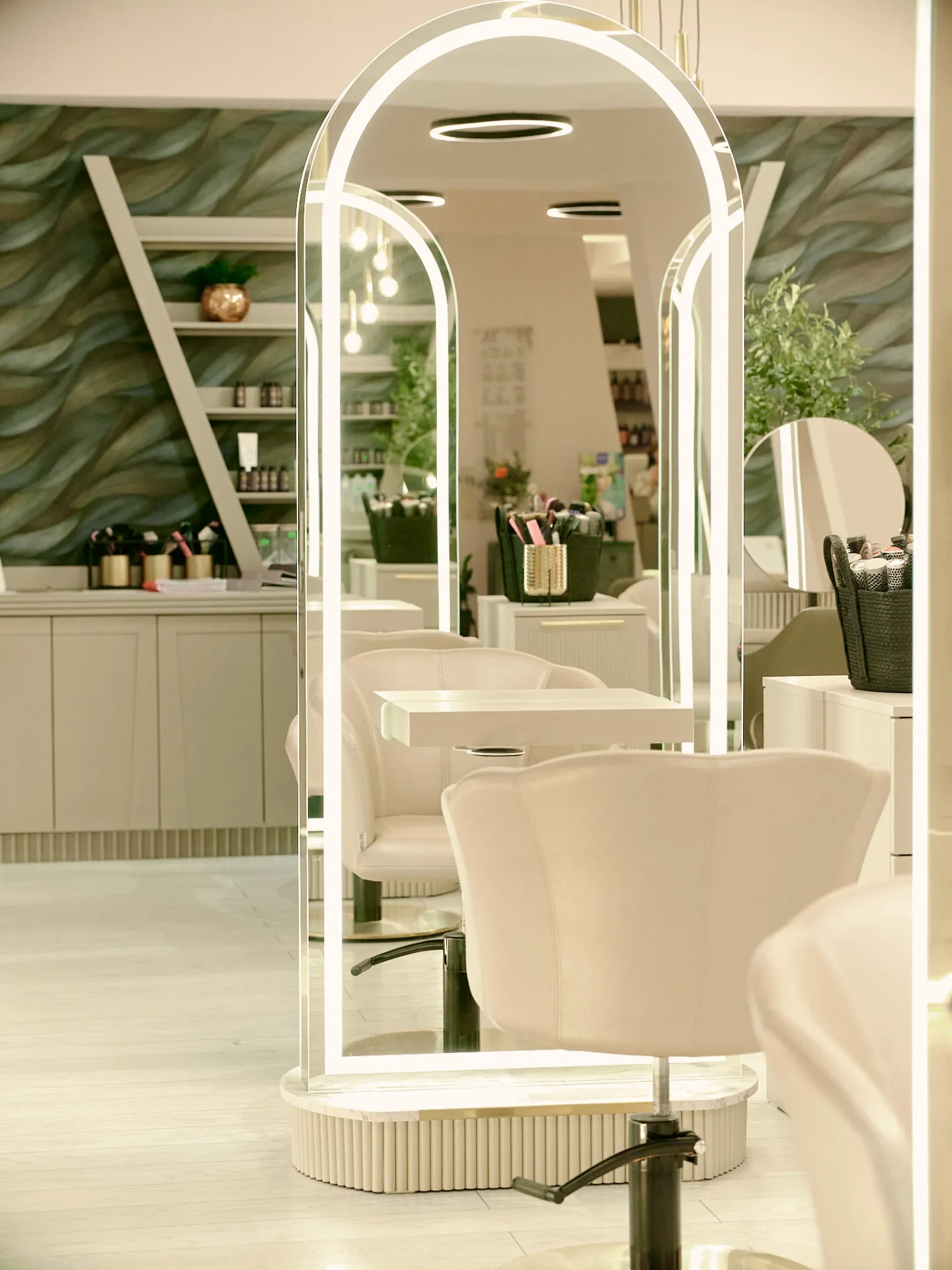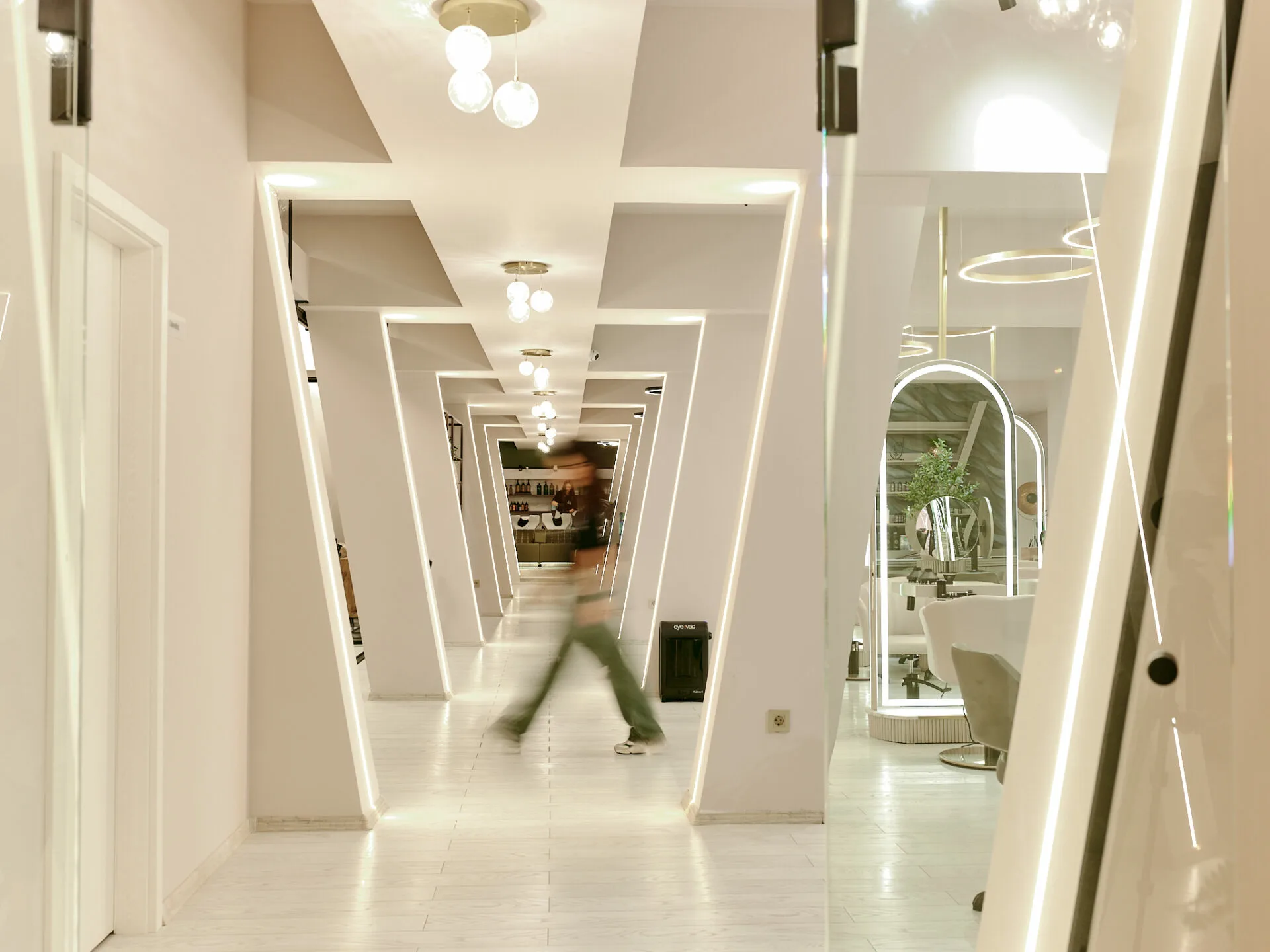 Salonul Cult by Nella este conceput ca un spațiu-manifest al eleganței moderne, unde designul interior devine extensia frumuseții feminine. Conceptul pornește de la șuvița de păr ca simbol al grației, reinterpretată prin linii fluide, texturi sofisticate și reflexii controlate. Pereții sunt tratați cu vopsele fine, pastelate de înaltă calitate, care reacționează subtil la lumină, oferind profunzime și un efect vizual fin, aproape tactil.