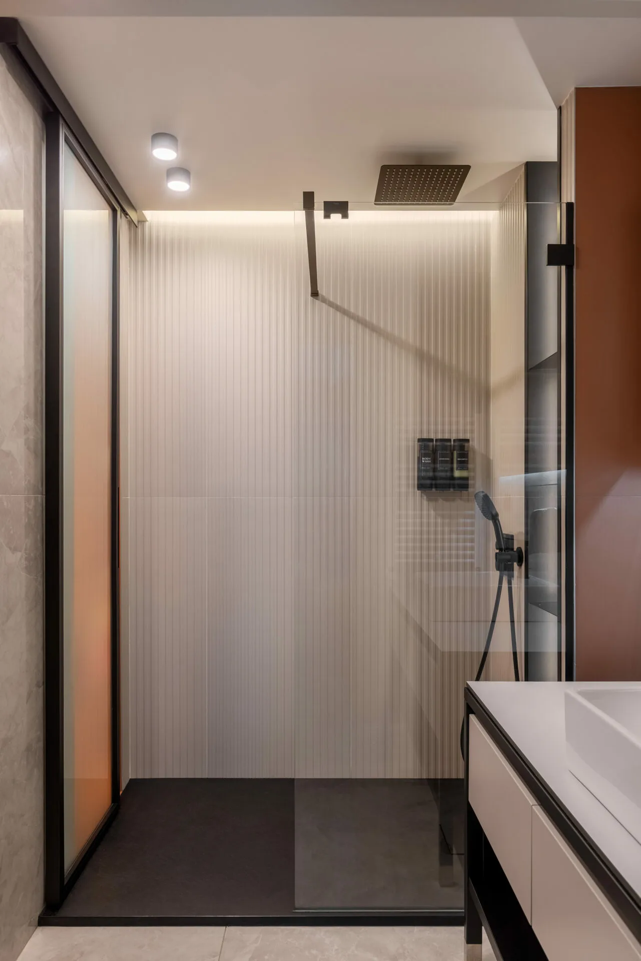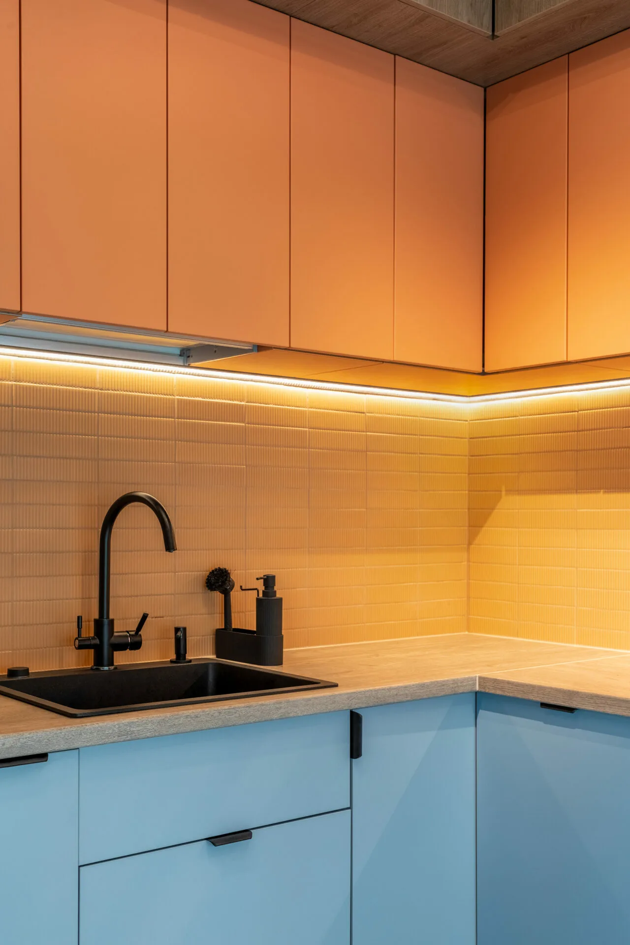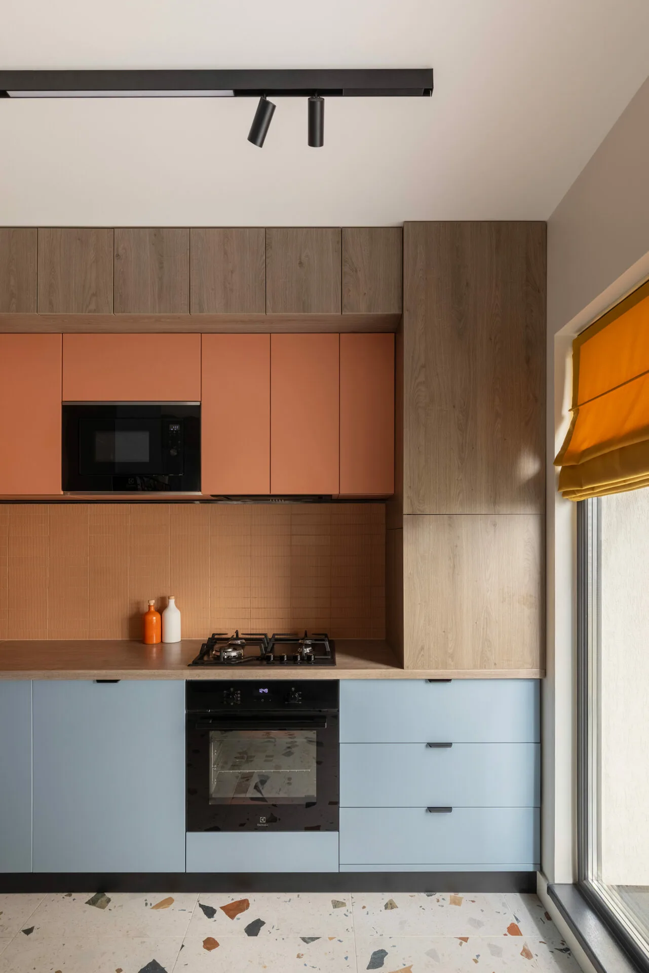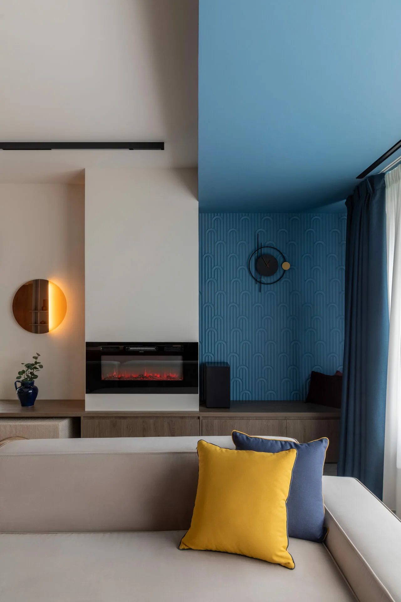 Într-o casă în care fiecare zi arată altfel, acest duplex a fost creat fără obstacole, fără rigiditate. Designul e o formă de grijă, care lasă loc copilăriei, liniștii și apropierii. Liniile sunt ferme, culorile delimitează; dar nu taie, totul se leagă natural. Designul nu impune reguli, doar le face mai blânde.