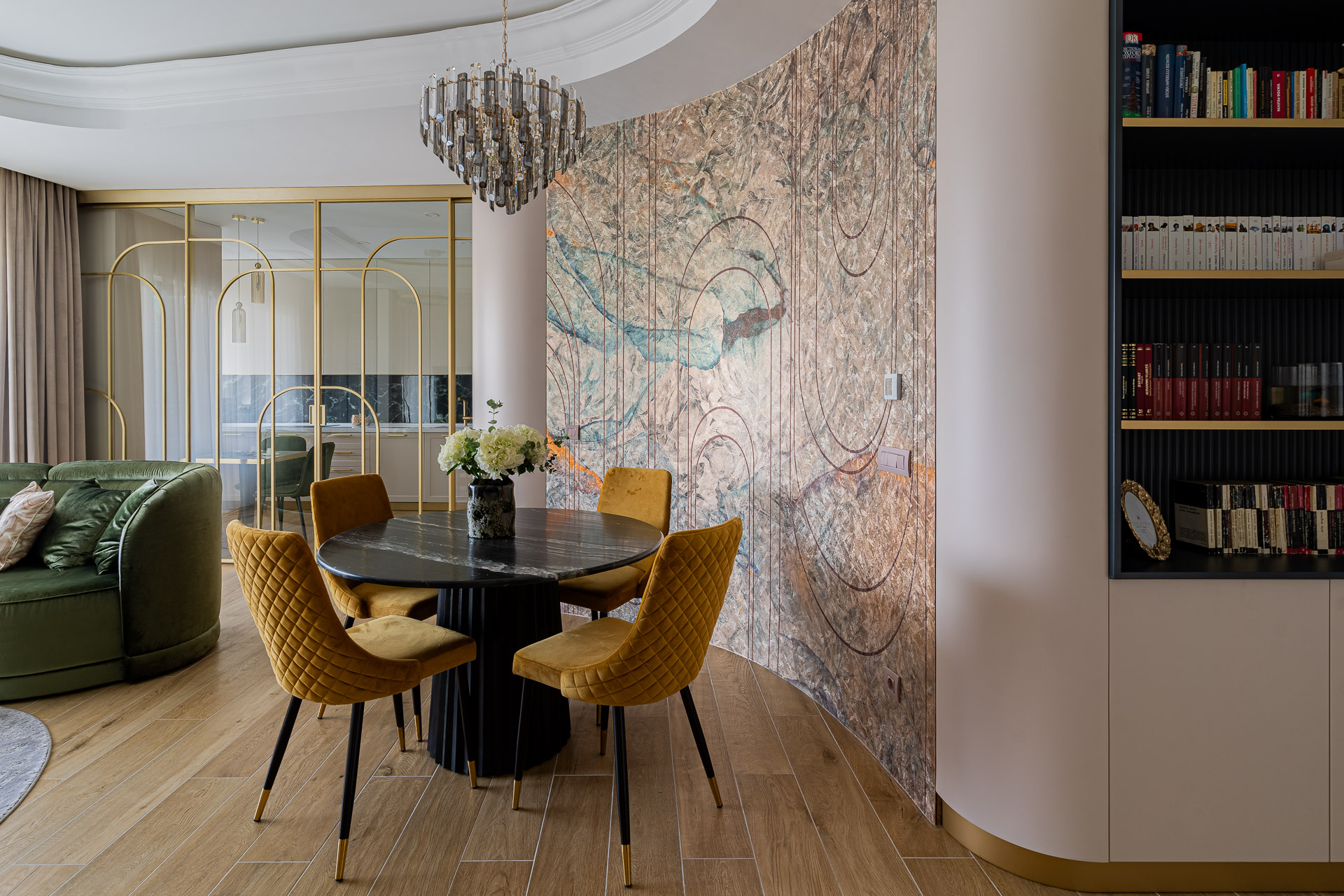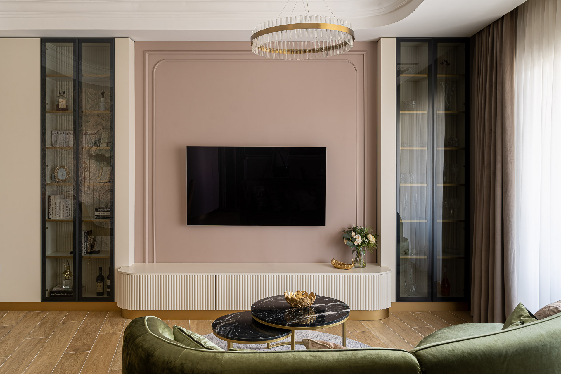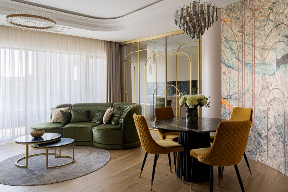 Inspirat de eleganța și funcționalitatea contemporană, conceptul de design pentru acest apartament este un echilibru perfect între modernitate și rafinament. Materialele alese cu grijă includ profile decorative, lavabilă, oglinzi, sticlă, metal auriu, MDF vopsit și fototapet, contribuind la crearea unei atmosfere inconfundabile. Gama cromatică bogată adaugă un plus de căldură și personalitate spațiului. Tonuri deschise de bej și roz se îmbină armonios, în timp ce accentele de bleumarin, verde și portocaliu aduc prospetime și vitalitate în fiecare colț al apartamentului. Detaliile aurii adaugă un strop de eleganță și glam, transformând fiecare spațiu într-o experiență estetică remarcabilă. În fiecare cameră, lumina naturală pătrunde generos, evidențiind atent fiecare detaliu al designului interior. Fiecare element a fost gândit pentru a crea un mediu funcțional și estetic, reflectând personalitatea vibrantă a locuitorilor și pulsul urban al orașului. Așadar, pregătește-te să fii învăluit de o atmosferă captivantă și să experimentezi eleganța modernă în acest apartament de excepție de pe Viitorului 134. Un spațiu unde contemporanul se împletește cu confortul, iar stilul de viață urban devine o adevărată operă de artă.