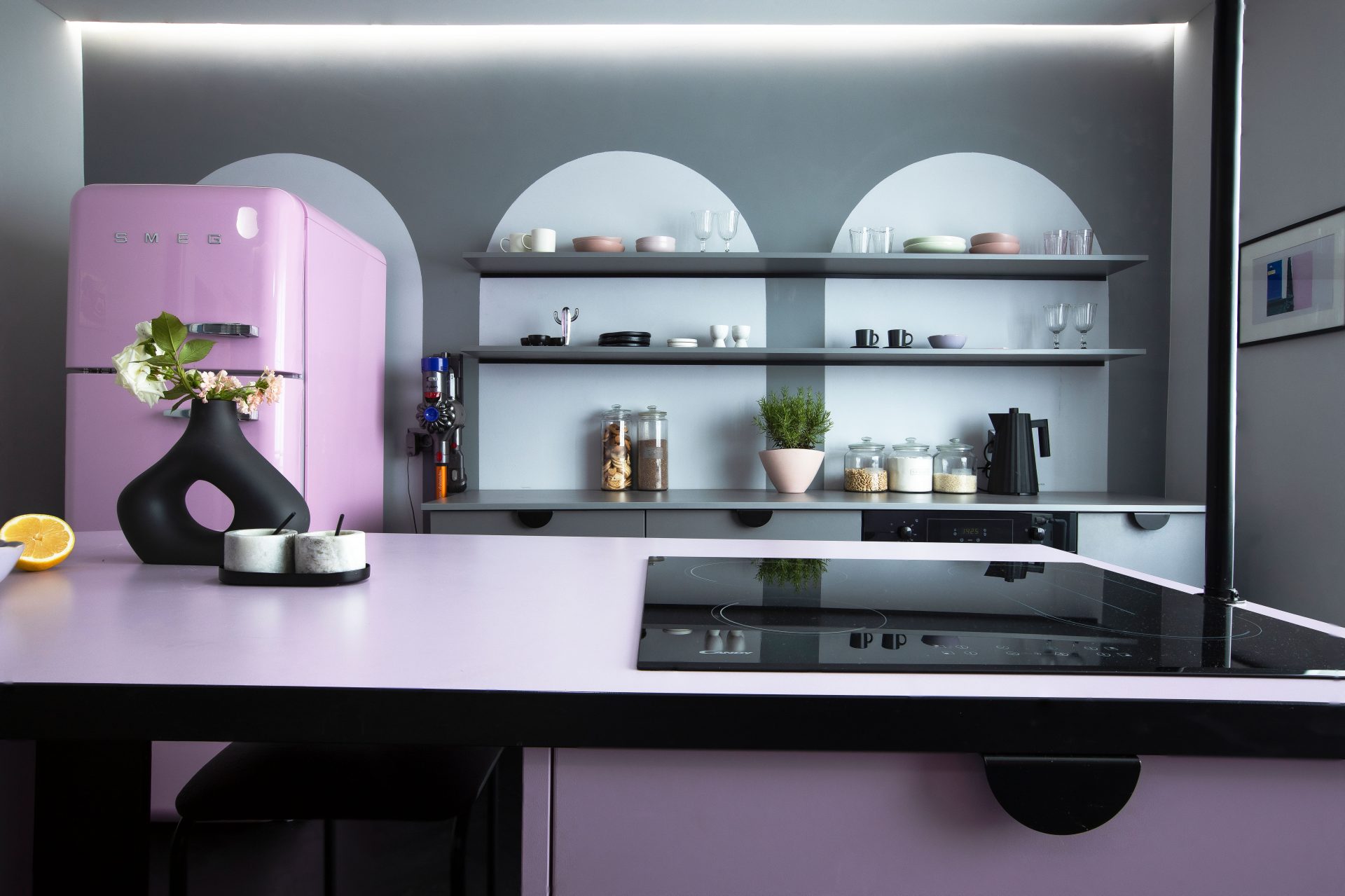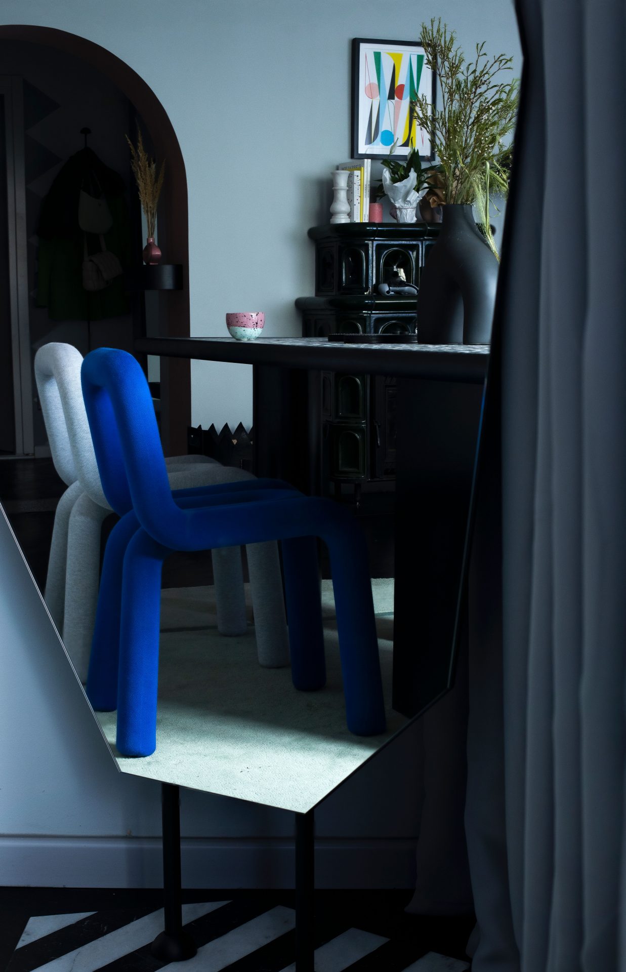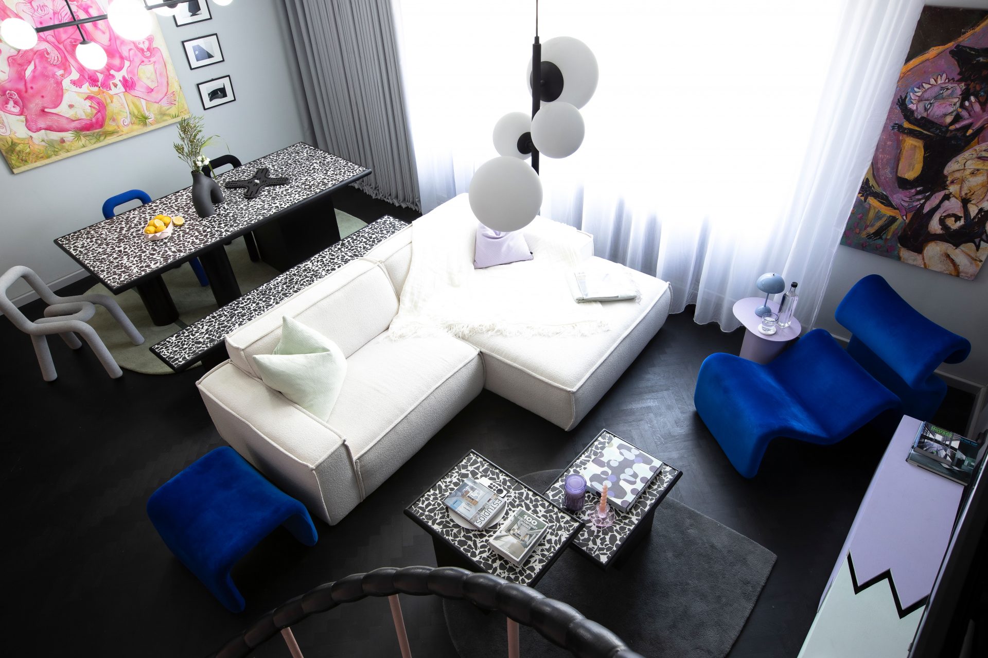 Fondatorii BIANCOEBIANCA adaugă semnătura de albastru eclectic îndrăzneț și nuante de roz bombon în amenajarea apartamentului lor din România. Au amenajat acest apartament de 86 mp la începutul anului 2022, situat intr-o cladire de la etajul 2, construita la sfarsitul anilor ’50.