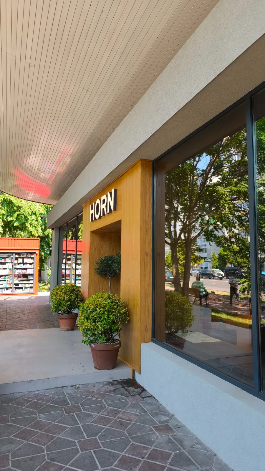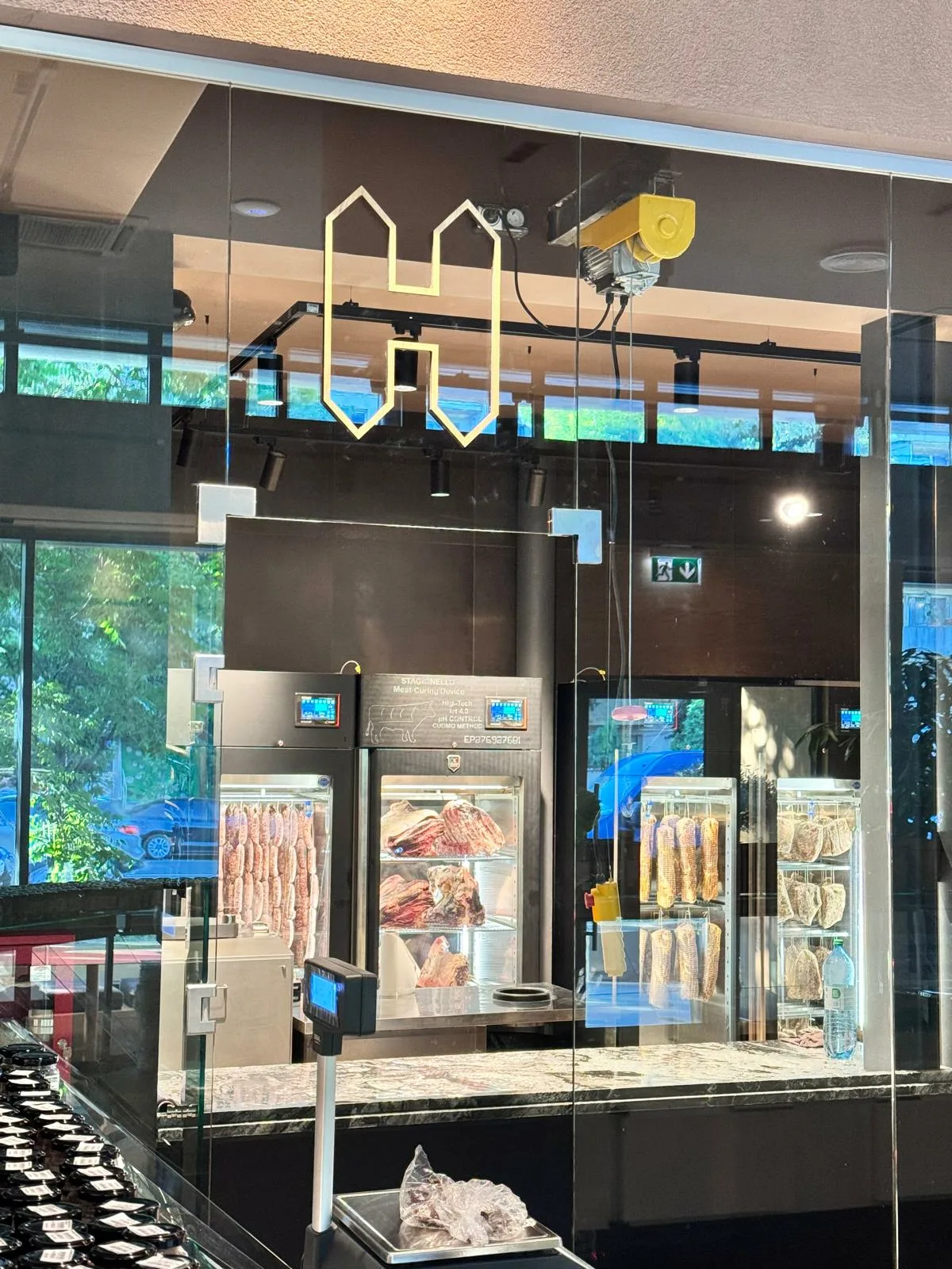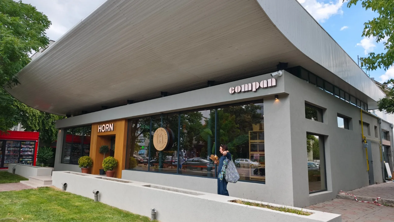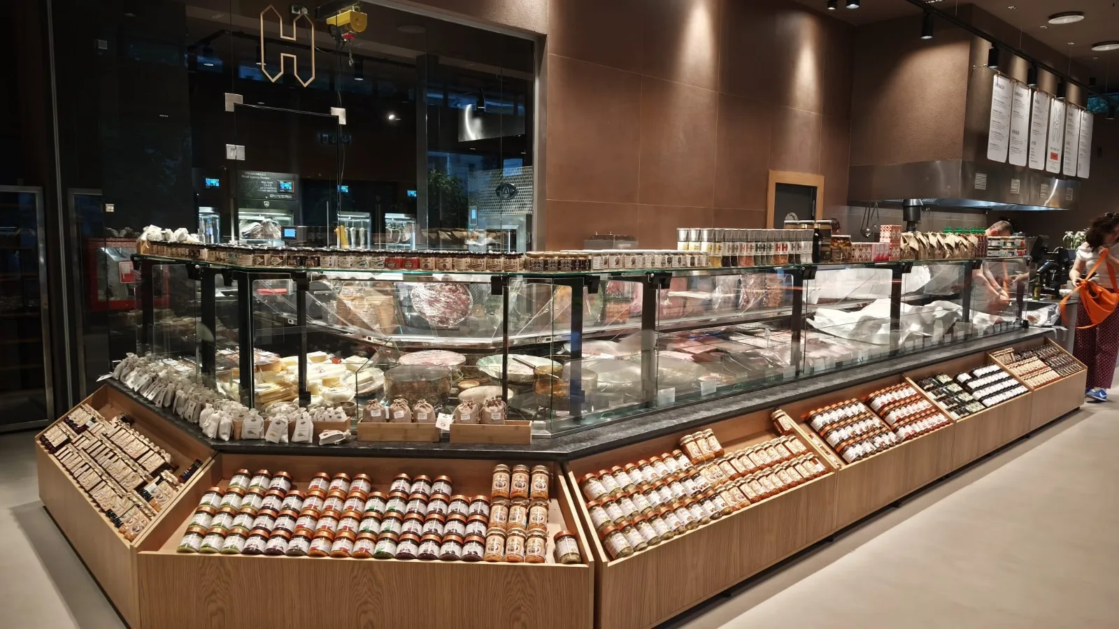 Designul proiectului HORN — Artisan Meat & Delicatessen, realizat de NEO Proiect, este unul minimalist, construit pe o paletă de materiale naturale și finisaje discrete. Pardoseala din microciment asigură continuitate vizuală și un fundal neutru, în timp ce pereții finisați cu tencuieli pe bază de argilă contribuie la un ambient cald și autentic.