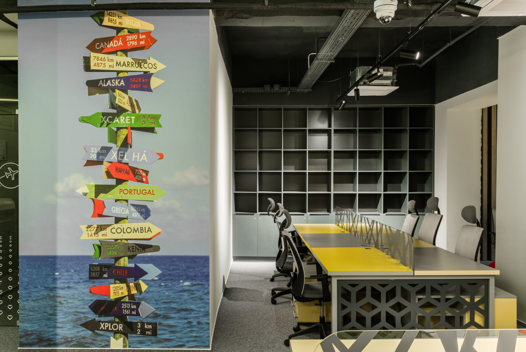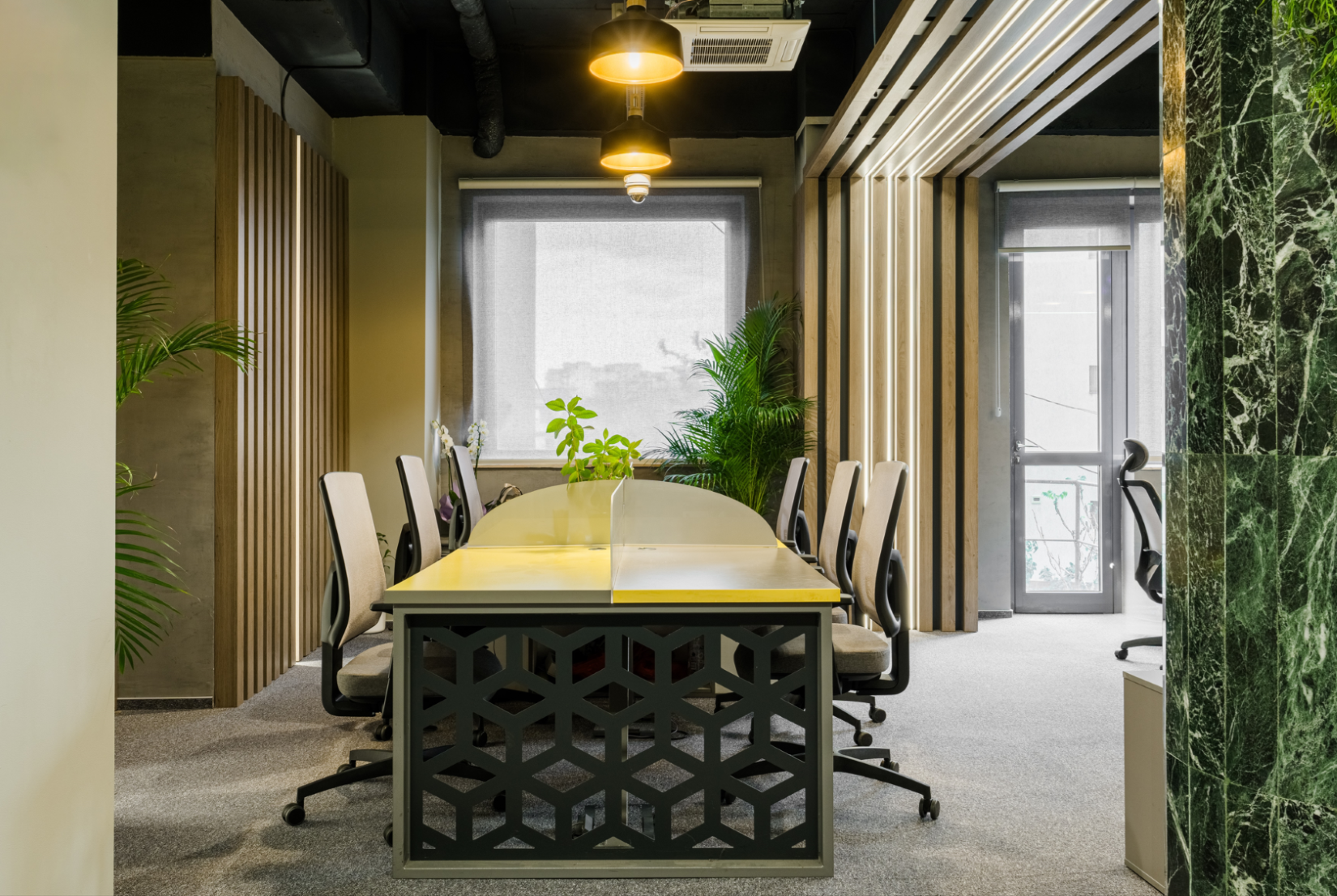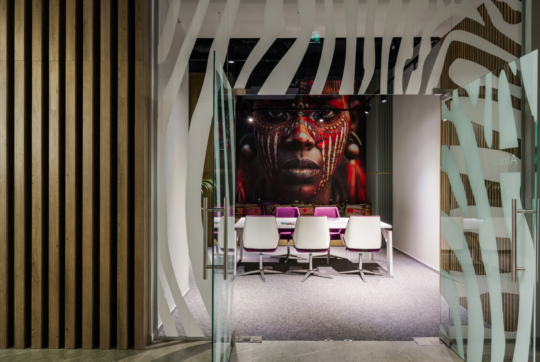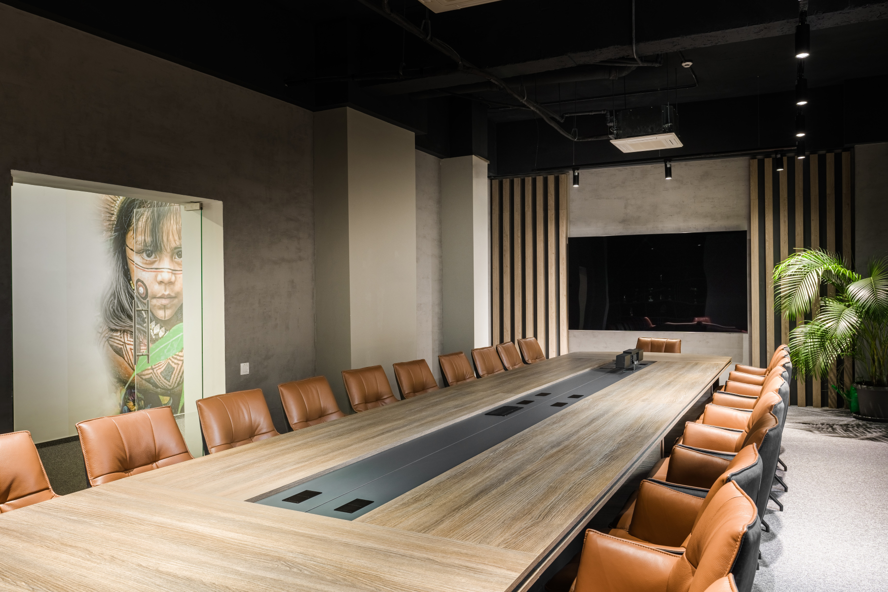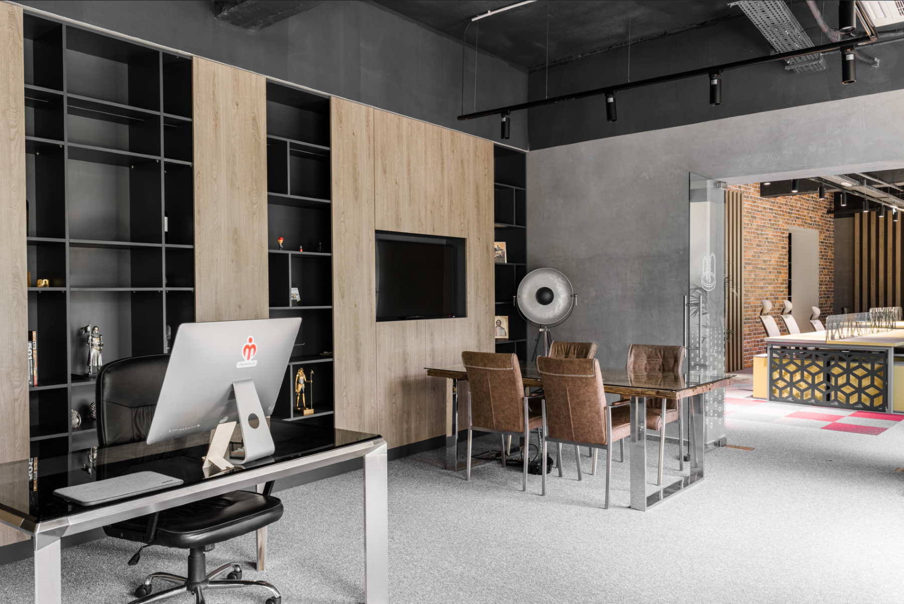 Armonie între design, cultură și funcționalitate. Un spațiu de birouri care redefinește conceptul de amenajare office, îmbinând estetica modernă cu accente culturale și elemente naturale pentru a crea un mediu de lucru dinamic și inspirațional. Designul a fost gândit să ofere atât funcționalitate, cât și o experiență vizuală captivantă. Unul dintre elementele centrale ale amenajării este integrarea vegetației în toate zonele. Panourile cu verdeață suspendată din zonele principale creează o atmosferă relaxantă, contribuind la îmbunătățirea calității aerului și a stării de bine. Lumina joacă, de asemenea, un rol esențial: corpurile de iluminat sferice, cu design contemporan, adaugă un farmec aparte și asigură o iluminare difuză, potrivită atât pentru lucru, cât și pentru socializare. Inserțiile de lumină indirectă, integrate în structuri din lemn și metal, completează această ambianță caldă și primitoare. Un alt aspect definitoriu al acestui spațiu este atenția acordată diversității culturale. Sălile de ședință sunt personalizate cu imagini și motive inspirate din tradiții locale și internaționale, oferind un caracter unic fiecărei zone. Grafica murală vibrantă și motivele decorative tradiționale transformă pereții în opere de artă, creând o experiență vizuală captivantă. Designul interior pune accent pe un mix rafinat de materiale. Lemnul natural, folosit atât pentru pereți cât și pentru mobilier, aduce o notă caldă și primitoare. Pereții din cărămidă aparentă oferă un contrast subtil, adăugând un aer industrial care se îmbină perfect cu texturile naturale. Aceste detalii creează o atmosferă echilibrată, modernă și prietenoasă. Zonele de coworking sunt concepute pentru a încuraja colaborarea și comunicarea. Mobilierul ergonomic, cu mese mari și inserții metalice decorative, oferă atât confort, cât și un aspect modern. Spațiile de relaxare sunt punctate de canapele tapițate în culori vii și accente decorative naturale, creând locuri ideale pentru discuții informale și pauze. Zona de recepție impresionează prin texturi premium precum marmura verde și lemnul, completate de decoruri suspendate cu vegetație. Barul și spațiile de așteptare sunt atât funcționale, cât și estetice, marcând un punct de întâlnire ideal pentru clienți și echipe. Acest spațiu office nu este doar un loc de lucru, ci o experiență în sine. Designul său integrează armonios natura, cultura și funcționalitatea, stimulând creativitatea, colaborarea și starea de bine a celor care îl folosesc. Cu accente personalizate, spații gândite ergonomic și detalii care surprind la fiecare pas, acest birou este o declarație de design modern, sofisticat și sustenabil.