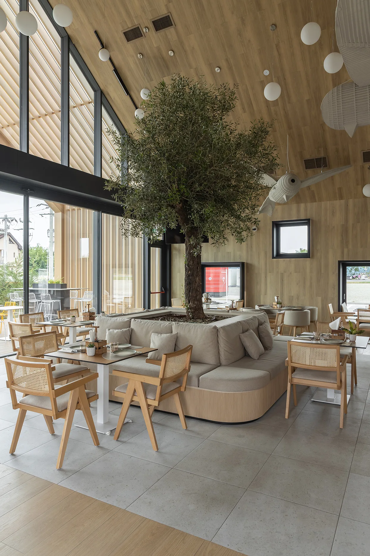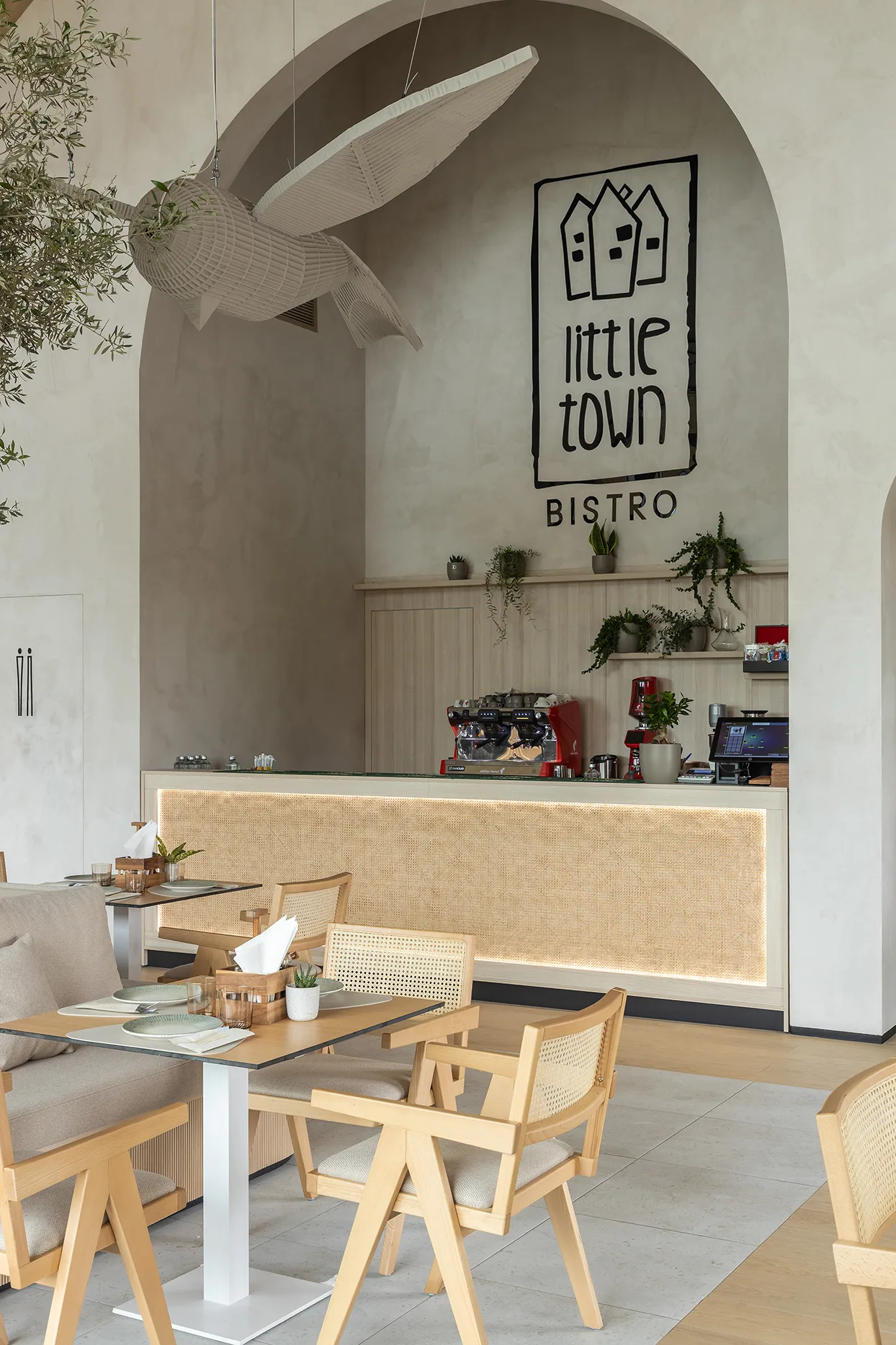 Amenajarea restaurantului Little Town Bistro, realizat de Studio 2.1 completează conceptul printr-un dialog direct cu natura, având ca element central un măslin matur, simbol al longevității. Prin integrarea locului de joacă, restaurantului și a funcțiunilor complementare, Little Town funcționează ca un hub comunitar, unde jocul devine un instrument de dezvoltare personală și socială.
