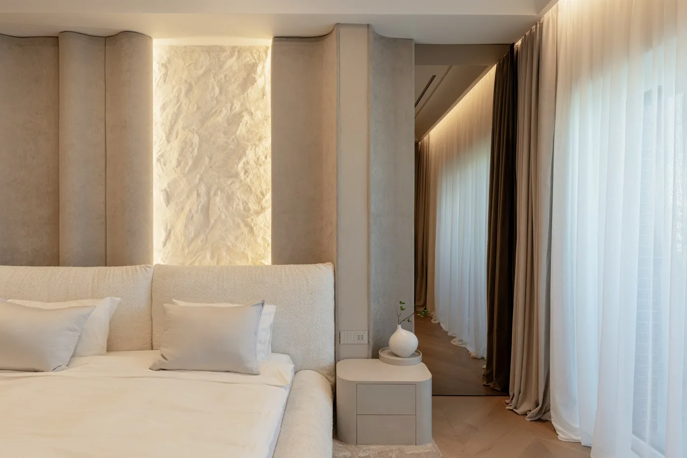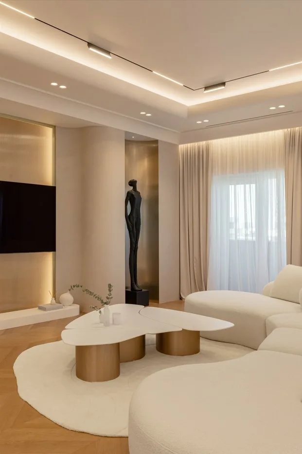 Proiectul Living in Neutrals realizat de Rohadesign explorează o abordare contemporană a minimalismului, filtrată printr-o estetică caldă și senzorială. Spațiul este definit de volume fluide, muchii rotunjite și o paletă cromatică neutră, în care nuanțele de bej, crem și lemn deschis creează o atmosferă liniștită și echilibrată.