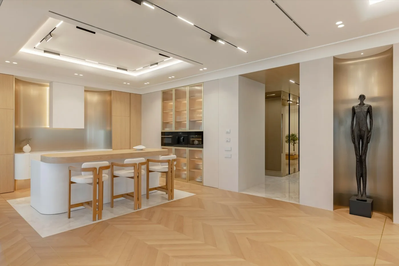 Întregul apartament este gândit ca un refugiu urban contemporan, în care designul susține confortul cotidian, iar fiecare element este integrat coerent într-o compoziție calmă, elegantă și atemporală.