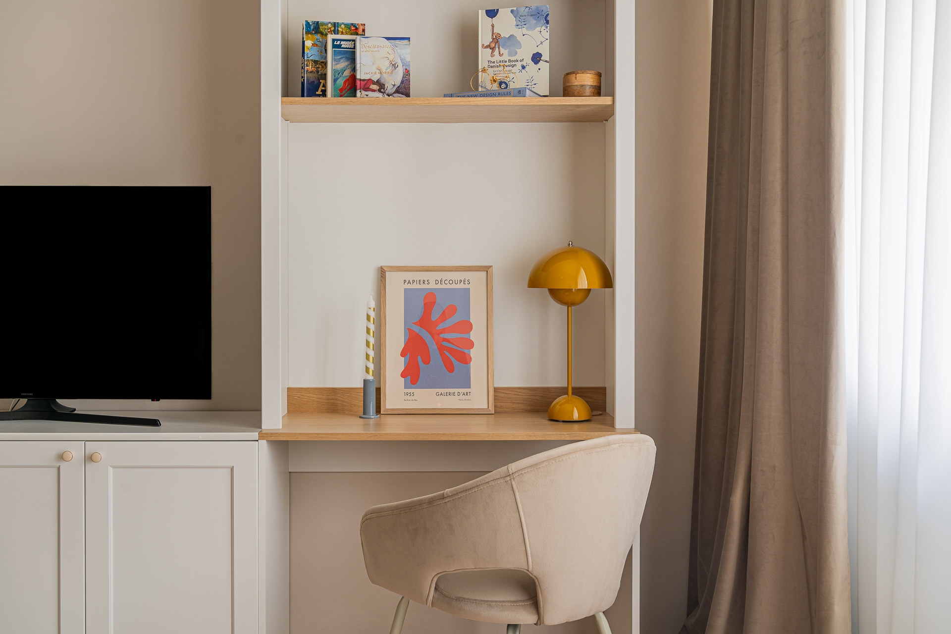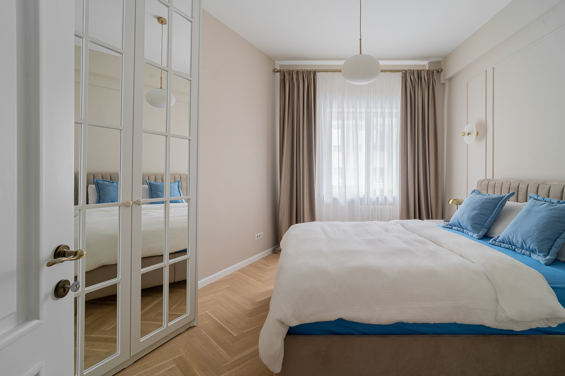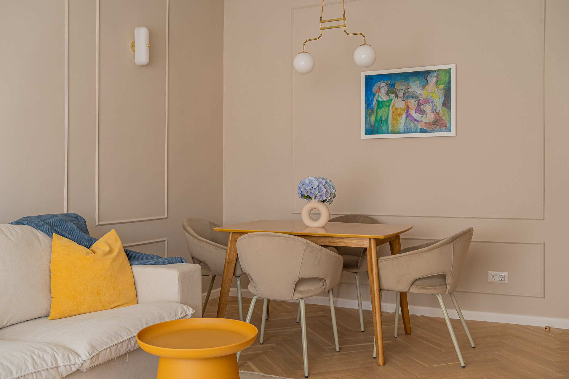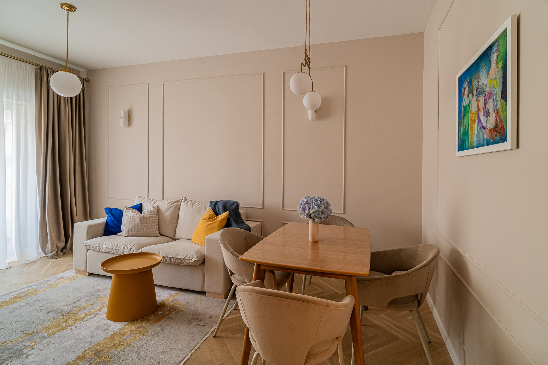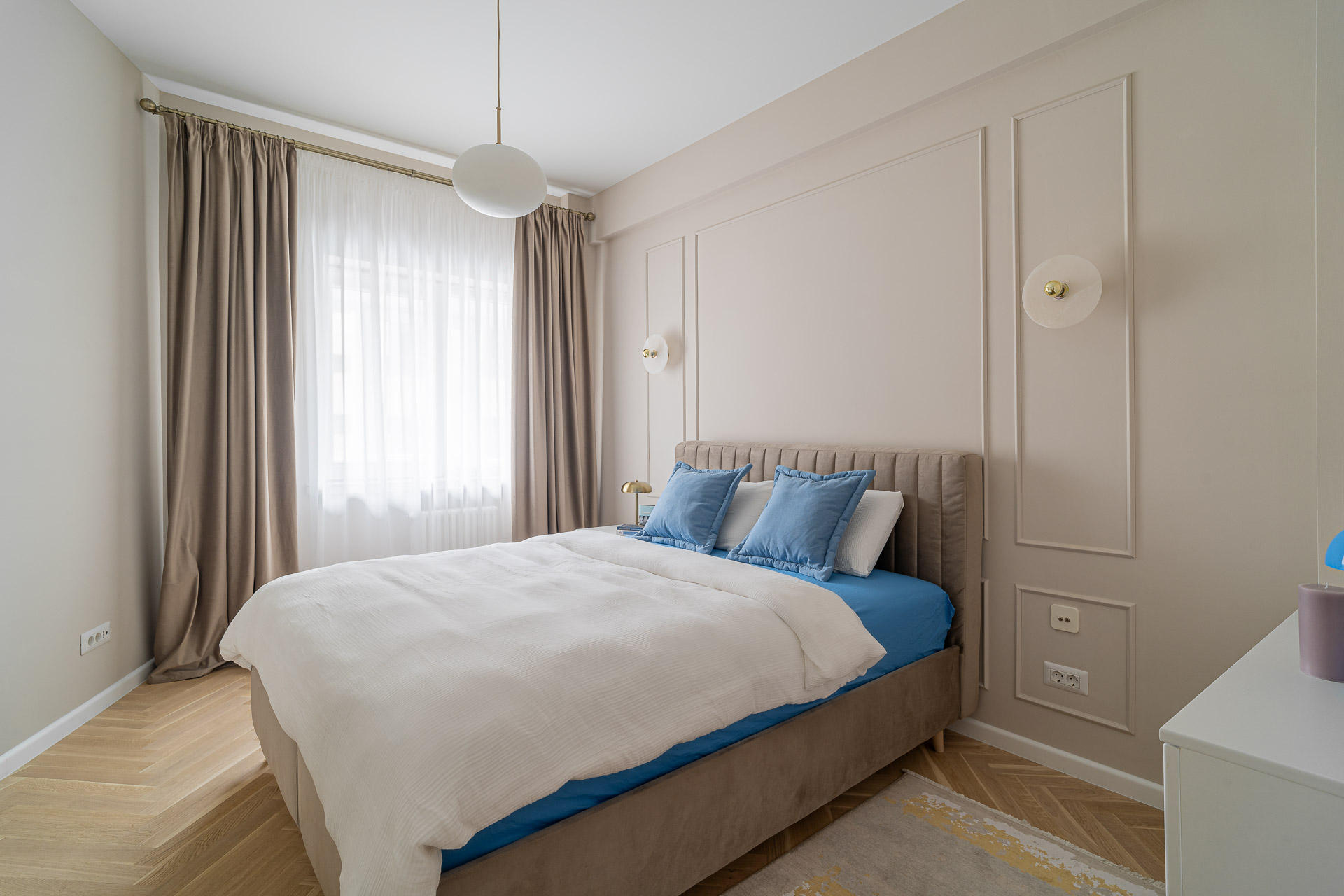 Micul Mic Paris a fost amenajat, conform conceptului, într-un stil franțuzesc adus în contemporan, cu accente Art Deco, cum ar fi corpurile de iluminat vintage, profilele, accesoriile&mânerele și anumite piese de mobilier, iar paleta cromatică include nuanțe neutre, suave, de grej pudrat, cald, alb porțelanat, un lemn cald, antichizat, accente de albastru-gri, auriu și alămiu.