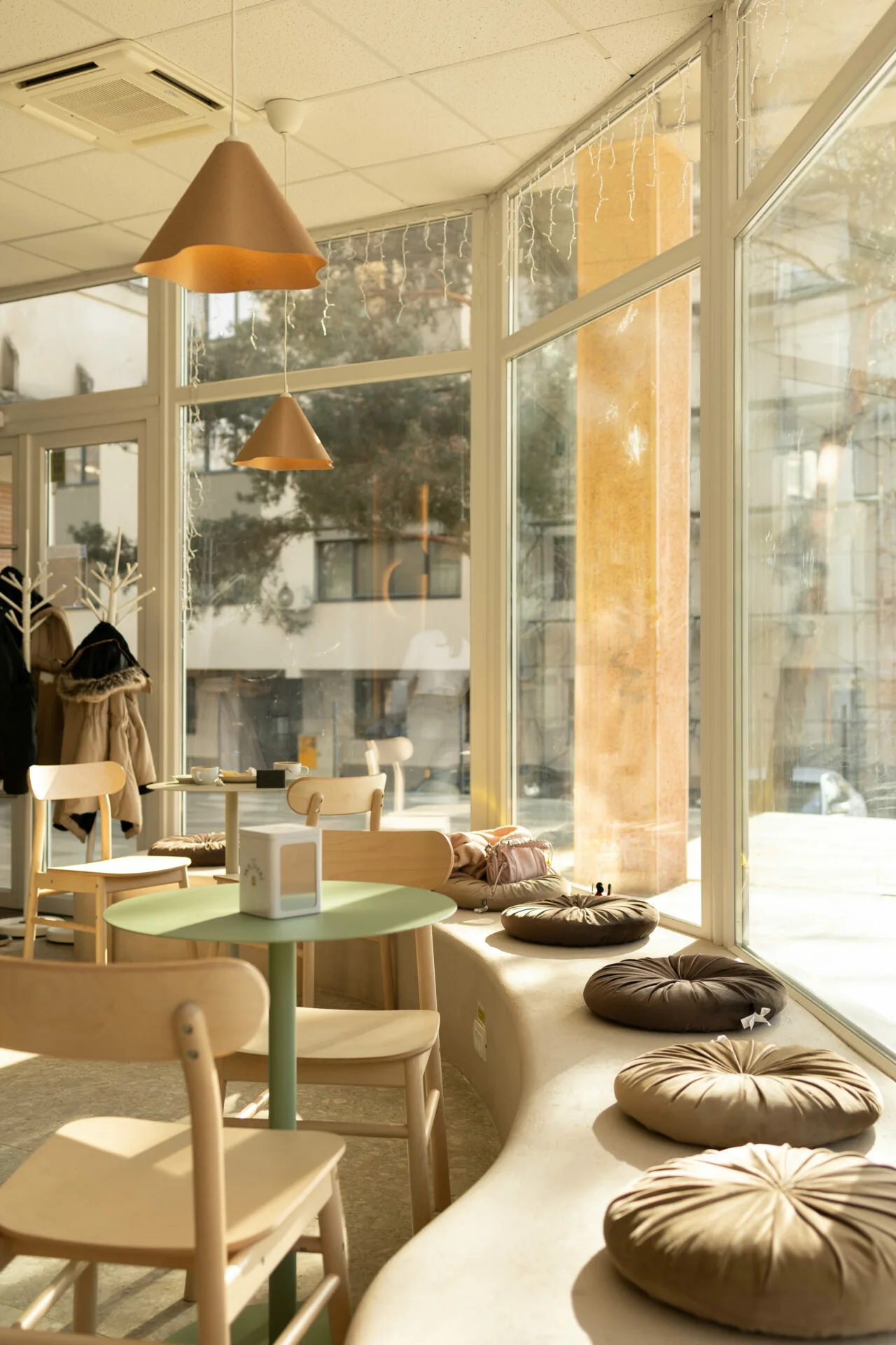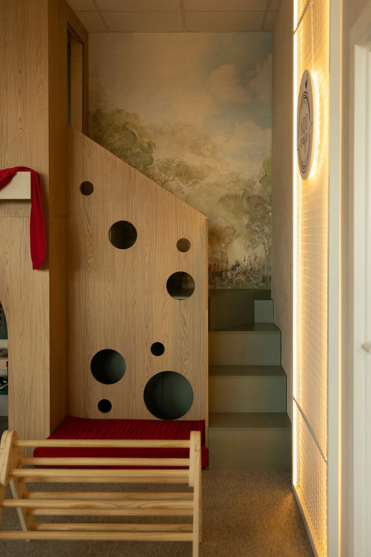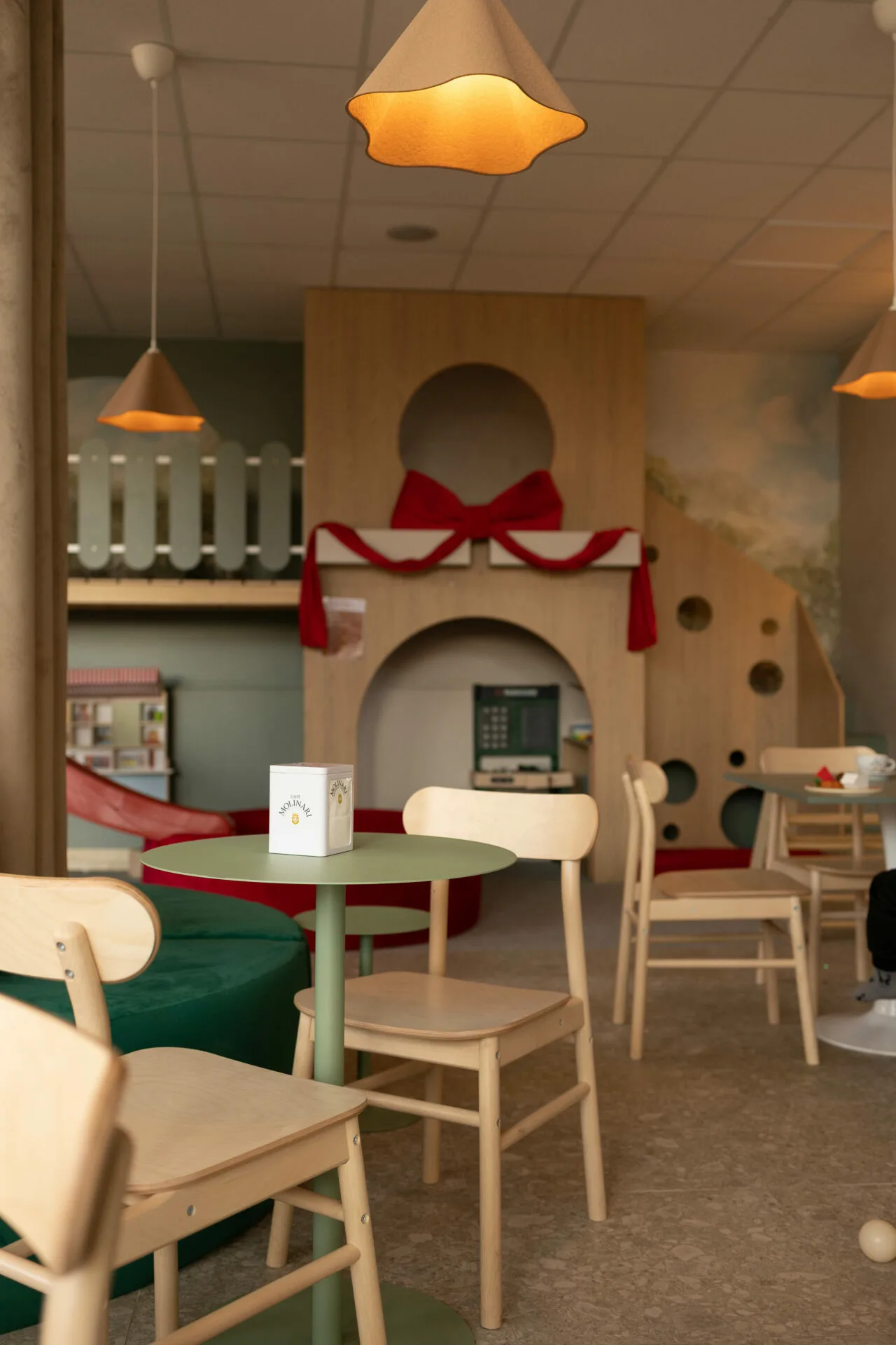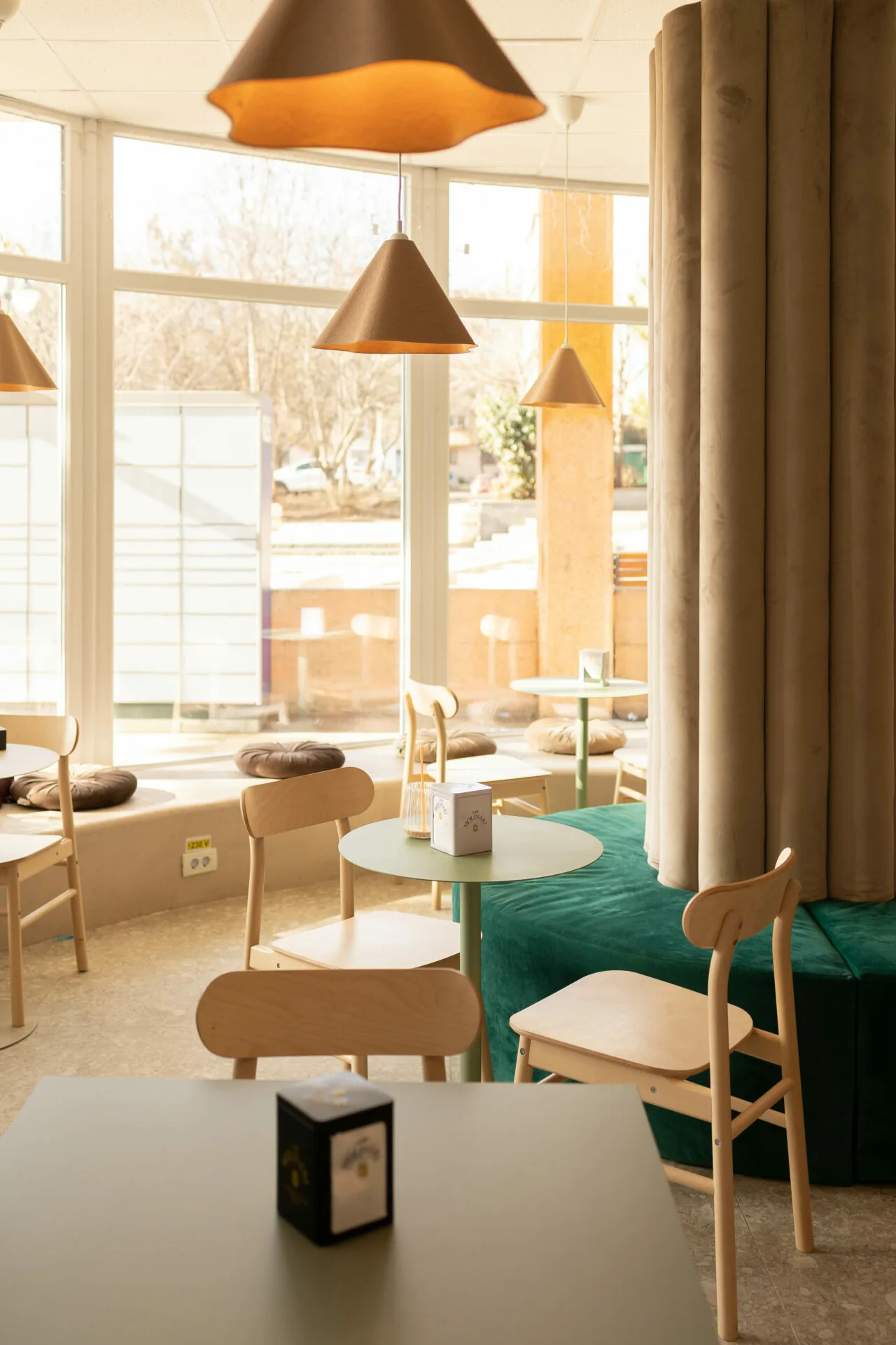 Proiectul NIDO cafe realizat de LOOM ce a luat viață într-un timp record, cu un buget redus, într-un spațiu care a avut nevoie de o renovare și o recompartimentare completă. Conceptul a fost gândit în așa fel încât părinții să aibă vizibilitate asupra spațiului de joacă din orice punct al cafenelei. Am profitat astfel de geometria curbată a peretelui exterior și ne-am folosit de elementul structural central pentru a crea zonele de servire pentru vizitatori.