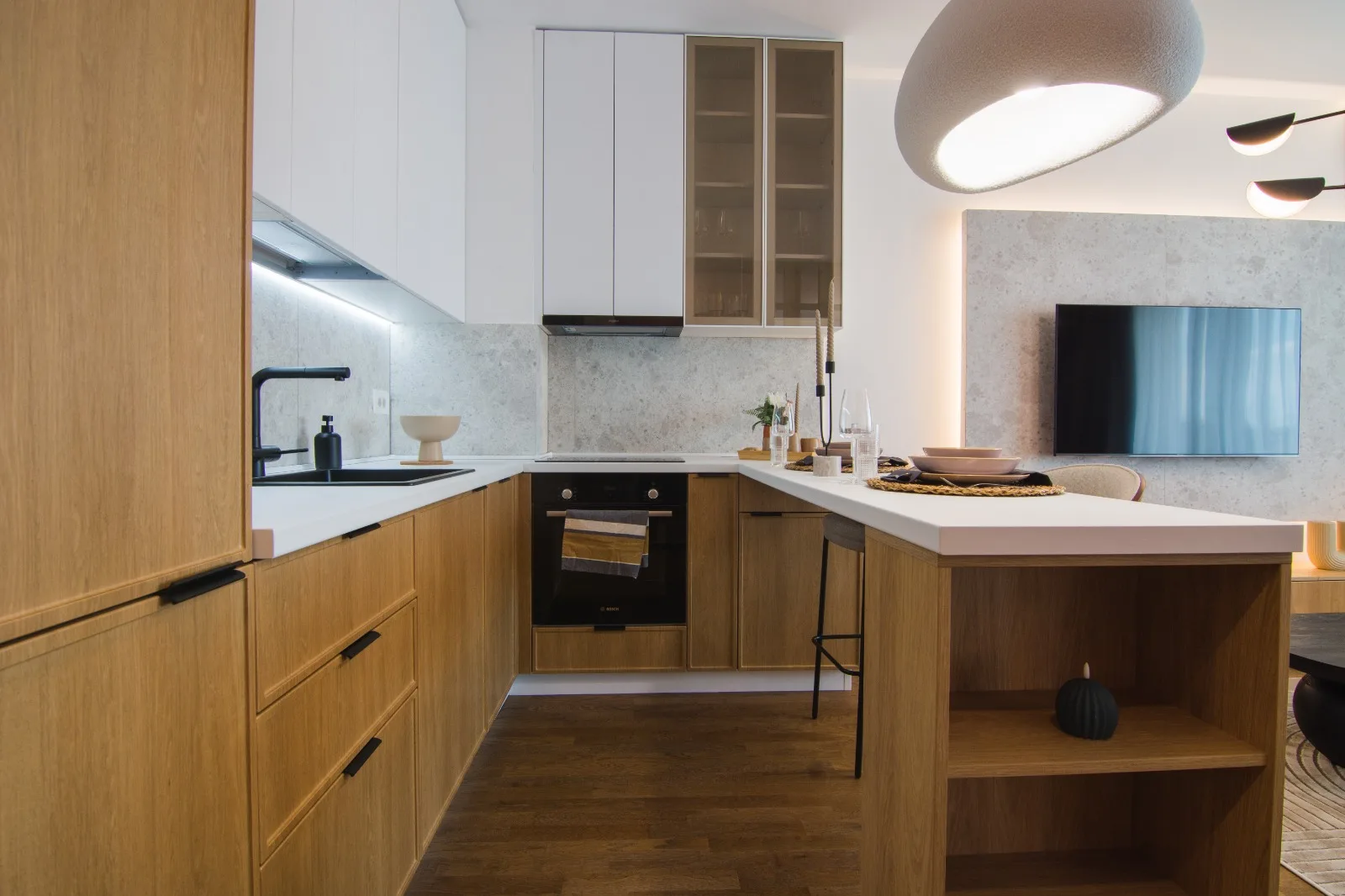 Abordarea de design s-a concentrat pe coerența globală a spațiului, punând în valoare proporțiile, relațiile dintre zone și modul în care materialele interacționează cu lumina naturală. Rezultatul conceput de Olive design este un interior care trăiește în armonie cu nevoile locuirii moderne, dar cu o identitate proprie, caldă și autentică.