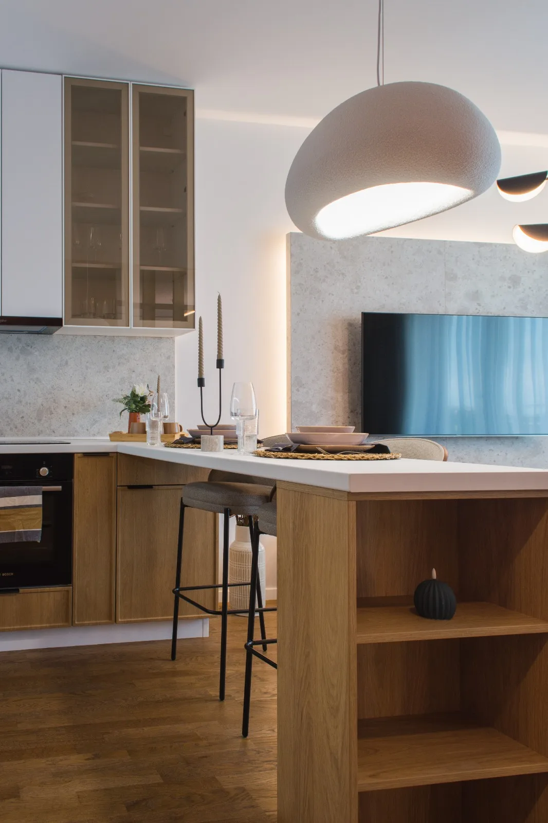 Prin linii curate și materiale naturale, spațiile au fost configurate astfel încât fiecare detaliu să poarte o poveste și să invite la trăire, nu doar la privit. Am urmărit să creez o atmosferă caldă și integrată, folosind nuanțe și texturi care se completează, fără a suprasolicita vizual. Detaliile imperfecte sunt “semnătura” acestui proiect — ele aduc caracter și naturalețe, într-un echilibru subtil între funcționalitate și expresie vizuală.