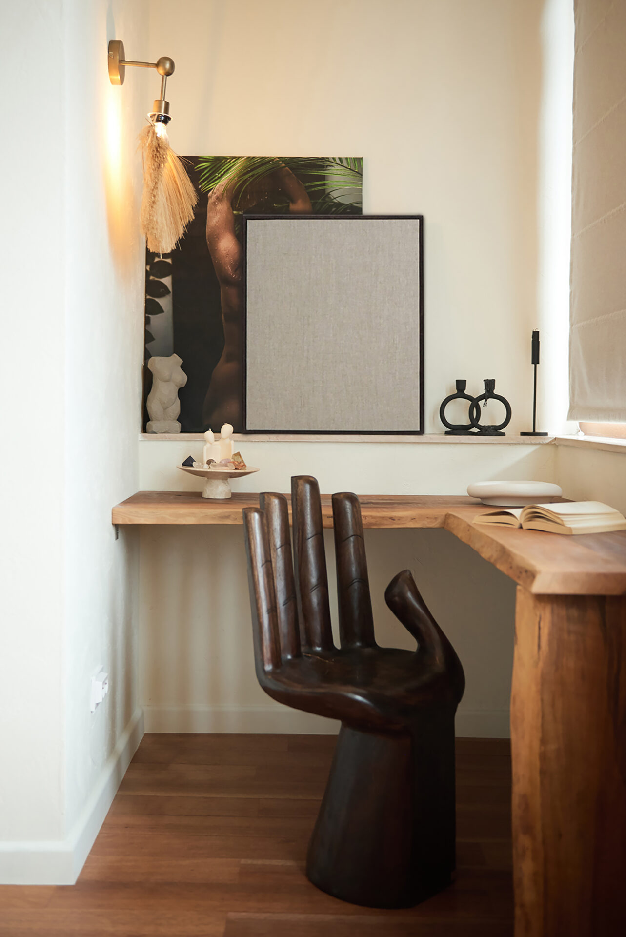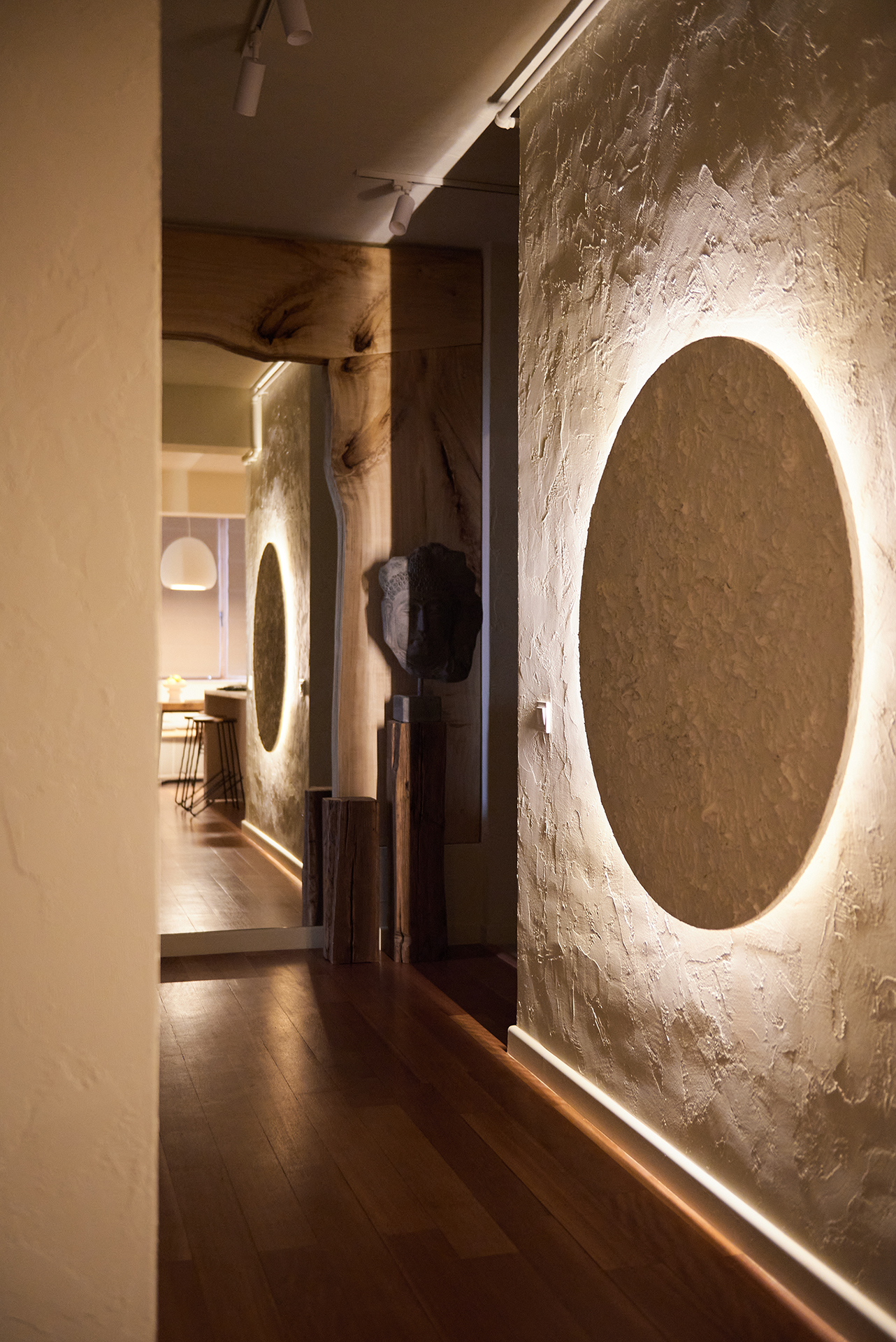 Inspirată de peisajele luxuriante, echipa a creat un spațiu care îmbină elemente naturale cu confortul modern. Conceptul este unul organic, folosind tonuri liniștitoare de bej ce evoca nisipul fin. Materialele precum lemnul recuperat sunt în centrul atenției, fiecare piesă spunând o poveste și conferind autenticitate. Texturile brute folosite in amenajarea apartamentului adaugă profunzime și varietate tactilă, iar blaturile din marmură, fronturile cu finisaje din lemn și arta murală amplifică legătura cu natura. Baia iese în evidență cu o eleganță întunecată, oferind un sanctuar de relaxare și un contrast complementar. OASIS integrează funcționalitatea fără compromisuri, spațiile de depozitare integrate menținând un mediu lipsit de dezordine, păstrând o estetică curată și oferind o experiență completă. OASIS captează esența unui refugiu care invită la conectarea și reflecția zilnică asupra frumuseții naturii.