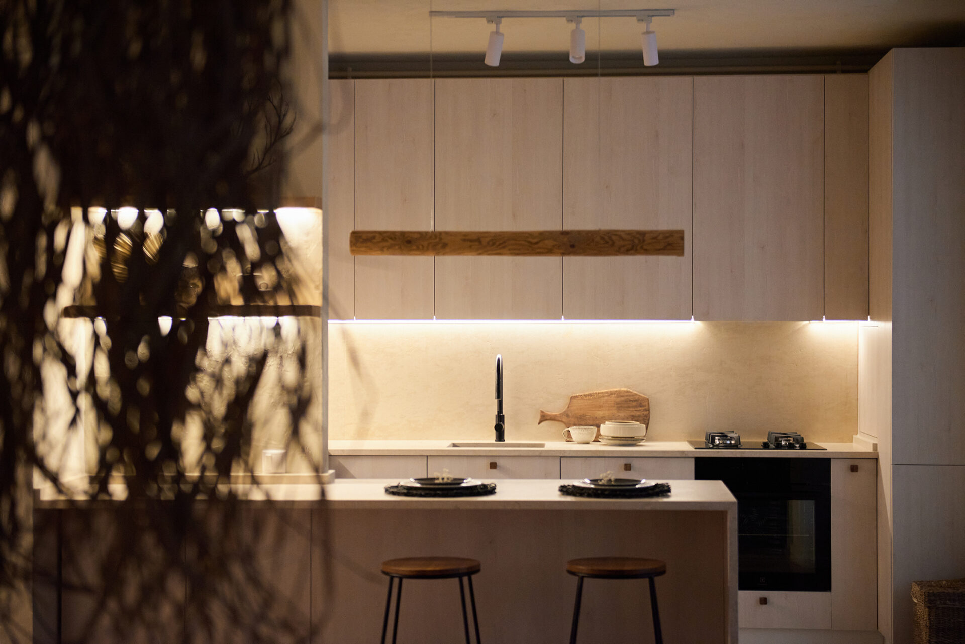 OASIS este inspirat de ideea unei vacanțe permanente pe plajă, îmbinând perfect natura și confortul modern. Funcționalitatea spațiului fuzionează cu estetica prin intermediul depozitărilor ascunse, asigurând o experiență fără dezordine. Conceptul combină esența naturii cu designul contemporan.