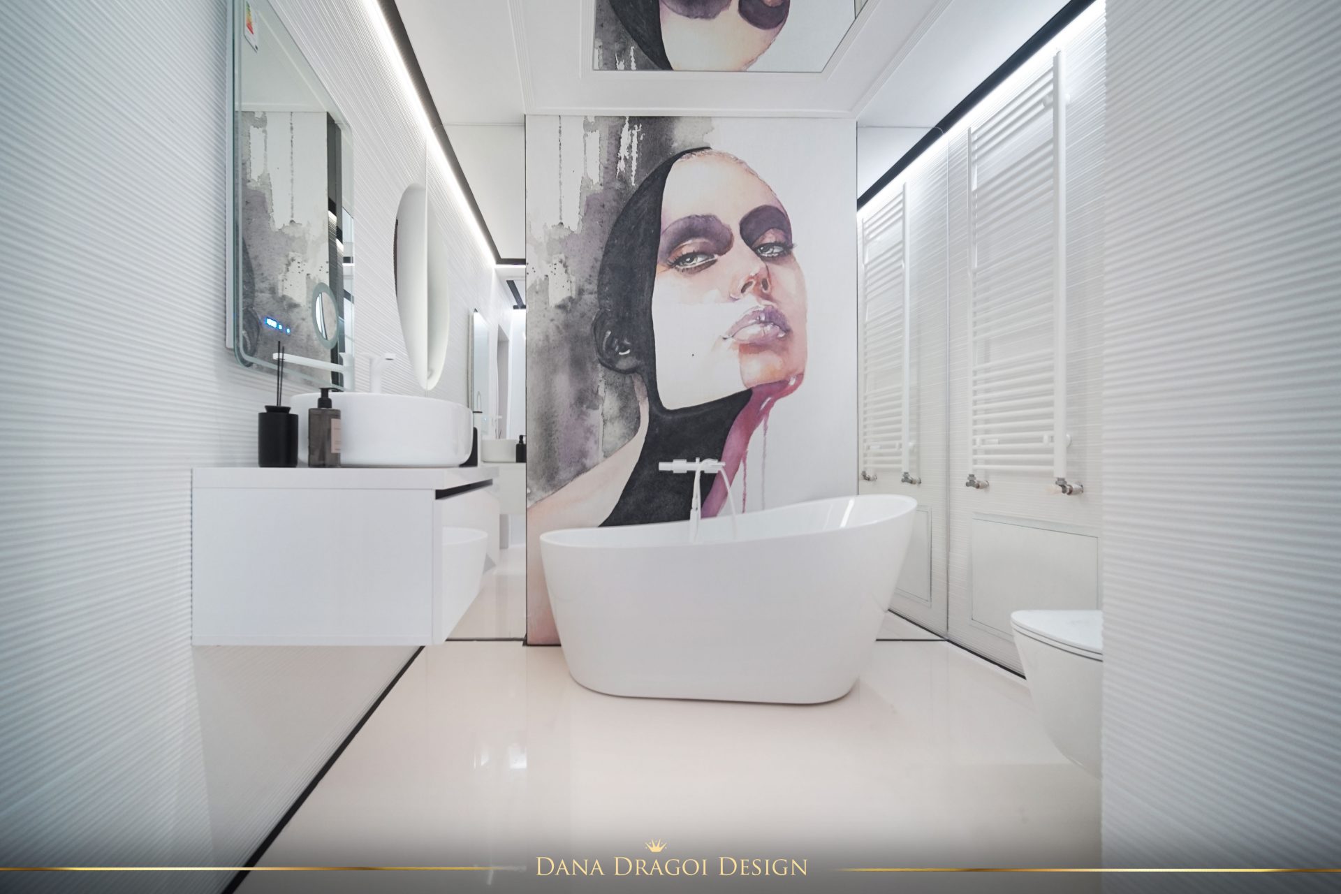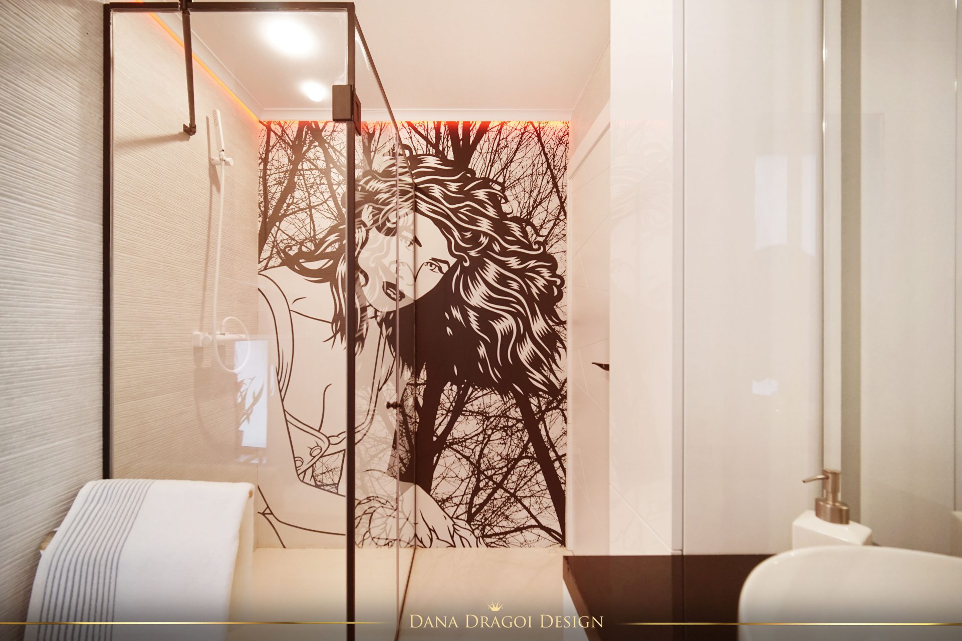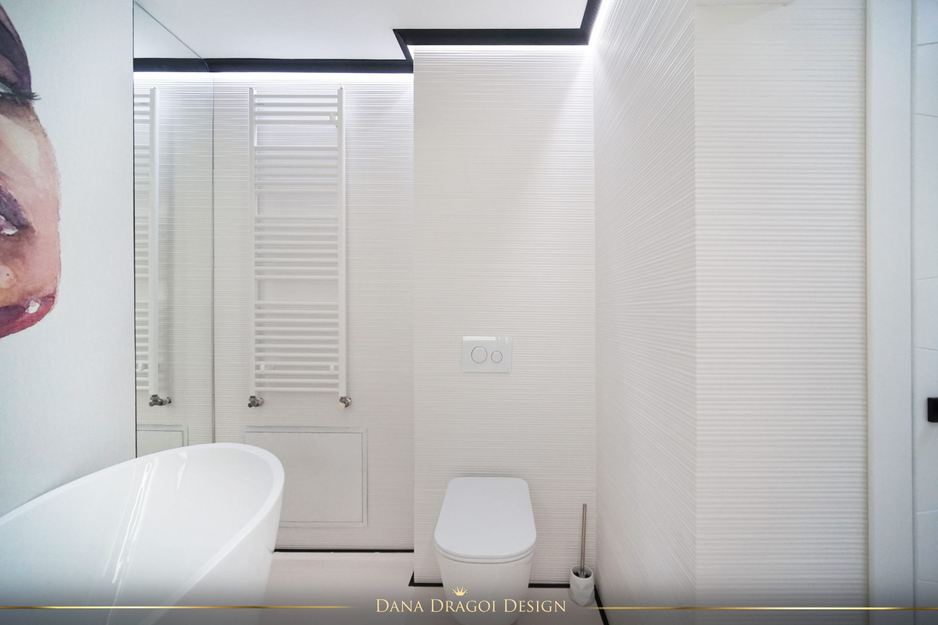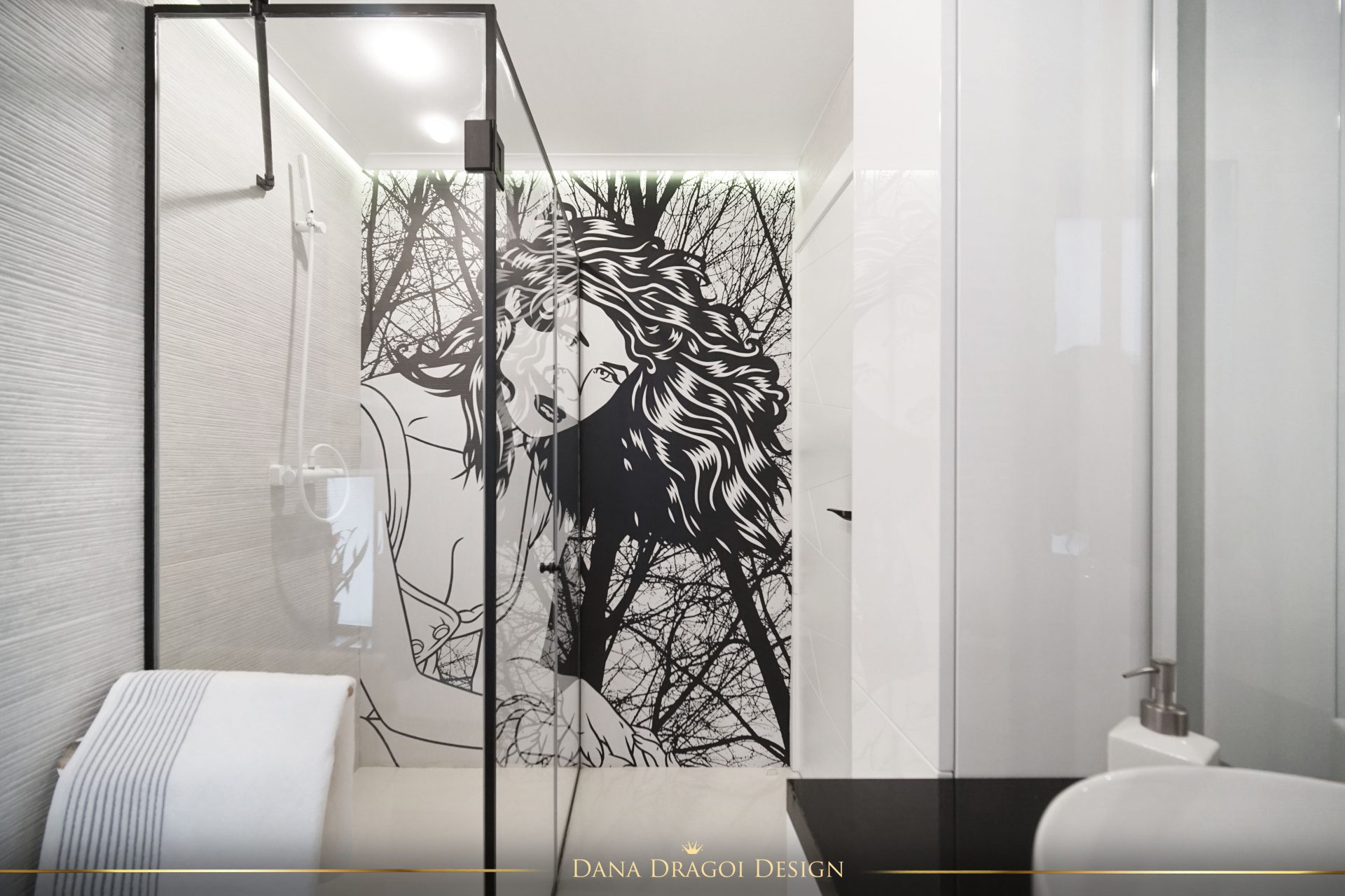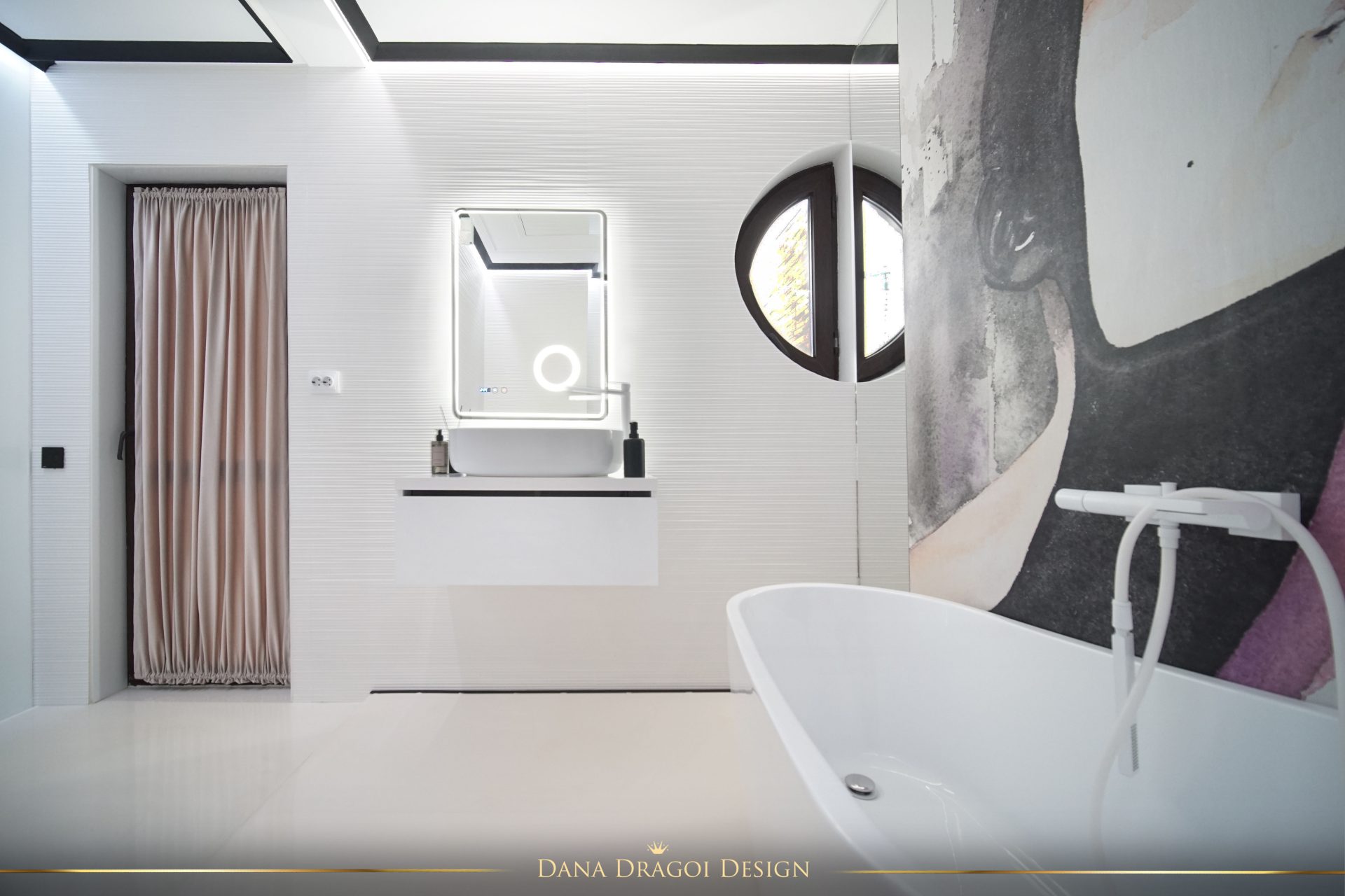 Fiind o casă de dimensiuni reduse și pe lungimi, și pe înălțimi, am transmis lumina naturală în profunzime, folosind alburi și oglinzi. Interioarele par mai mari și mai primitoare. Accentele de negru și auriu aduc masculinitate și prețiozitate într-un joc al contrastelor regăsit în fiecare cameră.
