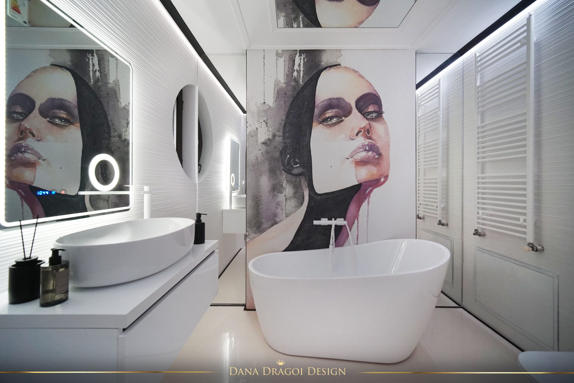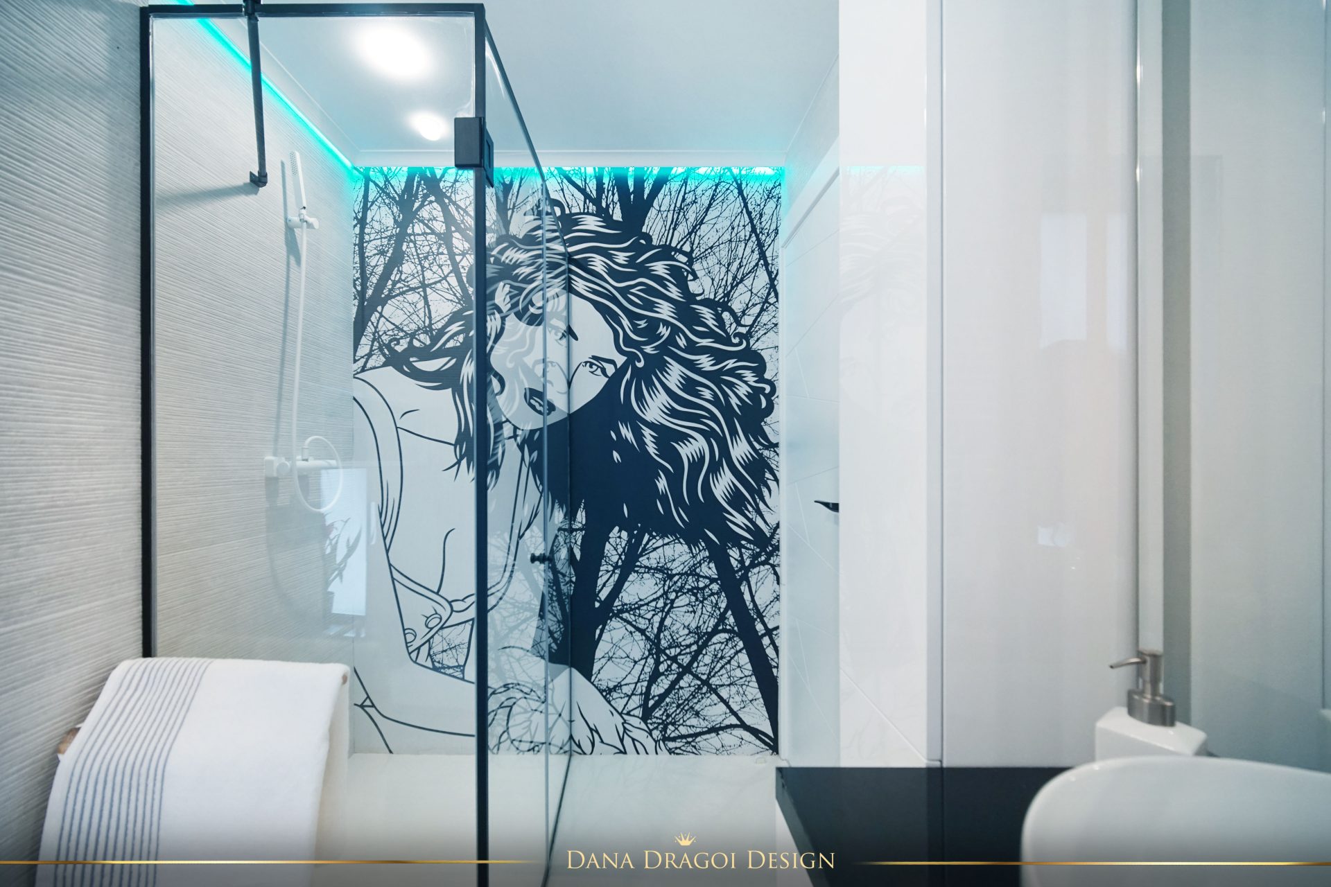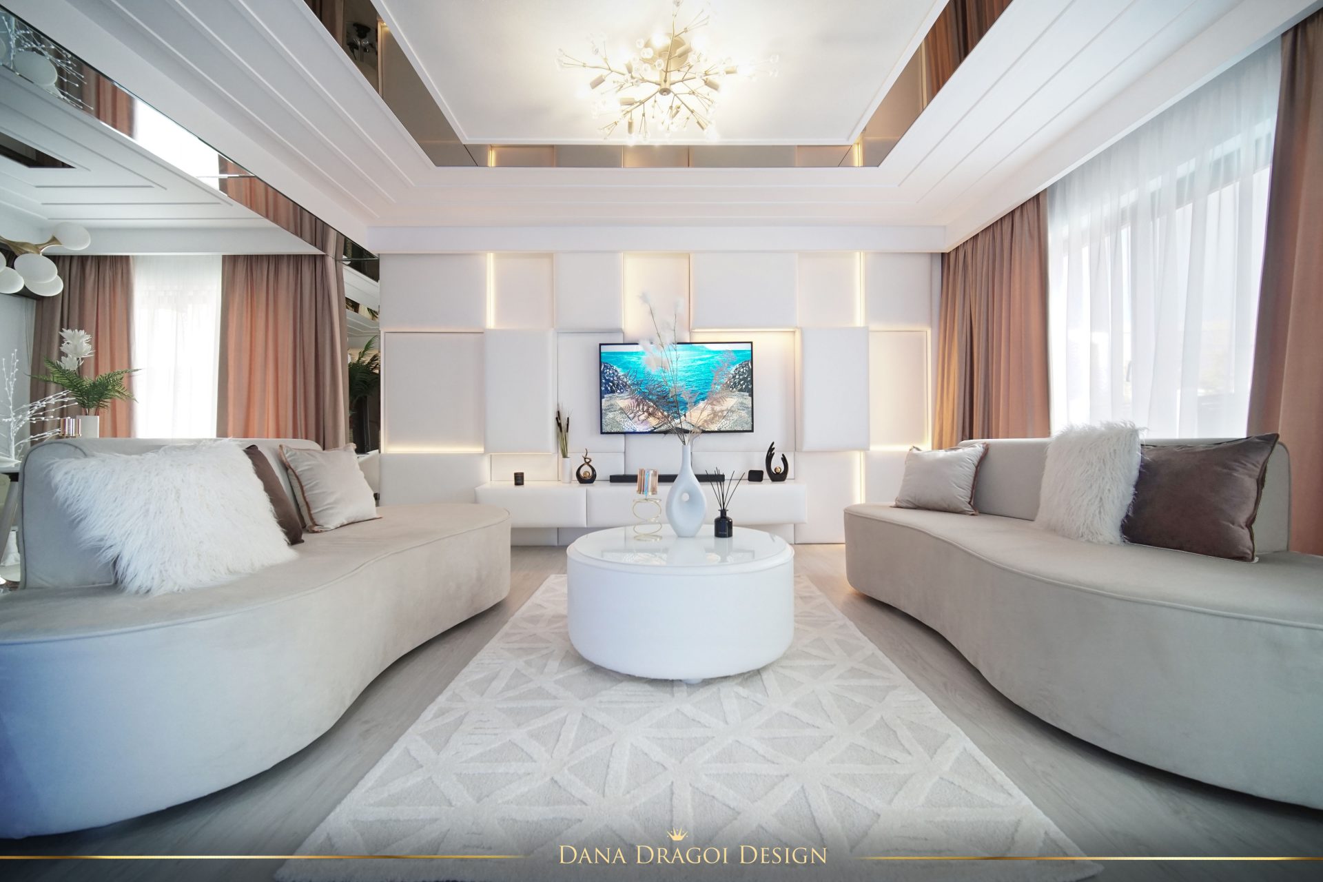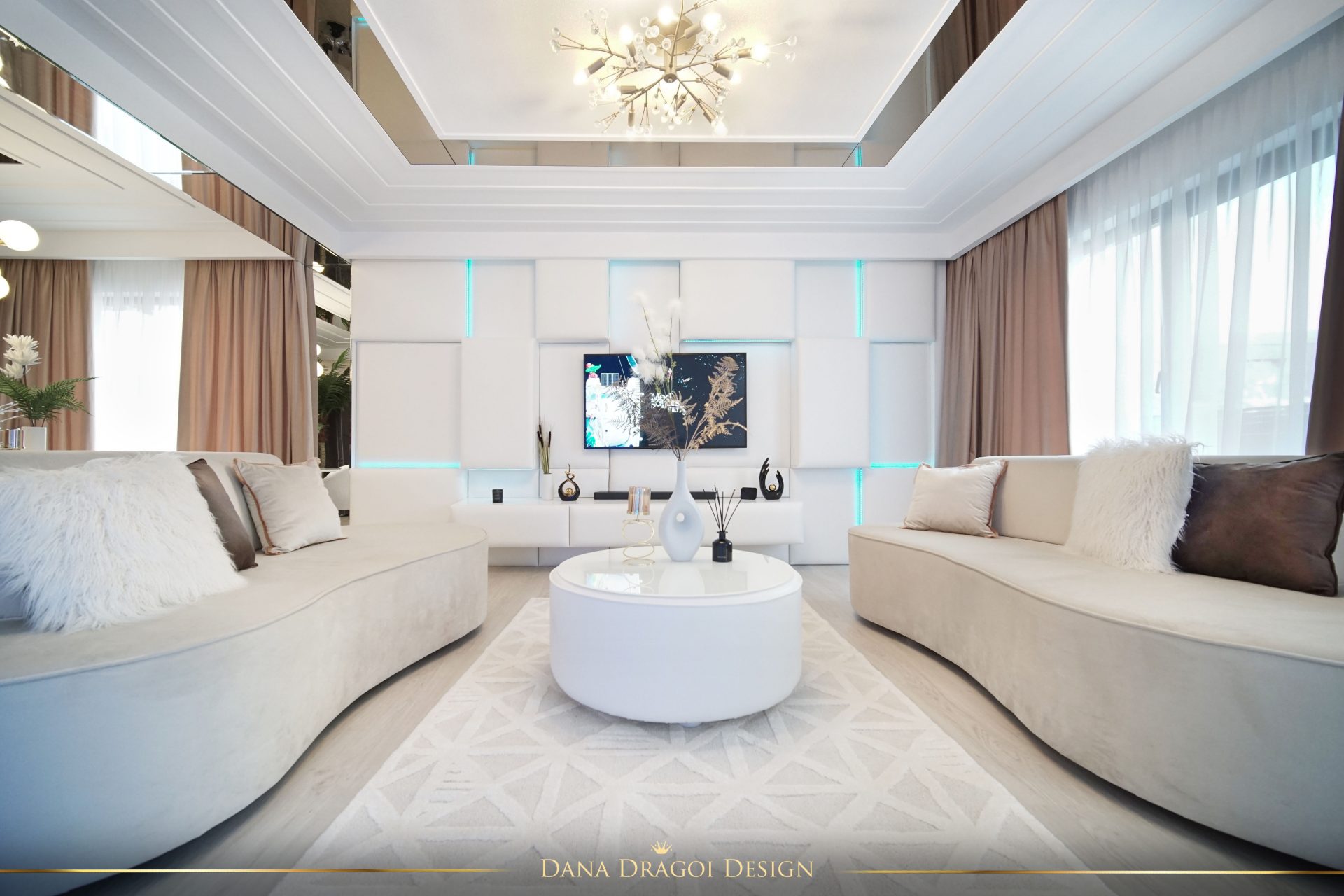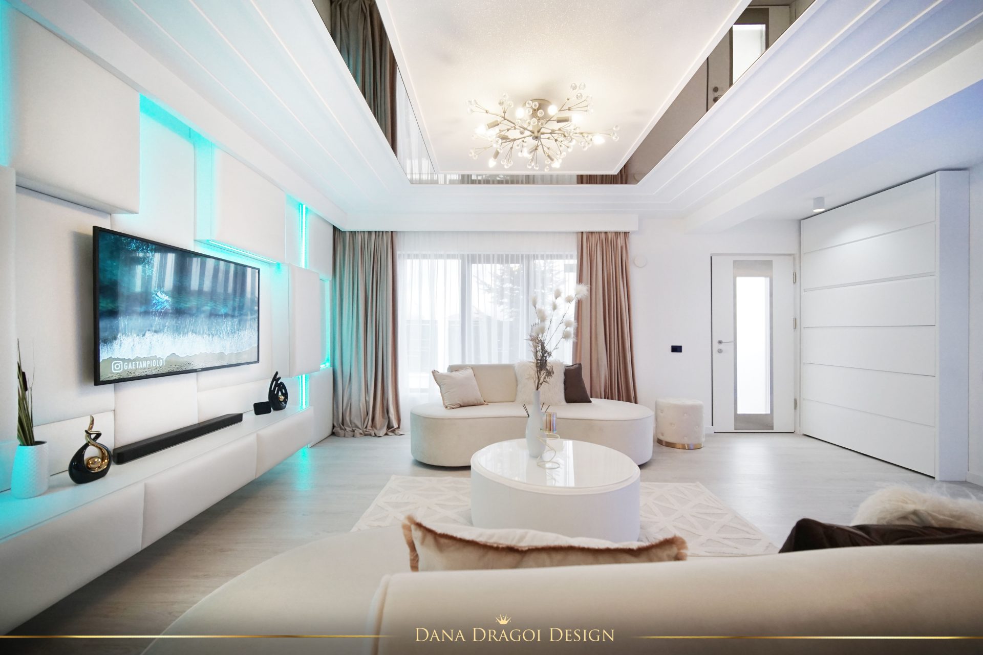 Fiind o casă de dimensiuni reduse și pe lungimi, și pe înălțimi, am transmis lumina naturală în profunzime, folosind alburi și oglinzi. Interioarele par mai mari și mai primitoare. Accentele de negru și auriu aduc masculinitate și prețiozitate într-un joc al contrastelor regăsit în fiecare cameră.