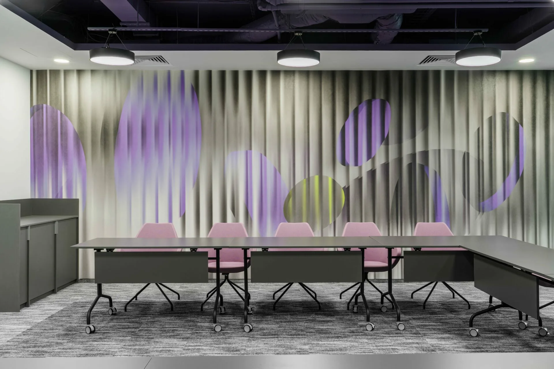 Amenajarea proiectului Purple Matter pornește de la un cadru operațional complex, având ca obiectiv realizarea unui sediu comun pentru două entități distincte, cu nevoi complementare și cerințe clar delimitate. Principala provocare a constat în gestionarea acestei dualități funcționale fără a compromite coerența spațială și expresia unitară a designului.
