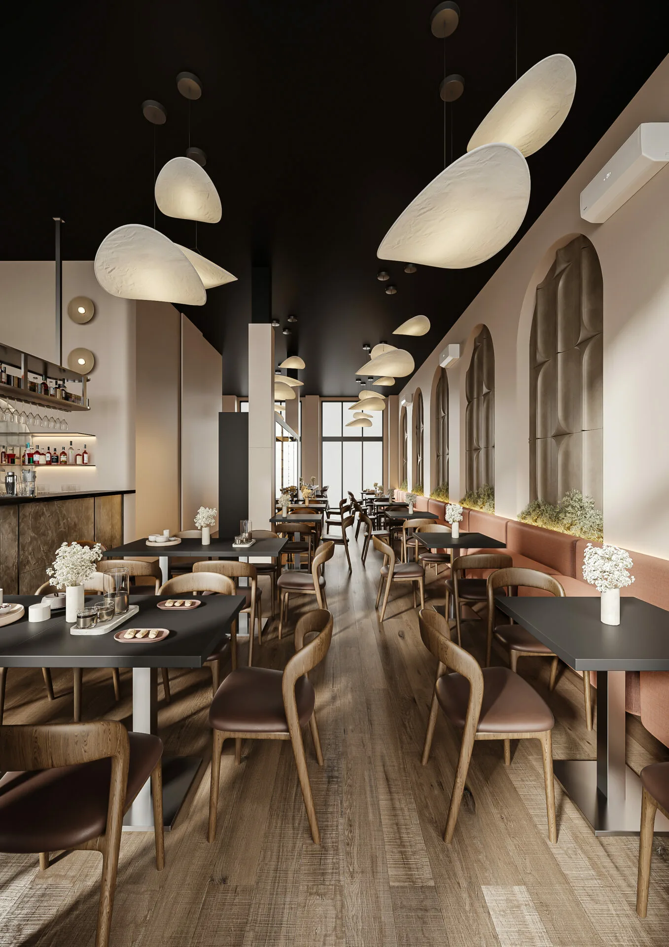 Acest restaurant din Geneva, Restaurant Chez Sami, cu o suprafață de 165 m², este un proiect complet realizat de echipa noastră — de la idee și concept până la implementarea finală. Spațiul a fost gândit ca un loc cu personalitate, unde designul interior completează experiența culinară.