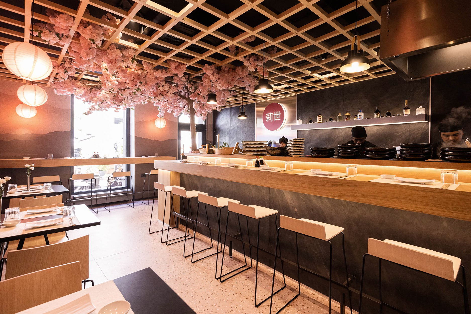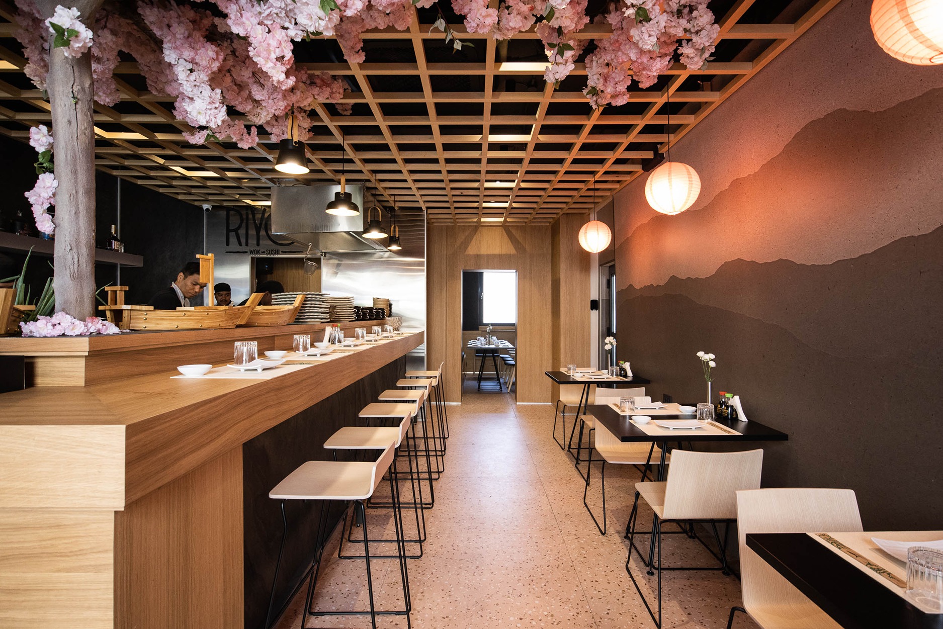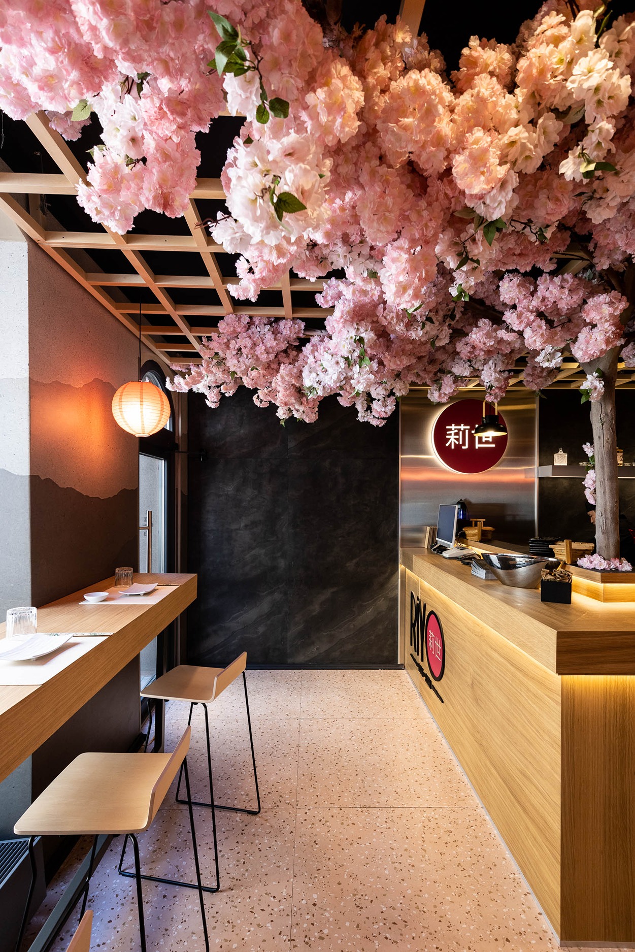 Beneficiarii dispuneau de un spațiu mic, însă cu o poziționare bună, în care doreau să deschidă o afacere profitabilă. Conceptul se dezvoltă în jurul cireșului japonez și a mai multor elemente care ne duc cu gândul la cultura japoneză. Tâmplăria tradițională de mare precizie și materialele de calitate sunt prezente în amenajare, prin ardezia lipită pe perete, prin tavanul și mobilierul din stejar lăsat într-o nuanță cât mai naturală, dar și prin tapetul care ne duce cu gândul la un peisaj minimalist japonez.