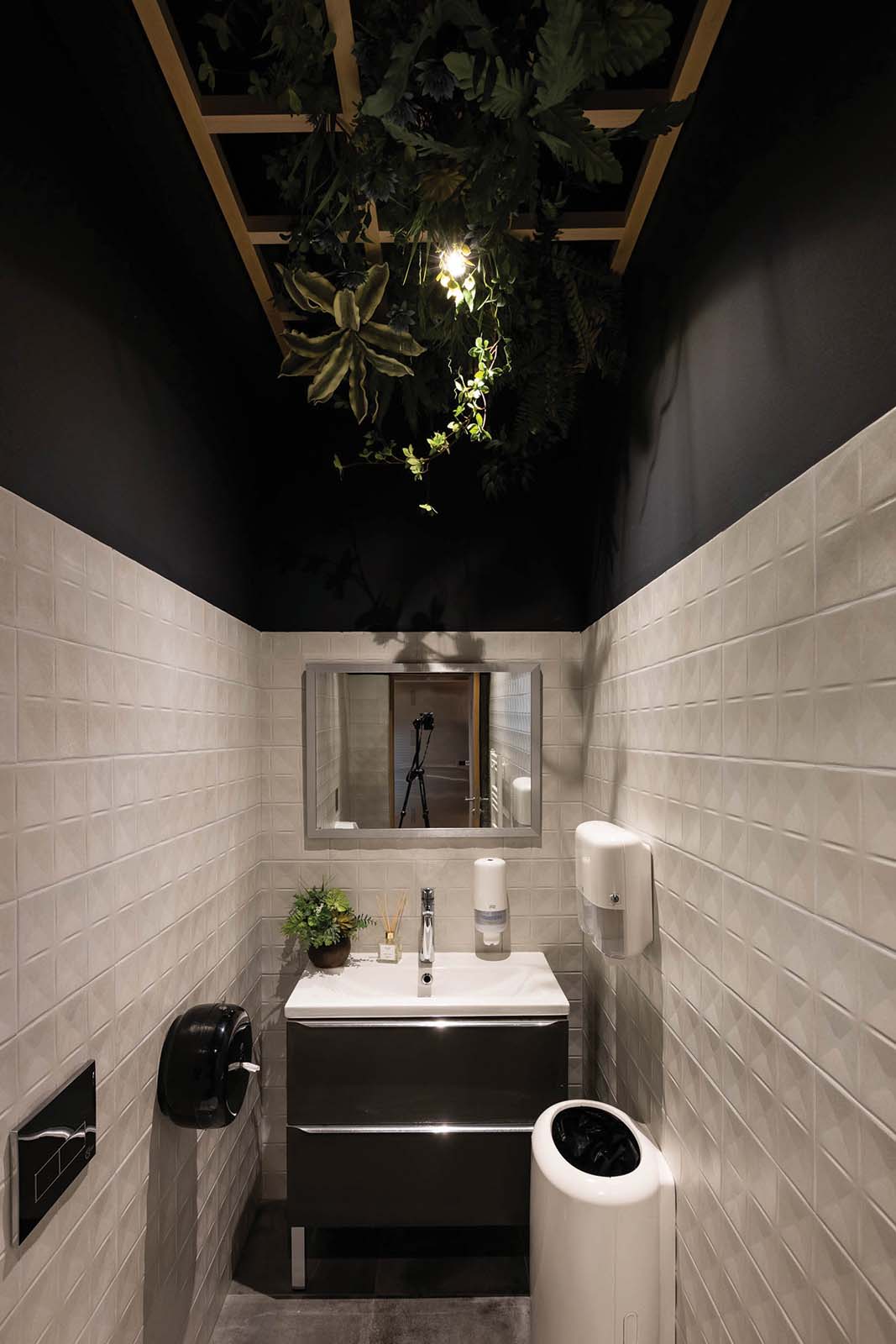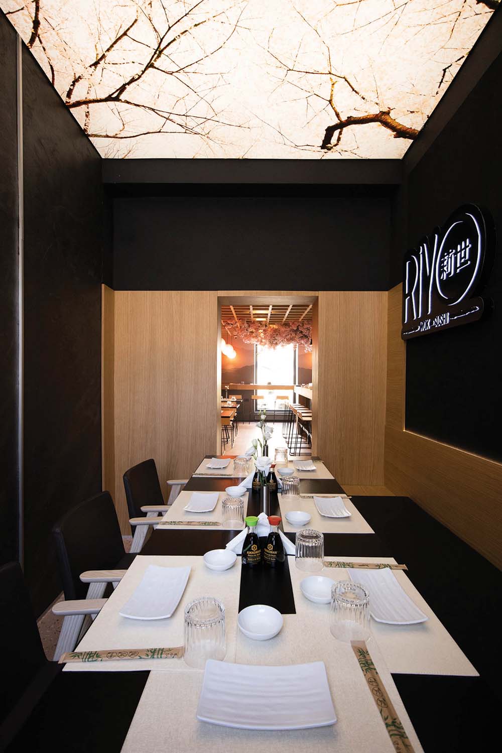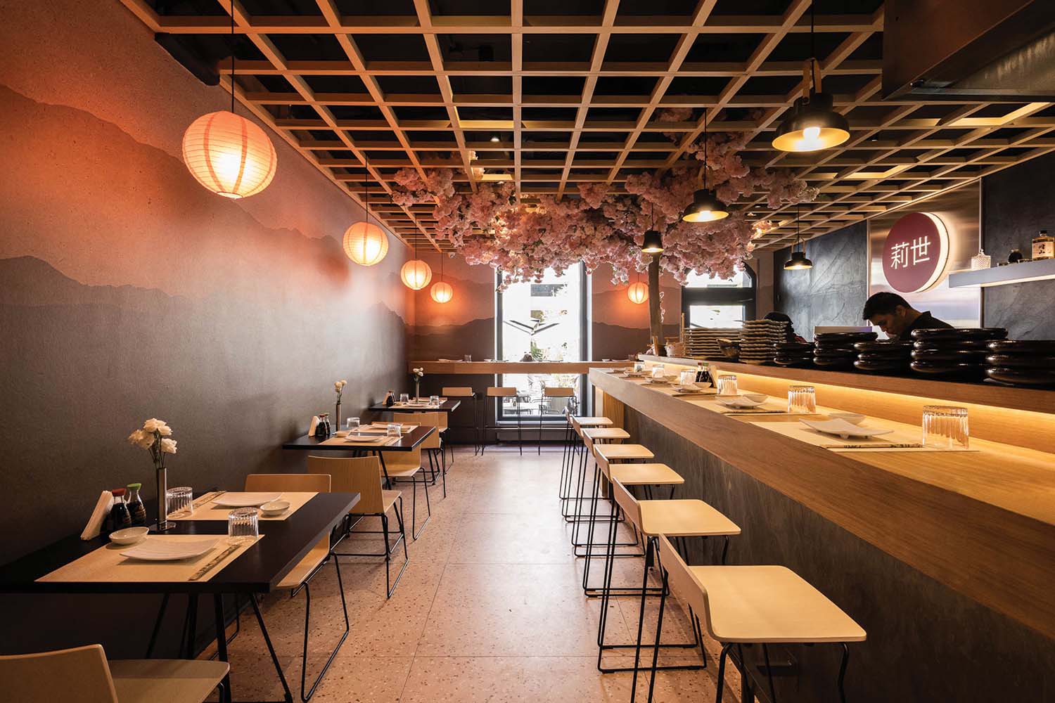 Restaurantul, cu o suprafață modestă de 50 de metri pătrați, are o bucătărie deschisă care oferă un spectacol culinar clienților, mai ales celor care stau la barul care înconjoară zona de gătit. Bucătăria deschisă era una din cele mai importante dorințe ale clienților. Un alt loc interesant este pultul de la fereastra orientată spre strada pietonală, care oferă o priveliște către exterior și în același timp are rolul de a atrage atenția trecătorilor și a îi invita înăuntru. În zona din spate a restaurantului s-a creat un loc separat pentru grupuri mai restrânse de clienți, unde se pot organiza și evenimente mai private. Acest spațiu, fără prea multă lumină naturală, are un tavan extensibil retro-luminat și un print cu o boltă cerească pe care se conturează florile unui cireș japonez.