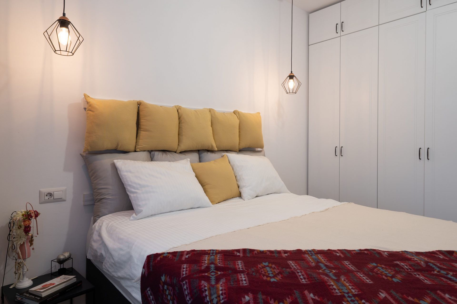 În această amenajare s-a mers pe un stil modern, cu accente industriale din lemn, metal negru și sticlă, care se regăsesc atât la corpurile de iluminat, cât și la cele două uși realizate la comandă și în alte detalii din apartament.