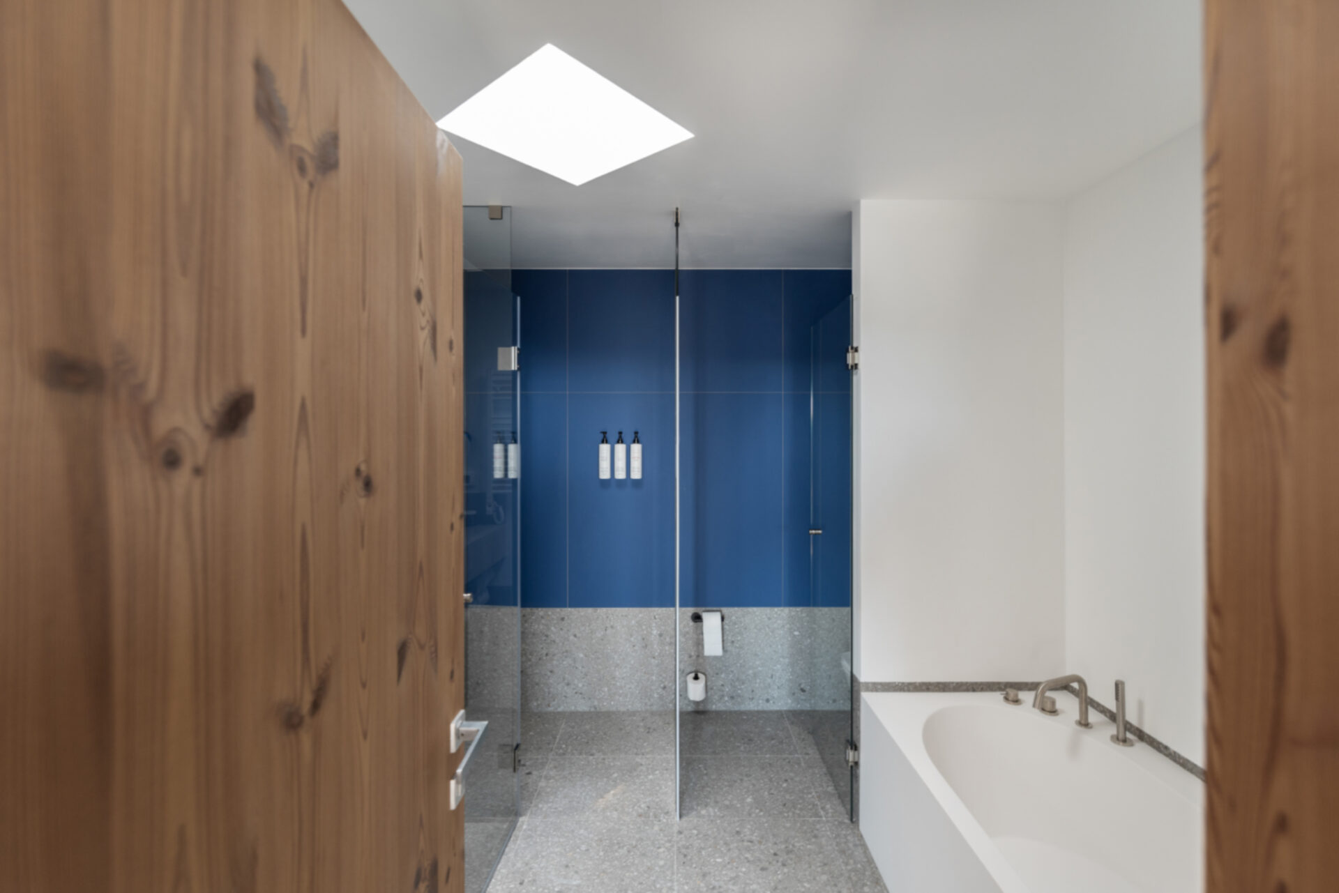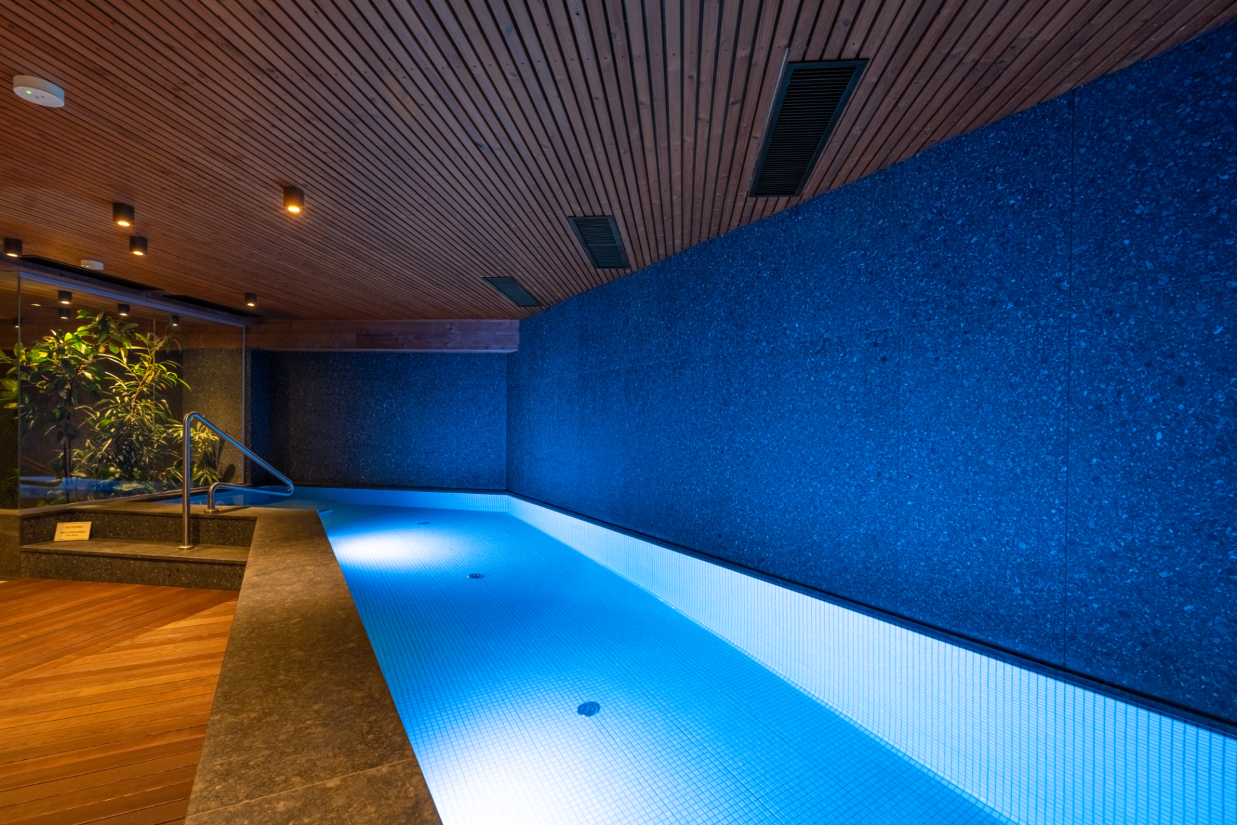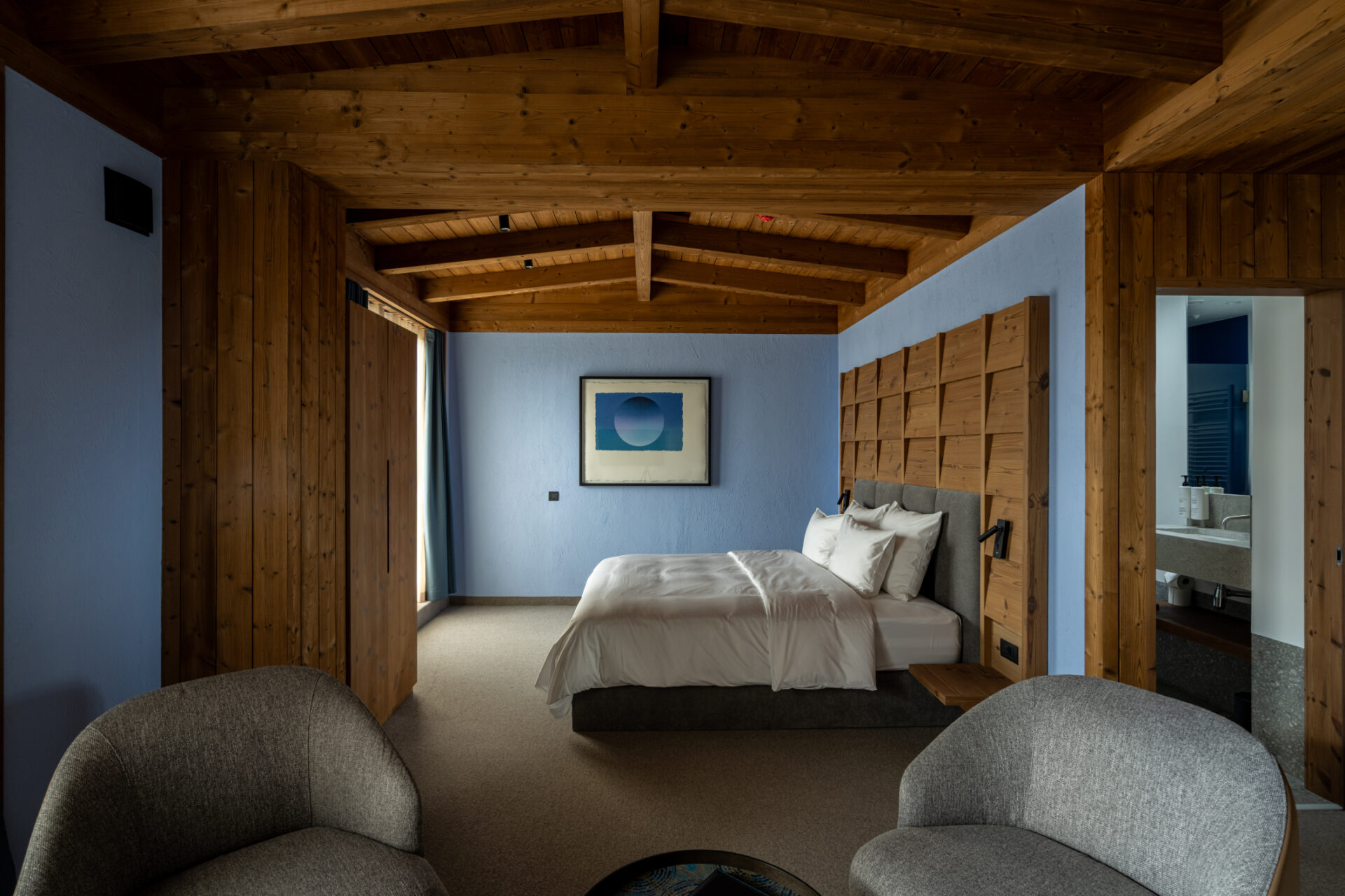 Toate aceste materiale împreuna influențează în mod discret experiența fiecăruia și crează un ambient perceptibil sănătos. Pentru redefinirea calității, un pilon important este apartenența la o comunitate și o cultură. Local în zona Transilvaniei există cultura vie a satelor și comunităților Săsești pe care îmbrățișând-o recunoaștem valorile ei, know how-ul tradiția și traiul (lifestyle-ul). Albastrul care se regăsește în interior este albastrul caselor sășești de la Șona și Alțâna până la Copșa, culori așa de frumos surprinse de Albastrul meu. Rețeta de var este adusa de un restaurator local -Ștefan Vaida și conține pe lângă var pigmentul de ultramarin care în trecut era un pigment de albastru intens cunoscut și foarte prețios (mai prețios decât aurul) extras din piatra semiprețioasă lapis lazuli -lazurit și cu care erau pictate în iconografie în fresce veșmintele sfinților iar culoarea derivată este considerată cea mai perfectă dintre culori. Proiectul cuprinde amenajarea spațiilor interioare comune -lobby, coridoare, toalete și spa precum și camerele de oaspeți și fațadele clădirii.