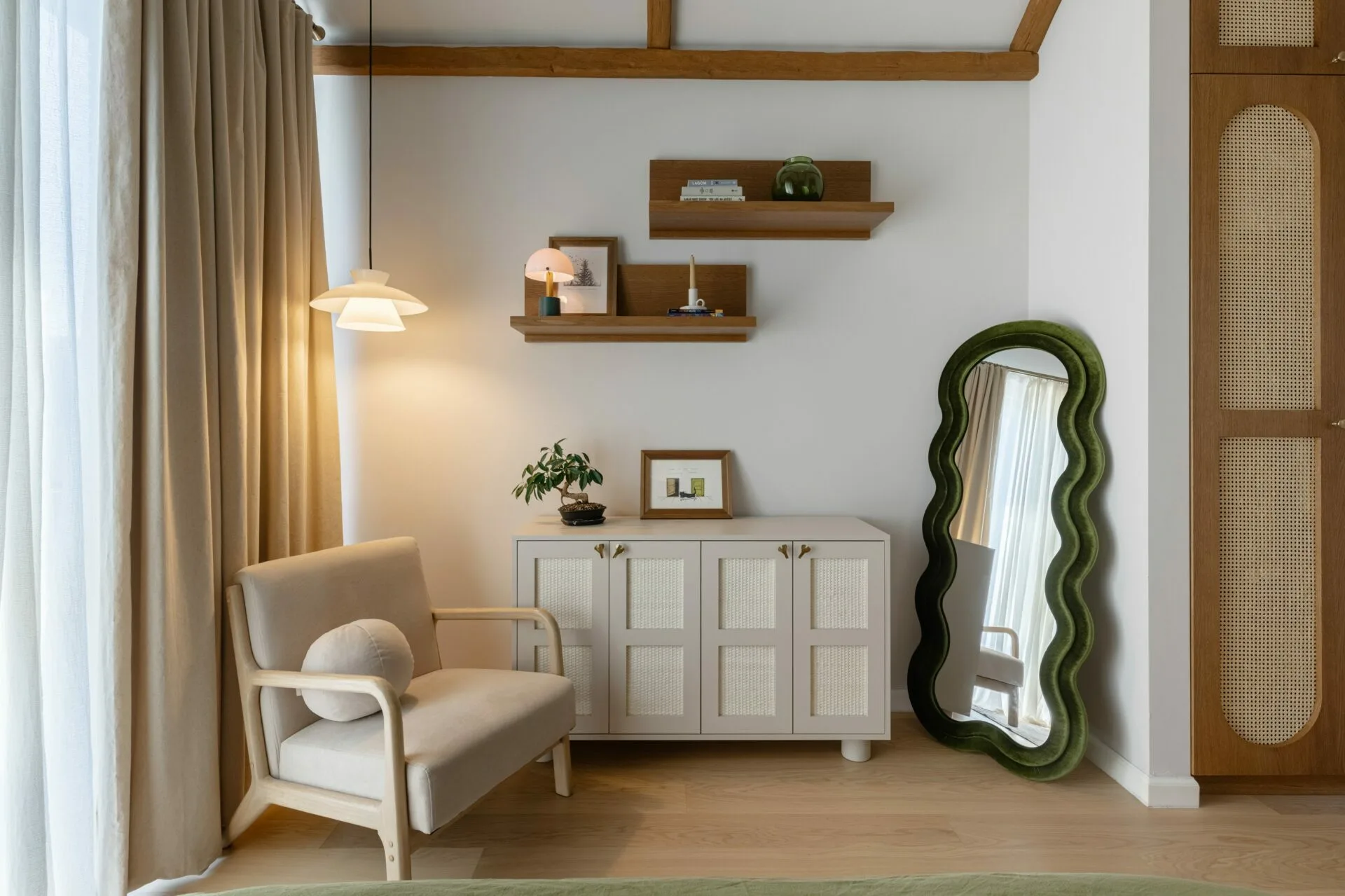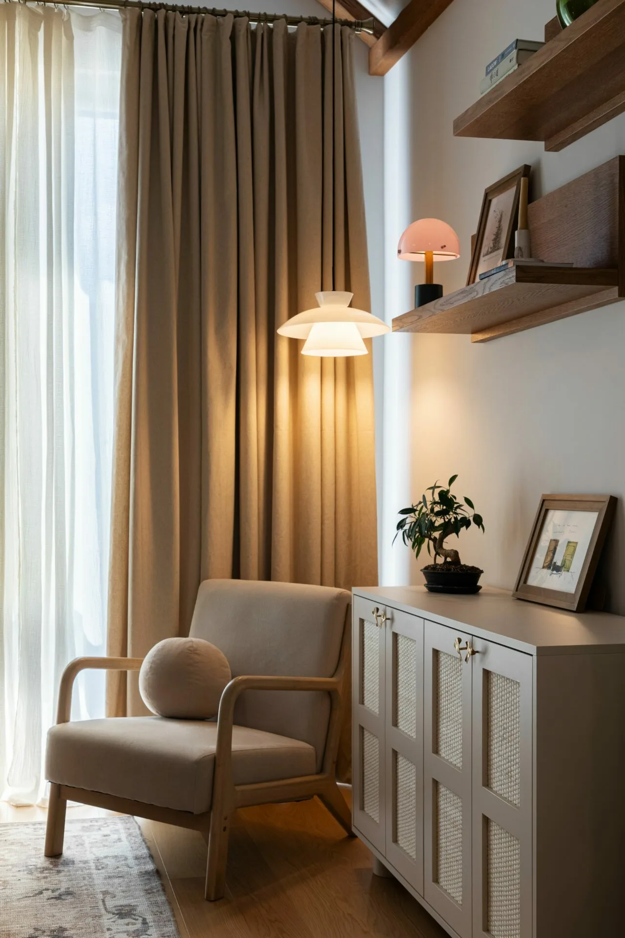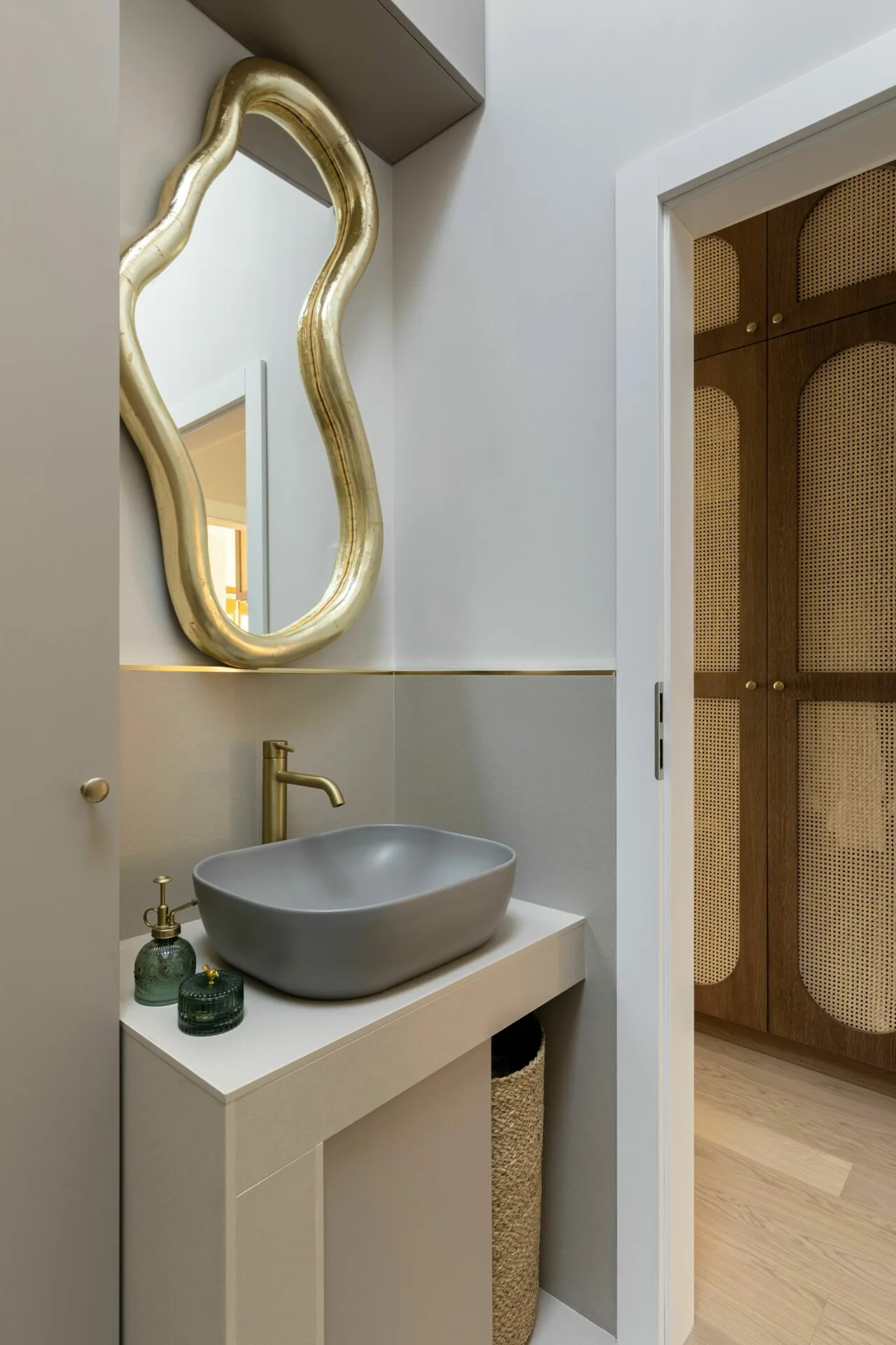 The Green Nest este un interior construit în jurul ideii de retragere contemporană, unde armonia dintre proporții, texturi și emoții devine esența experienței de locuire. De la geometria atipică a tavanului, până la delicatețea materialelor naturale, fiecare alegere susține această direcție, conturând un spațiu calm și coerent. Volumetria existentă, definită de un tavan înalt cu formă triunghiulară, specifică arhitecturii cabanelor alpine, a fost tratată ca un element identitar. Aceasta a fost valorizată și integrată coerent în compoziția generală, devenind un reper arhitectural al spațiului. Inserțiile contemporane, cu volumetrii simple și detalii discrete, completează ansamblul și ancorează proiectul într-un limbaj actual. Într-un apartament gândit ca loc de relaxare și reconectare cu natura, materialele nu pot fi alese la întâmplare. Materialele organice, precum inul, ratanul, bumbacul și lemnul natural, sunt utilizate în mod recurent, nu doar pentru valoarea lor vizuală, ci și pentru calitățile tactile și sustenabile, jucând un rol esențial în conturarea atmosferei. Paleta cromatică, inspirată din natură, este alcătuită din nuanțe de verde, bej și tonuri pământii, care se succed firesc de la un spațiu la altul. The Green Nest propune astfel o estetică a firescului, în care nimic nu pare forțat sau demonstrativ, explorând ideea de confort contemporan printr-un limbaj vizual simplu, dar rafinat, în care materialele și proporțiile devin adevărații protagoniști.