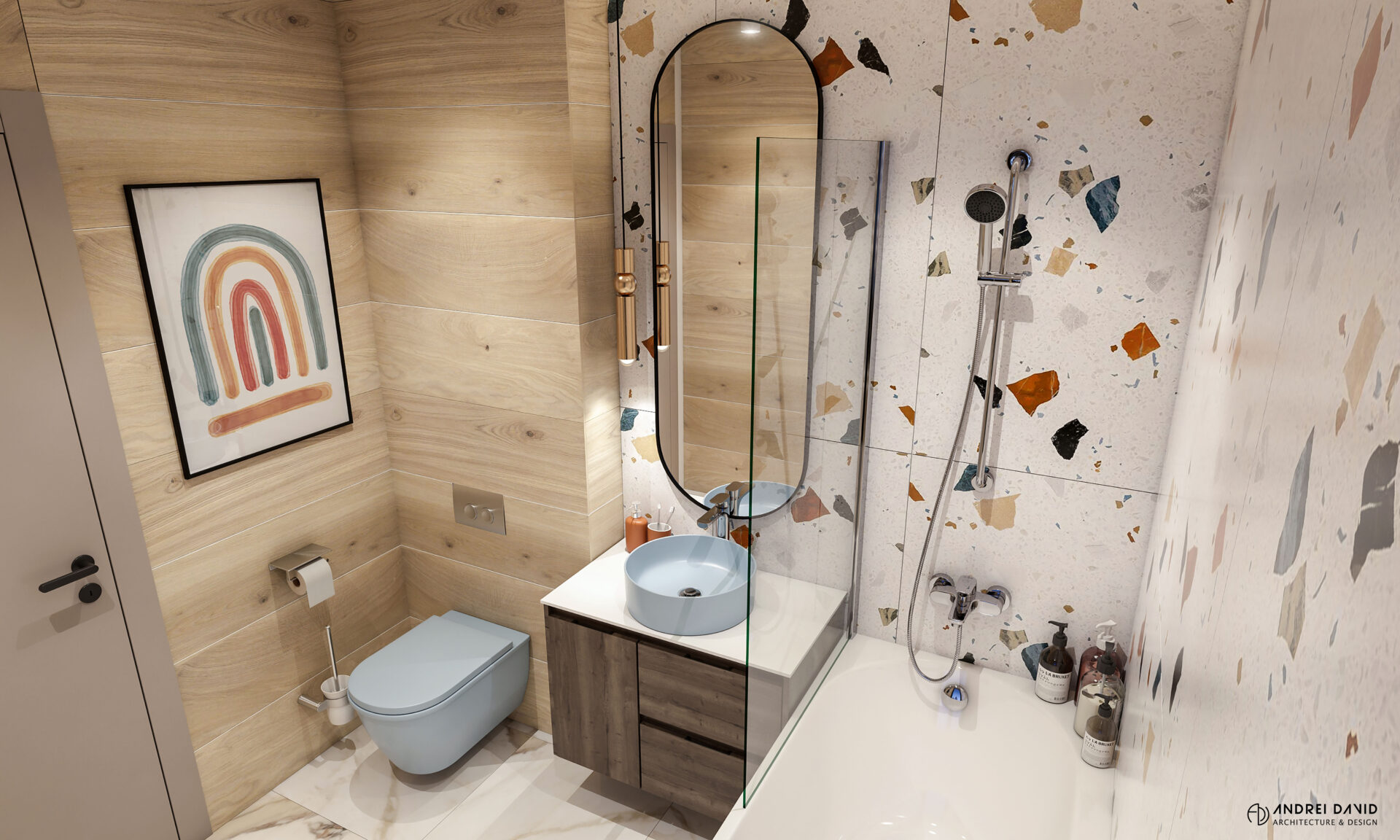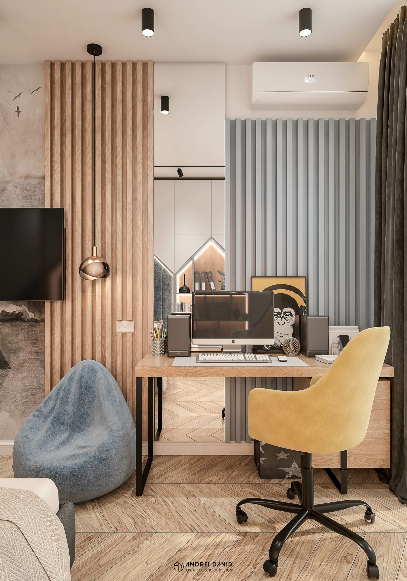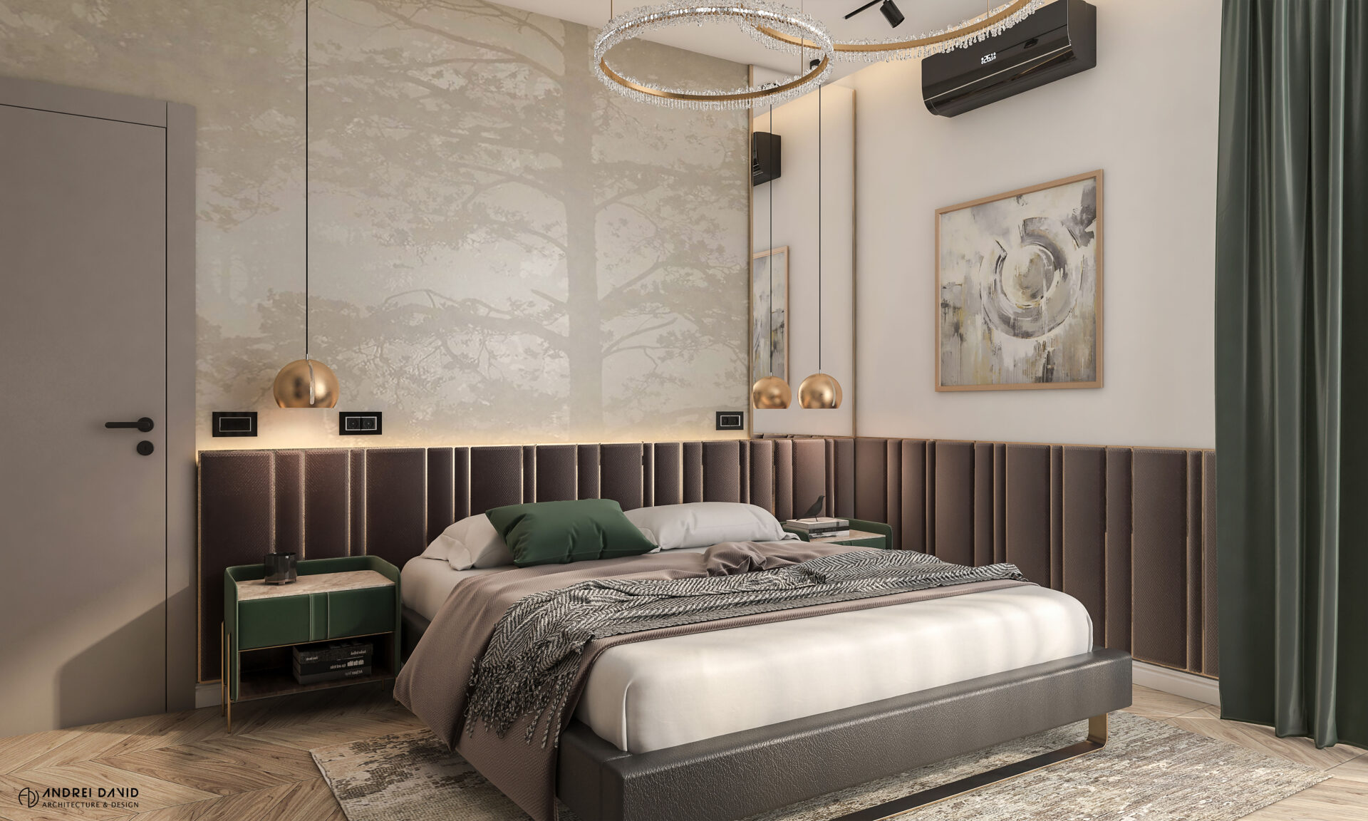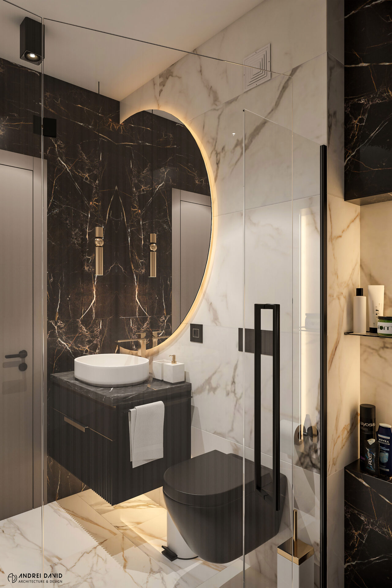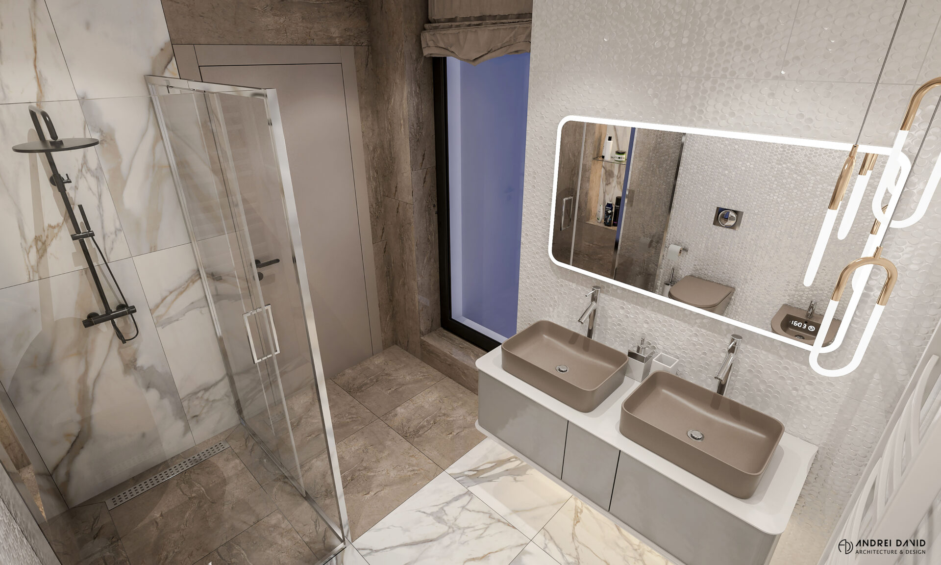 Spațiul interior al acestei locuințe a fost conceput pe baza cerinței esențiale a beneficiarilor : luxury dar nu rece, ci primitor. Inima casei, livingul generos de aproximativ 70 mp este cel care dă tonul amenajării. Marea provocare aici a fost de a separa zona de lounge de cea de dining, păstrând în același timp senzația de spațiu unitar. Pe lângă living, la parter amenajarea a inclus și : bucătărie cu terasă, birou, baie și hol intrare. Pentru etaj, zona de noapte e compusă din 4 dormitoare, dintre care unul matrimonial cu dressing și baie proprie, baie oaspeți și baie copii. Prin această amenajare am propus folosirea de materiale, finisaje și obiecte din gama premium, care împreună cu mobilierul și iluminatul arhitectural creează o ambianță elegantă și plină de rafinament.